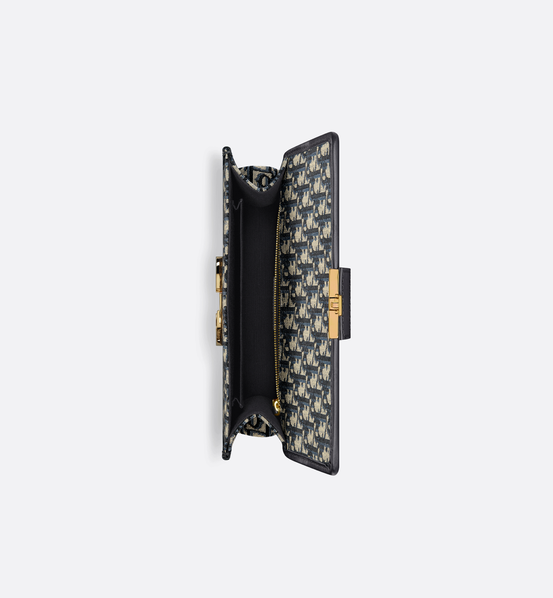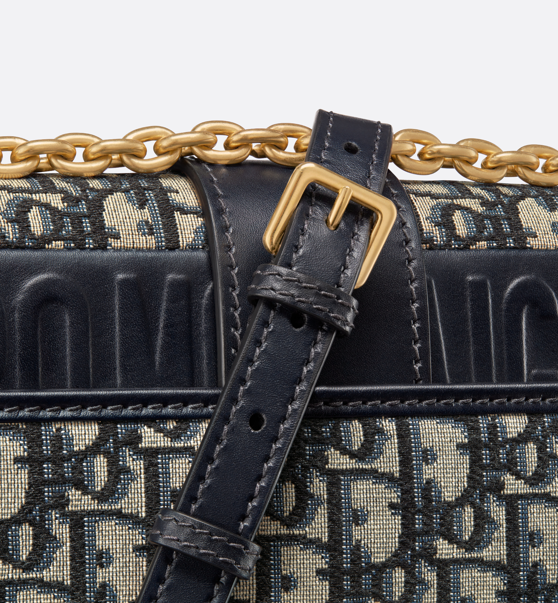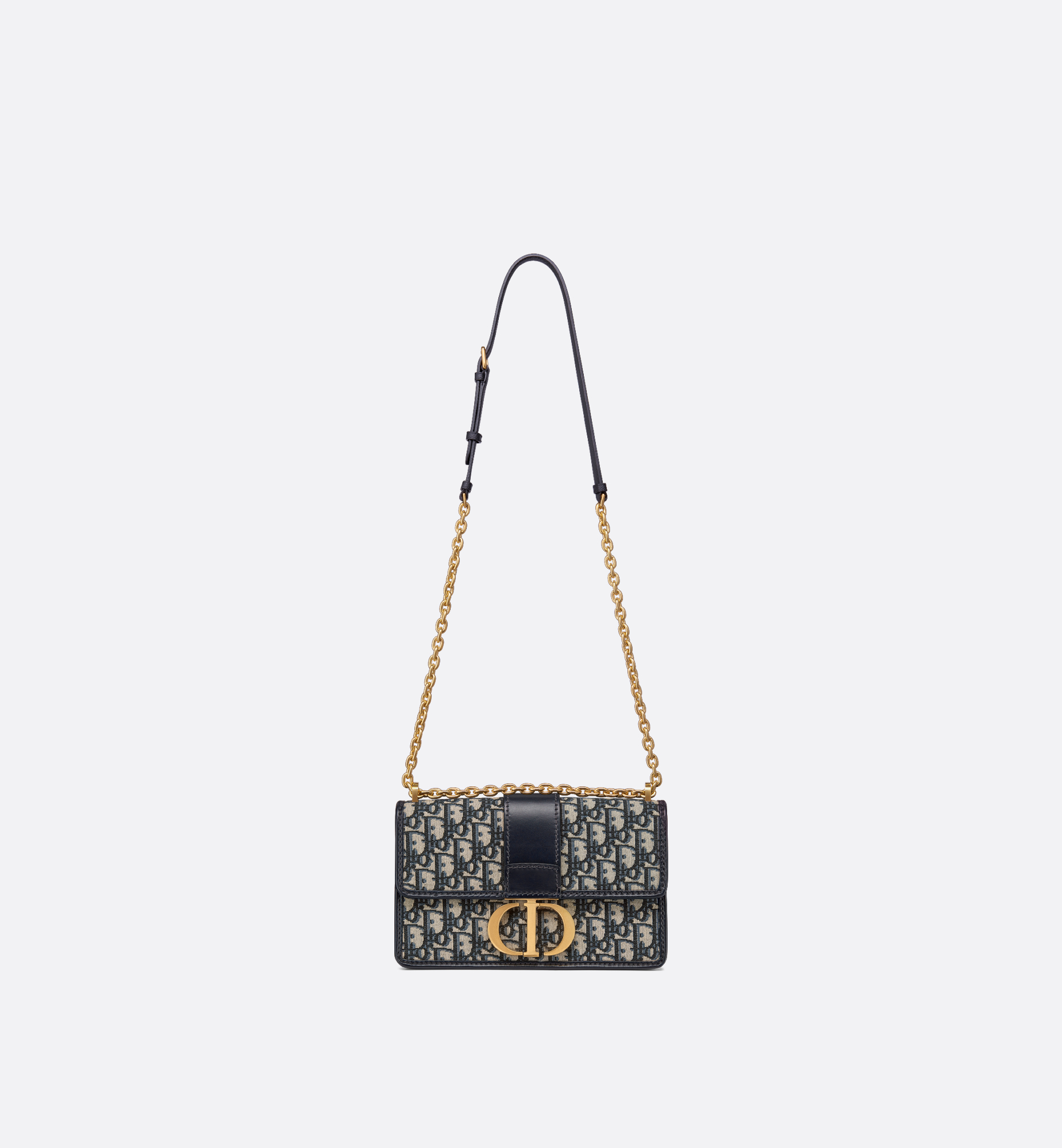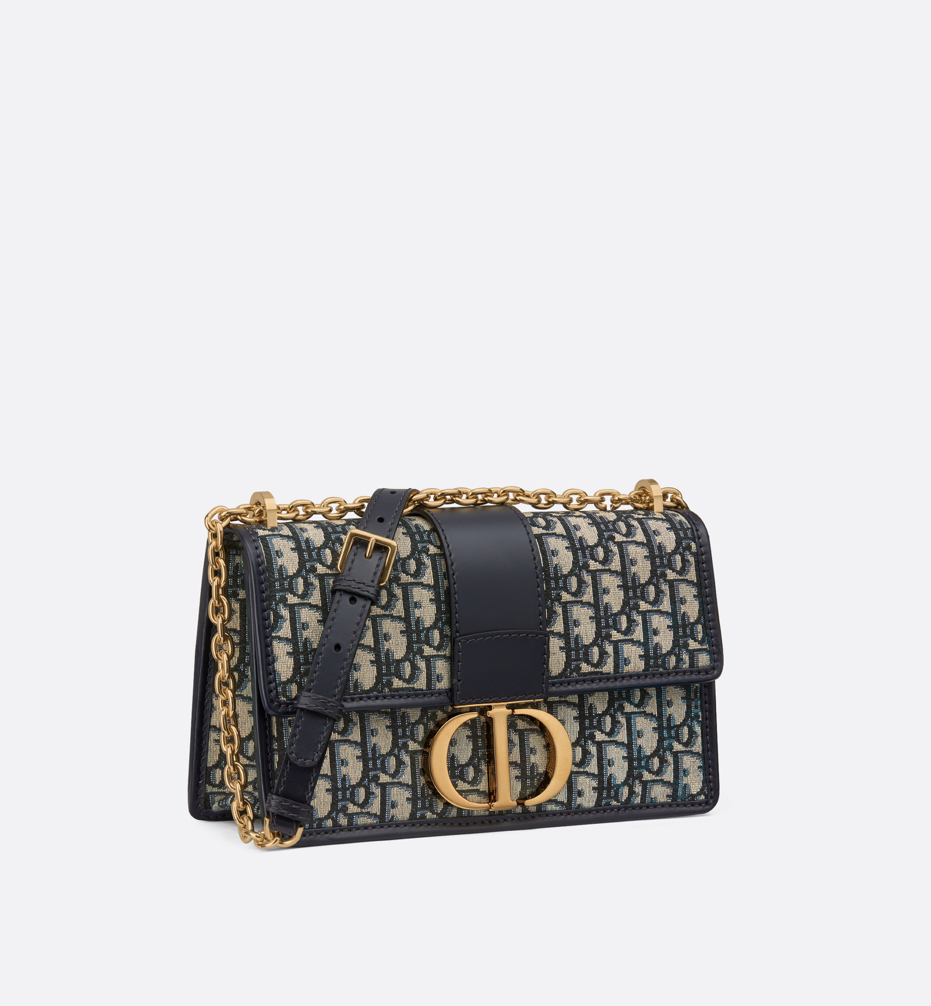 The 30 Montaigne line, inspired by the hallmark address, offers essential pieces that embody the House’s iconic codes. The bag is crafted in blue jacquard and highlights the House’s classic Dior Oblique motif for an elegant and modern design. The flap has an antique gold-finish metal CD clasp, inspired by the seal of a Christian Dior perfume bottle. Other details, like the embossed 30 Montaigne signature at the back, accent the streamlined design. Thanks to the chain strap, the bag can be carried by hand, worn over the shoulder or crossbody. Main composition: cotton, calfskin and technical fabric. Cotton and linen lining. Flap closure. CD clasp. Embossed 30 Montaigne signature on the back. Adjustable and detachable chain. Interior zip pocket and phone pocket. Back pocket. Dust bag included. Made in Italy