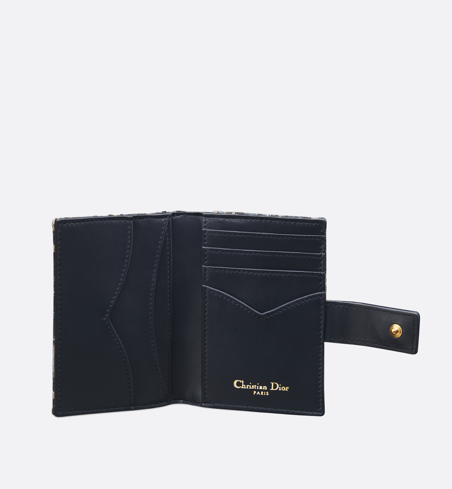 The 30 Montaigne Dandelion card holder presents an elegant and timeless style. Crafted in blue Dior Oblique jacquard, it is embellished with a CD clasp on the front. Its vertical bifold silhouette features six card slots and slip pockets. The refined accessory will fit anywhere and can be paired with other 30 Montaigne creations. Main composition: cotton, technical fabric and calfskin. Calfskin and technical fabric lining. Front CD clasp. Six card slots. Two slip pockets. One rear slip pocket. Made in Italy
