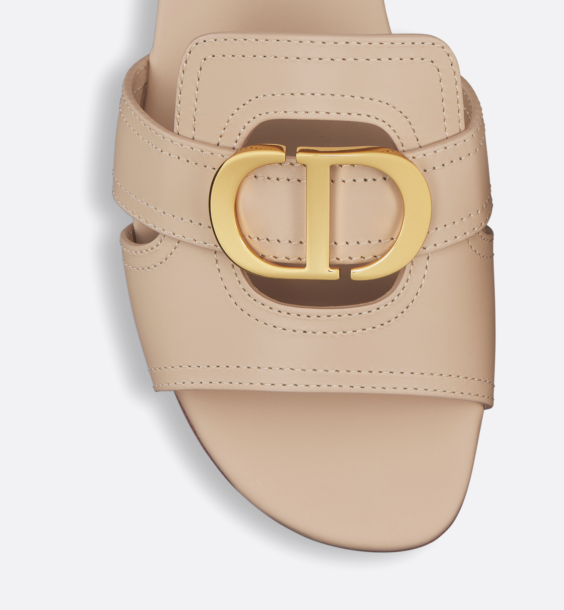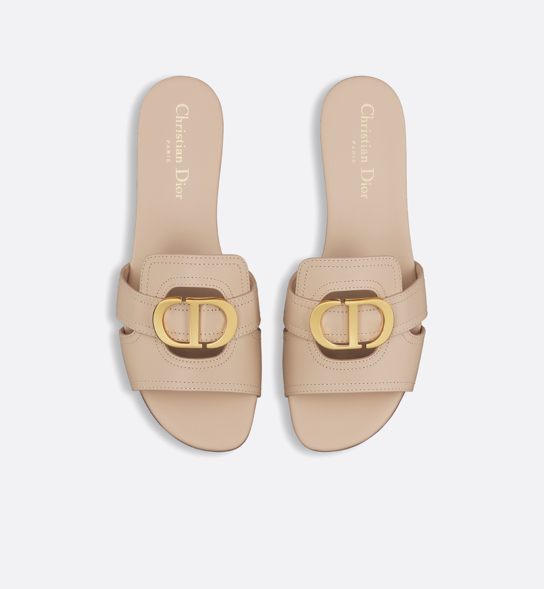 The 30 Montaigne slide is a Dior wardrobe essential. A gold-finish metal CD signature adds shine and emphasis to the design’s beige calfskin. Timeless and elegant, the slide will effortlessly complete a multitude of styles. Main composition: calfskin. Calfskin lining. Gold-finish metal CD signature. Calfskin sole with star, Christian Dior’s lucky symbol. Made in Italy
