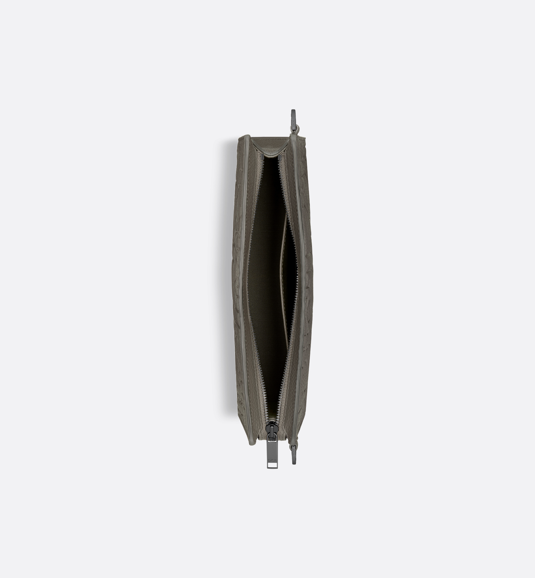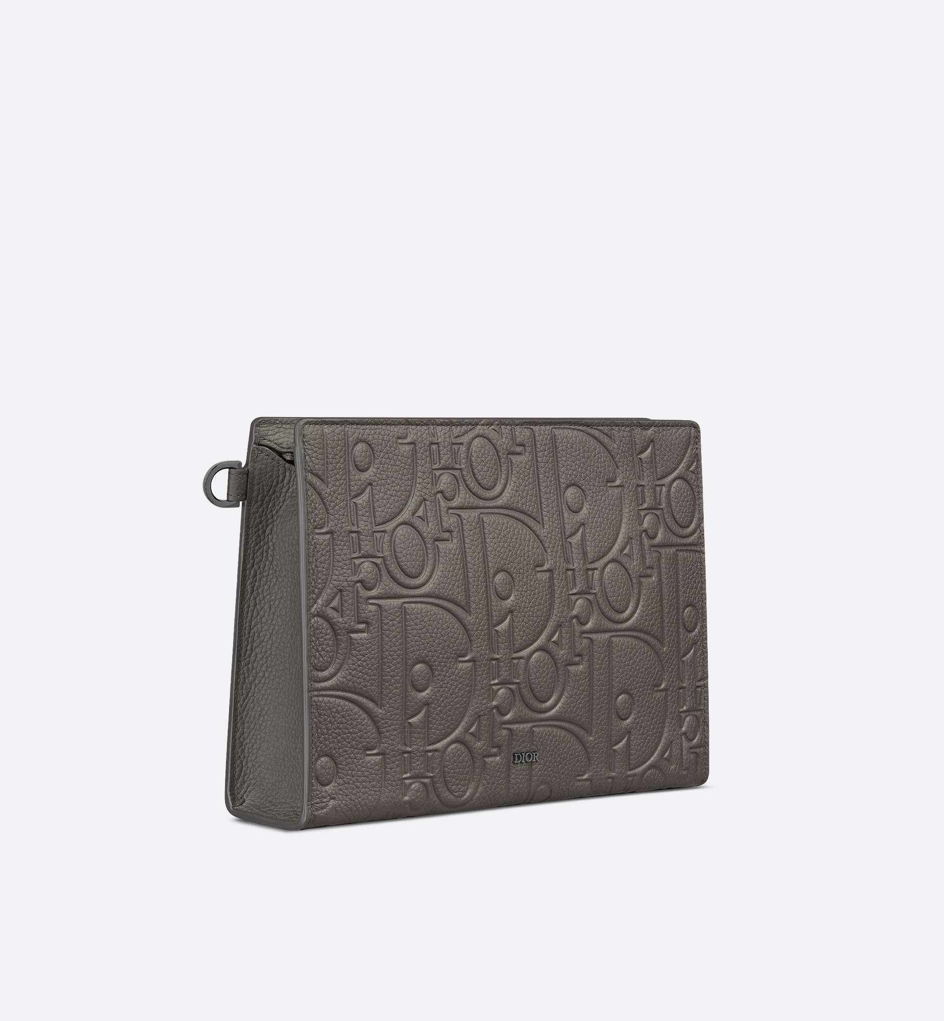 The pouch is a House staple. Displaying the virtuosity of the House ateliers, the Dior Gravity leather showcases the iconic motif delicately embossed on gray calfskin with a Dior signature on the front. The spacious zip compartment is ideal for a phone and features six card slots. The pouch is equipped with a removable grained calfskin wrist strap, allowing it to be carried by hand or slipped into a bag. Main composition: calfskin. Technical fabric, cotton and calfskin lining. Interior slip pocket. Six card slots in grained calfskin. Removable grained calfskin wrist strap. Ruthenium-finish brass Dior signature on the front. Embossed Dior signature on the interior. Dust bag included. Made in Italy or Spain