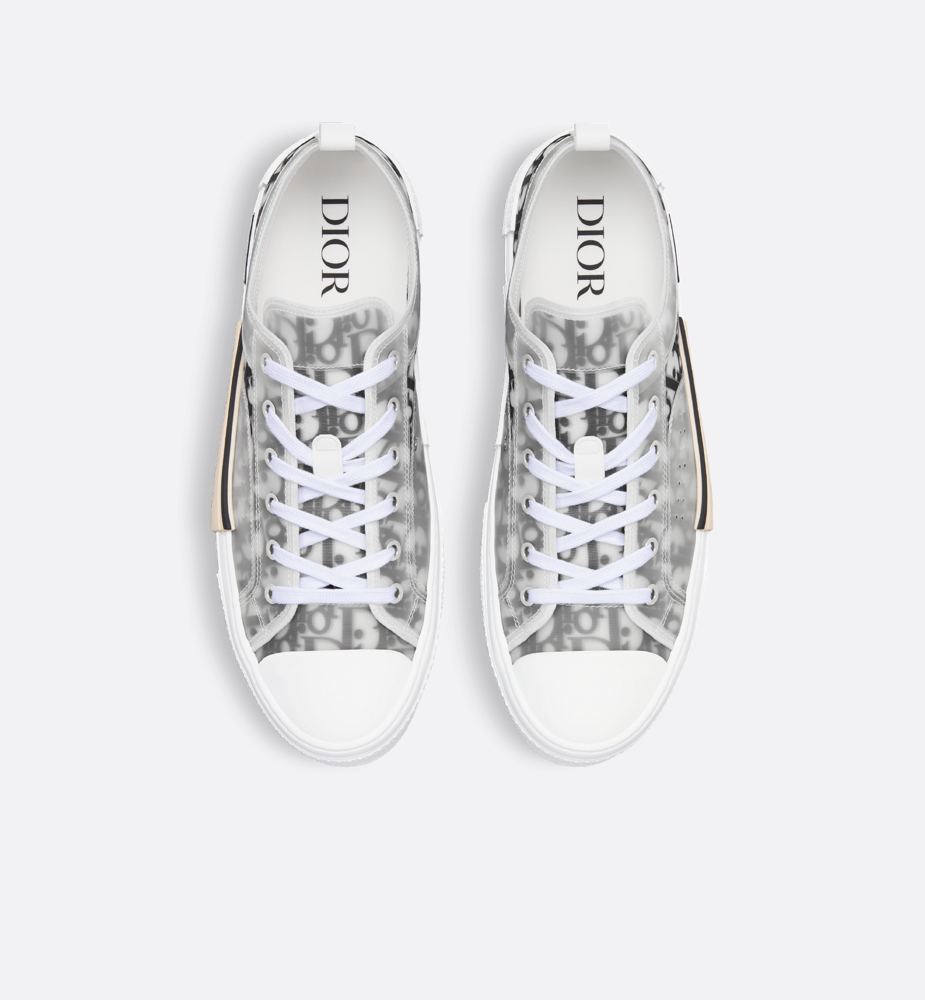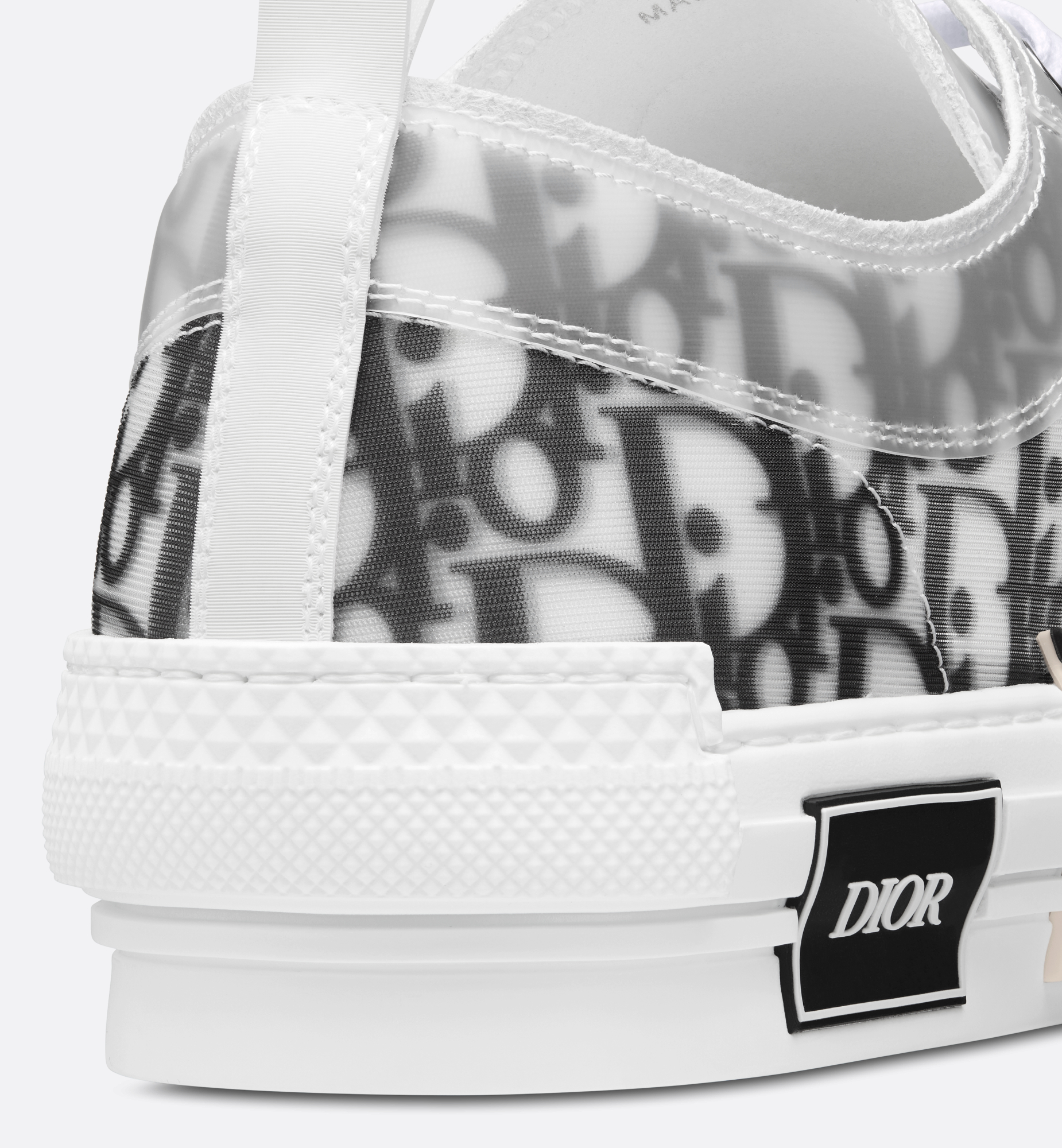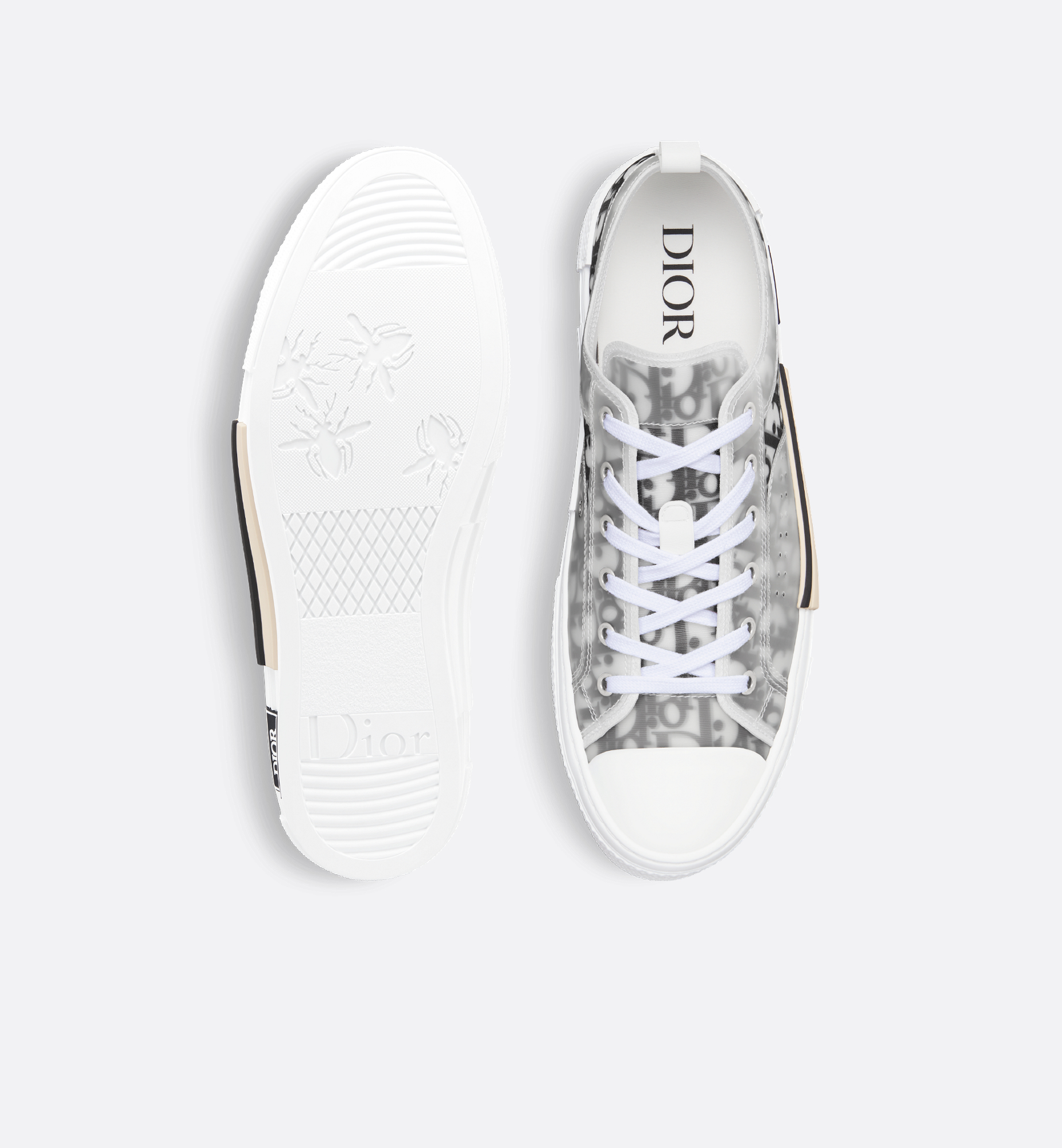 The B23 League low-top sneaker is set apart by its layering of transparent paneling and white and black Dior Oblique canvas. Essential details, such as eyelets and a lace-up front, a white and beige rubber sole, a rounded and reinforced toe as well as a rear tab recall the codes of the classic low-top style. The sneaker is further enhanced by contrasting details on the sides, including a Dior signature, and will pair easily with any casual outfit. Main composition: technical fabric, cotton and brass. Technical fabric, goatskin and cowhide leather lining. Patchwork-effect sole with Dior signature on the side. Low top. Lace-up closure with rear tab. White rubber outsole with two-tone panel. Welded, side-sewn construction. Dust bag included. Additional set of white laces provided. Made in Italy