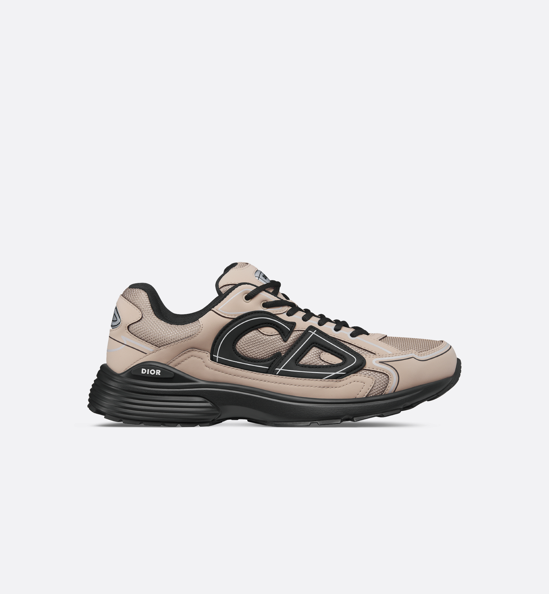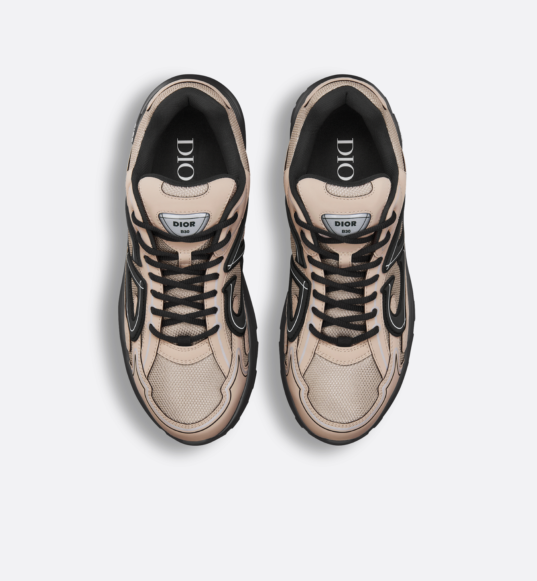 The B30 Countdown sneaker is a new House essential, distinguished by its modern and sporty low-top silhouette. Crafted in beige technical mesh and tonal technical fabric, it is enhanced by a reflective black CD30 signature with a graphic aesthetic. The B30 Countdown also features silver-tone Dior B30 and CD30 signatures on the tongue and back. A sculpted and ultralightweight rubber sole spotlights various hallmark details, while elastic on the interior provides optimal comfort. The B30 Countdown sneaker will complete any casual outfit. Main composition: technical mesh and technical fabric. Technical mesh and cowhide leather lining. Reflective black CD30 signatures on the sides and back. Tongue with Dior B30 signature. Low top. Lace-up closure. Black ultralightweight sculpted rubber outsole with Dior, CD30 and B30 signatures. Welded construction. Dust bag included. Additional set of laces provided. Made in Italy