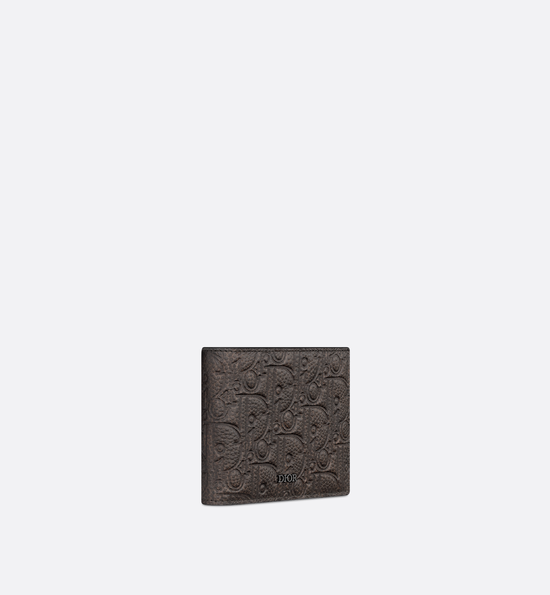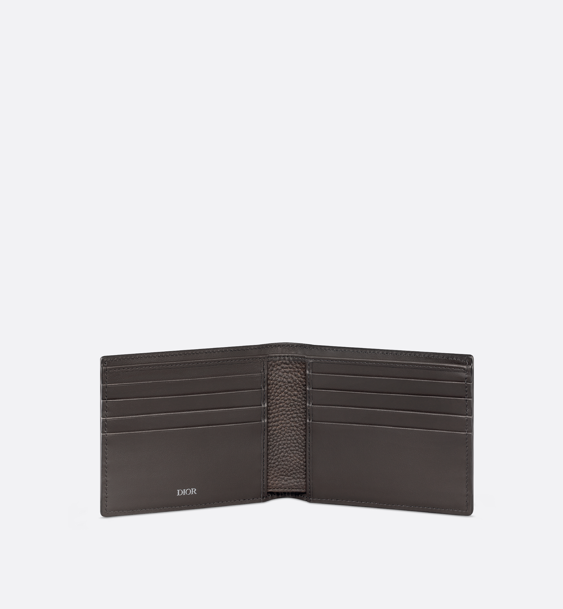 The bifold wallet is a refined, compact accessory. An expression of the Dior ateliers’ virtuosity, it is made in Dior Gravity Vintage leather, showcasing the iconic motif delicately embossed on brown calfskin with a unique aged effect. Enhanced by the Dior signature on the front, the bifold design is distinguished on the interior by a double bill compartment, two slip pockets for receipts and eight card slots. The wallet will fit easily into any pocket or bag. Main composition: calfskin. Calfskin and technical fabric lining. Eight card slots. Double bill compartment. Two slip pockets for receipts. Ruthenium-finish brass Dior signature on the front. Embossed Dior signature on the interior. Dust bag included. Made in Italy or Spain