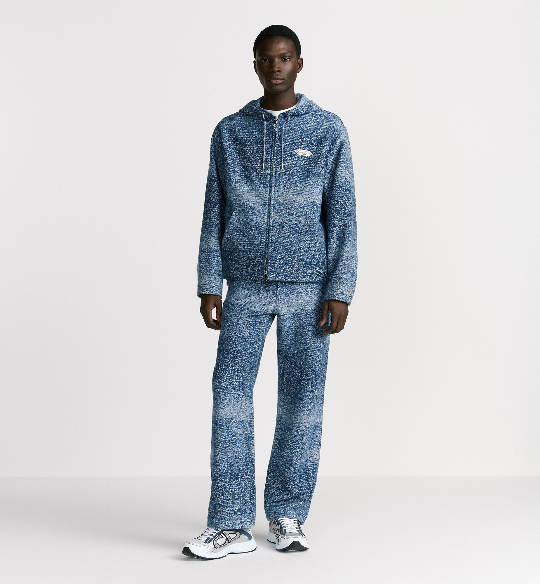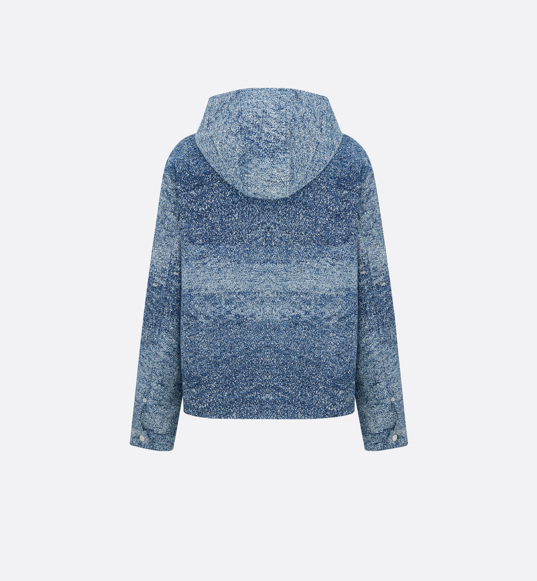 New for Winter 2025, the hooded blouson jacket is embellished with a Christian Dior Paris signature tag inspired by the House’s couture spirit and paying homage to the exceptional savoir-faire of the Dior ateliers. Crafted in blue cotton jacquard, it features a graphic gradient and side slit pockets. The blouson jacket will pair with the matching jeans to complete the look. Christian Dior Paris tag on the chest. Drawstring hood. Two-way zip fastening with Dior signature zipper pulls. Side welt pockets. 100% cotton. Made in Japan