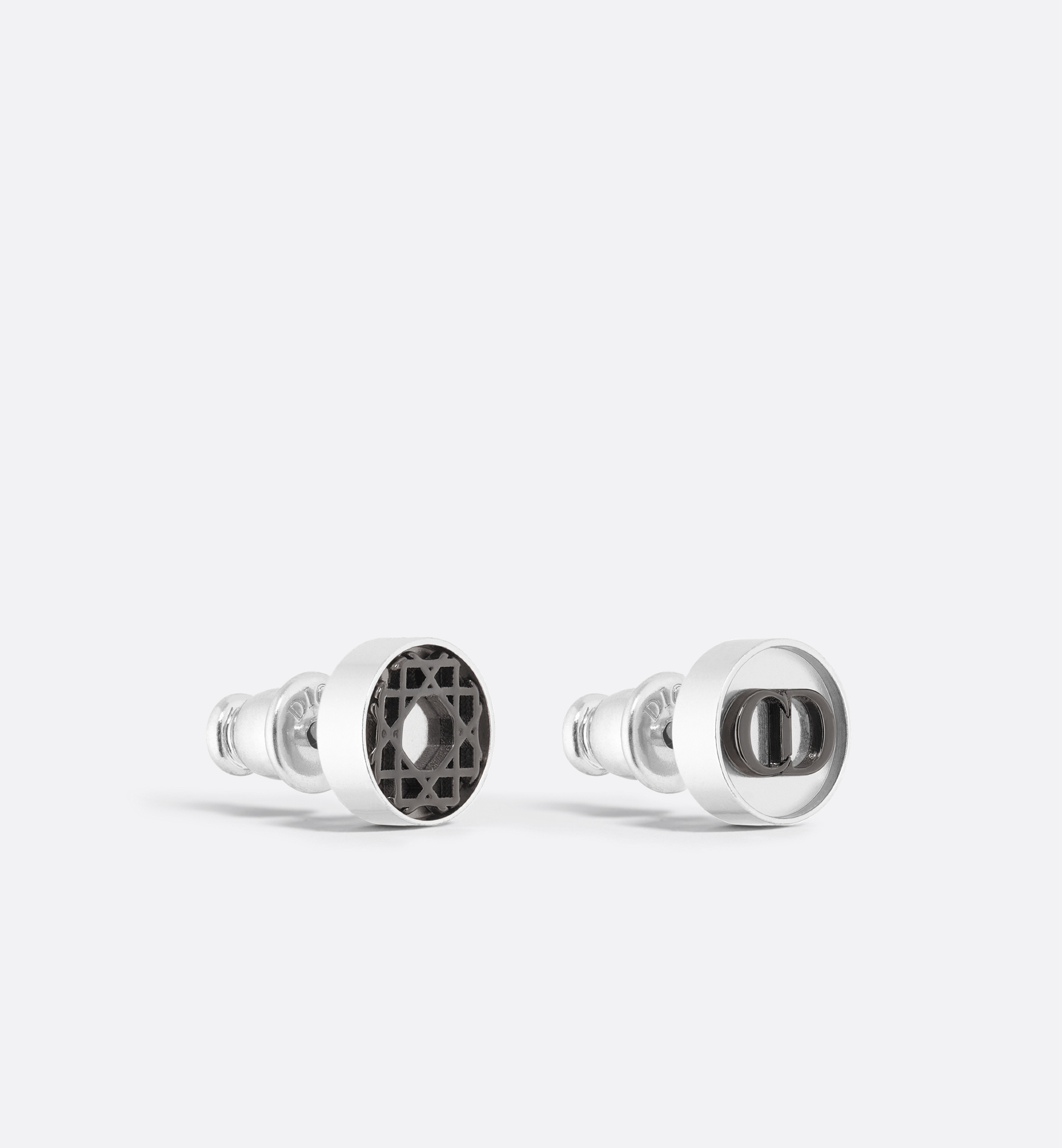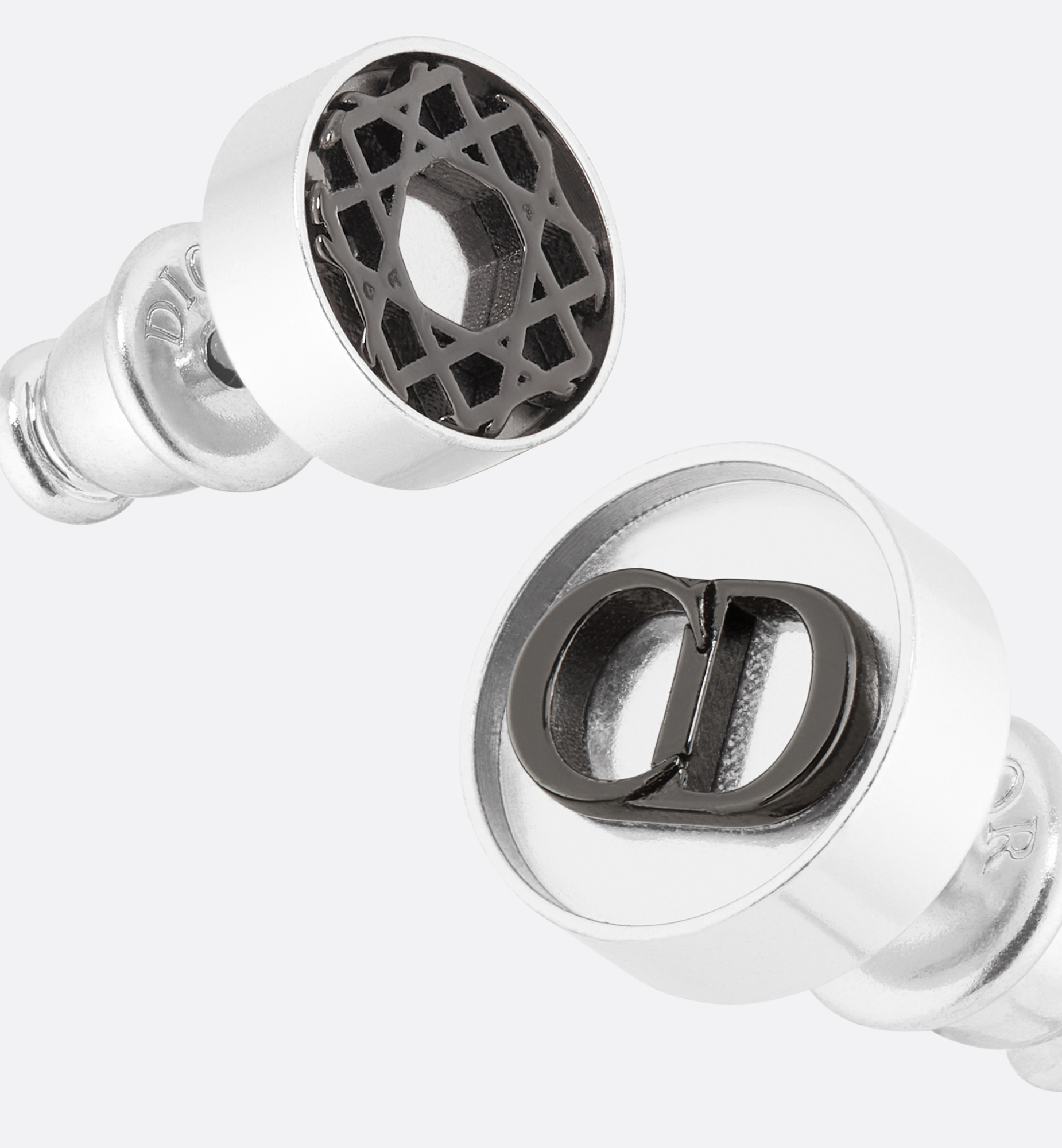 New for Fall 2025, the earrings offer a distinctive look. The asymmetrical design in silver-finish brass is contrasted by ruthenium-finish brass displaying the Cannage motif on one side and the CD Icon signature on the other. The modern earrings can be combined with other Cannage creations to complete the look. Cannage motif. CD Icon signature. Silver- and ruthenium-finish brass. Push clasp. Sold as a pair. 100% brass. Made in Germany