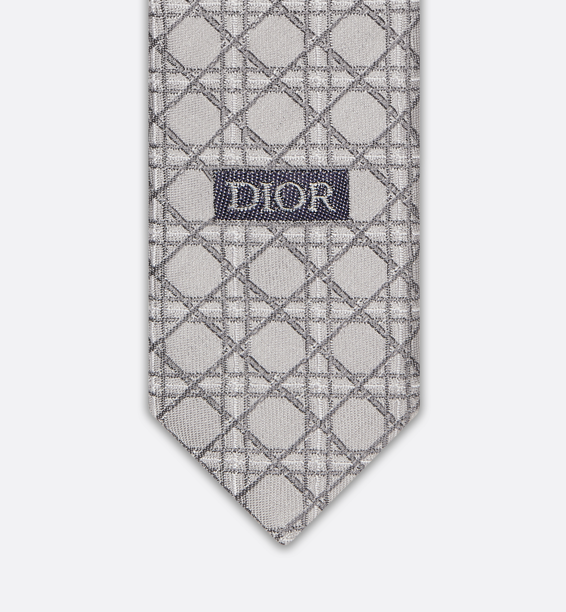 The tie honors House heritage in a contrasting gray and white variation of the iconic Cannage motif. The silk accessory will enhance any suit with a graphic touch. Gray and white Cannage jacquard. Dior signature jacquard label on the exterior of the tail. 100% silk and lining: 100% silk. Made in Italy