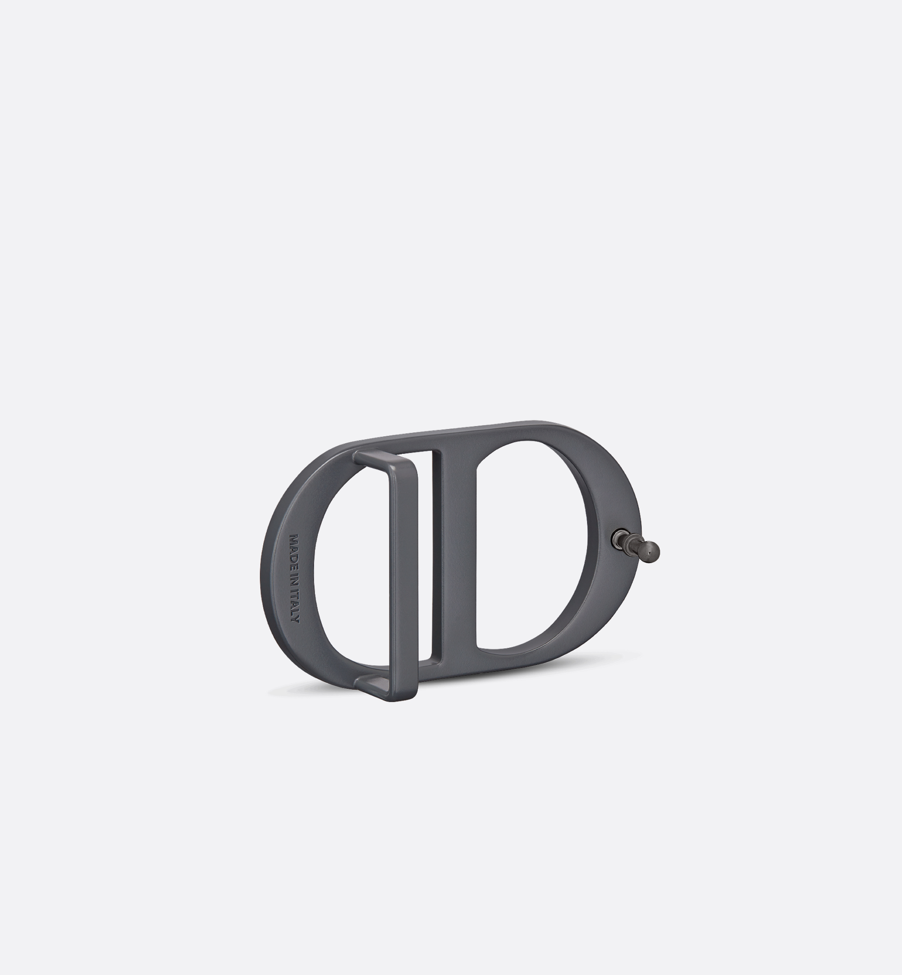 The matte deep gray lacquer-finish brass belt buckle features the CD Icon signature. It will subtly elevate any 35-mm (1.4-inch) belt strap for an elegant and sophisticated look. 100% brass. Dust bag included. Made in Italy. This belt buckle is sold alone and can be completed with a belt strap of the corresponding size