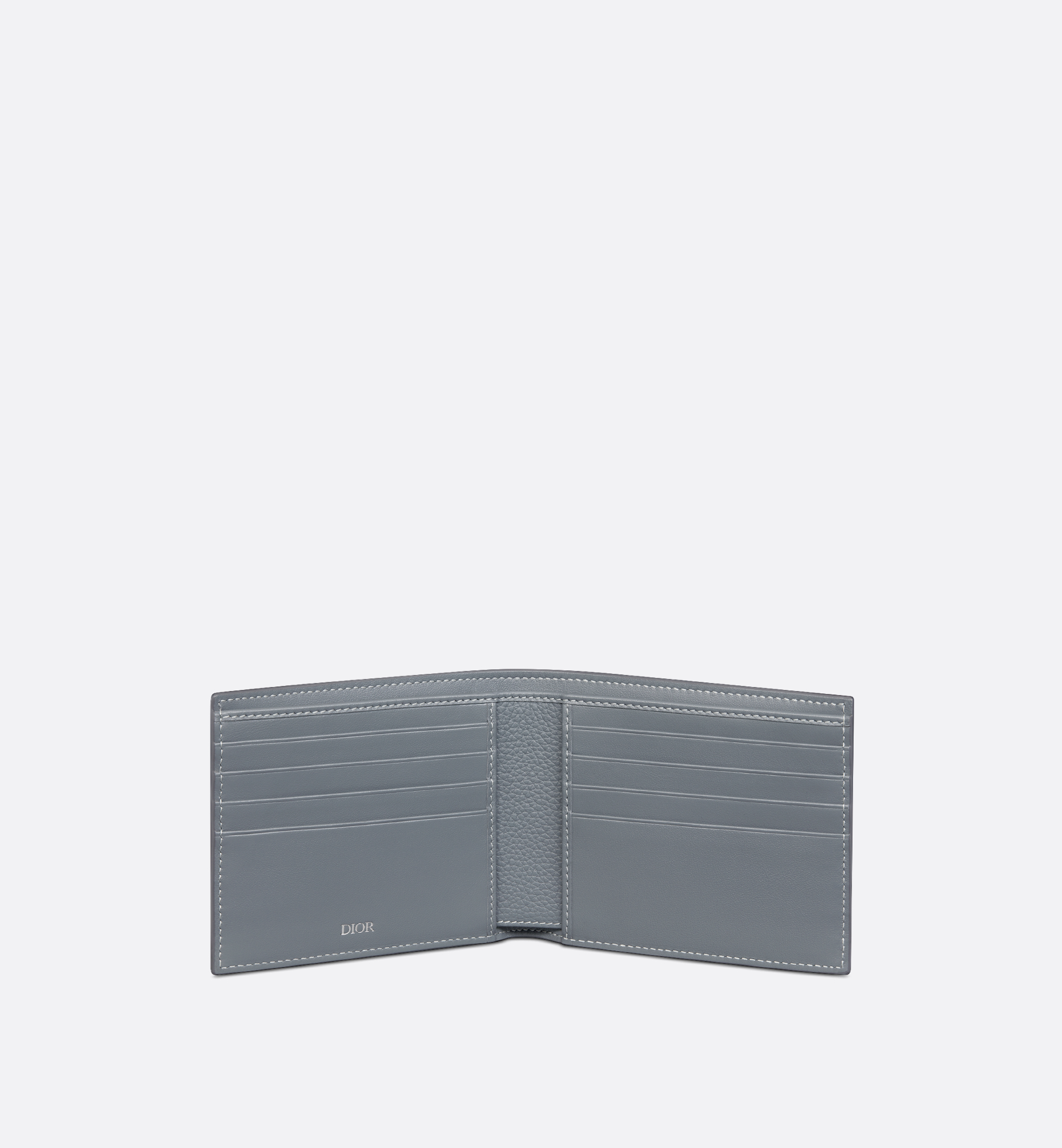 The bifold wallet is a compact and refined accessory. Crafted in deep gray grained calfskin, it showcases the tonal CD Icon signature on the front. The interior features a double bill compartment, two slip pockets for receipts and eight card slots. The bifold wallet will slip easily into any pocket or bag. Main composition: calfskin. Calfskin and technical fabric lining. Eight card slots. Double bill compartment. Two slip pockets for receipts. Tonal CD Icon signature on the front. Embossed Dior signature on the interior. Dust bag included. Made in Italy or Spain