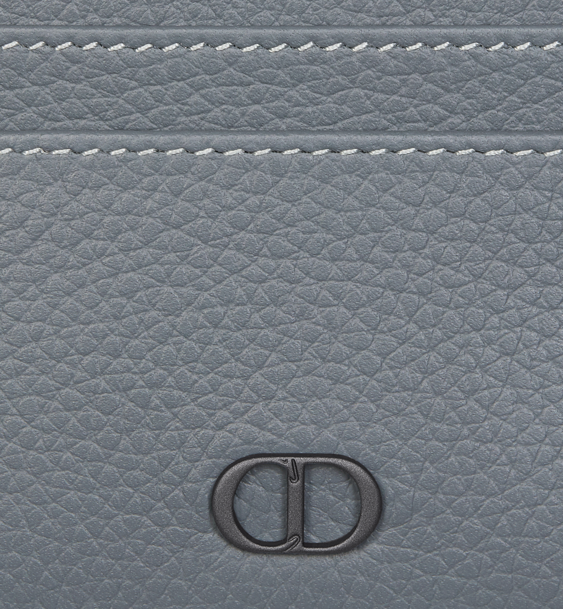 The card holder is a practical piece with a refined charm. Crafted in deep gray grained calfskin, it presents the tonal CD Icon signature on the front and features three card slots on either side and a central top slot to store personal effects. The elegant card holder will slip easily into any pocket. Main composition: calfskin. Technical fabric and calfskin lining. Three front card slots. Three rear card slots. Central card slot. Tonal CD Icon signature on the front. Embossed Dior signature on the interior. Dust bag included. Made in Italy or Spain