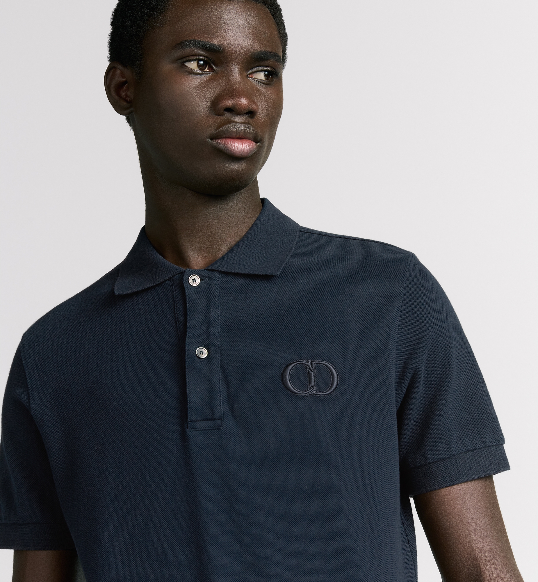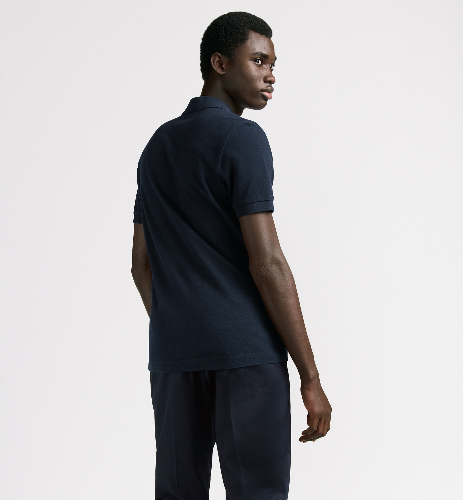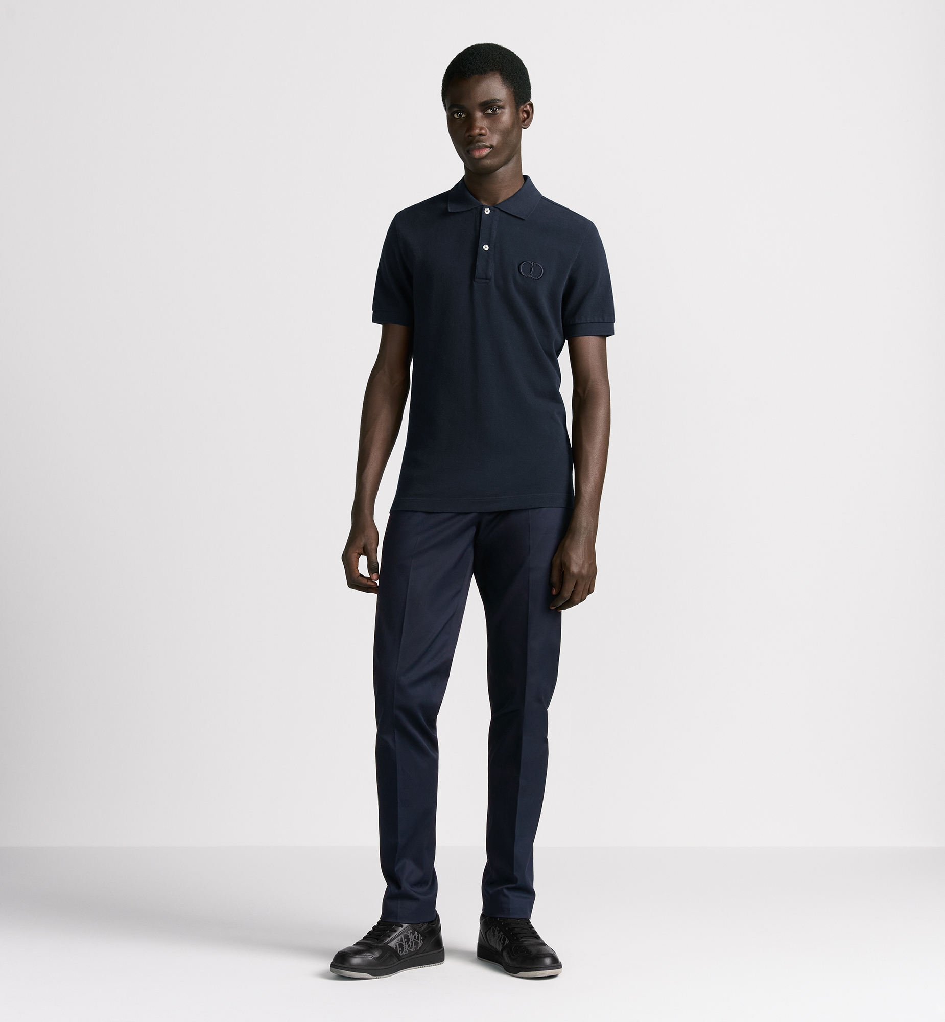 The polo shirt is a timeless and relaxed piece. Crafted in navy blue cotton piqué, it is embellished with a tonal CD Icon embroidery on the chest. The style has a regular fit and pairs easily with any jeans. Tonal CD Icon embroidery on the chest. Ribbed polo collar and sleeve hems. Mother-of-pearl Dior buttons. 100% cotton. Made in Italy