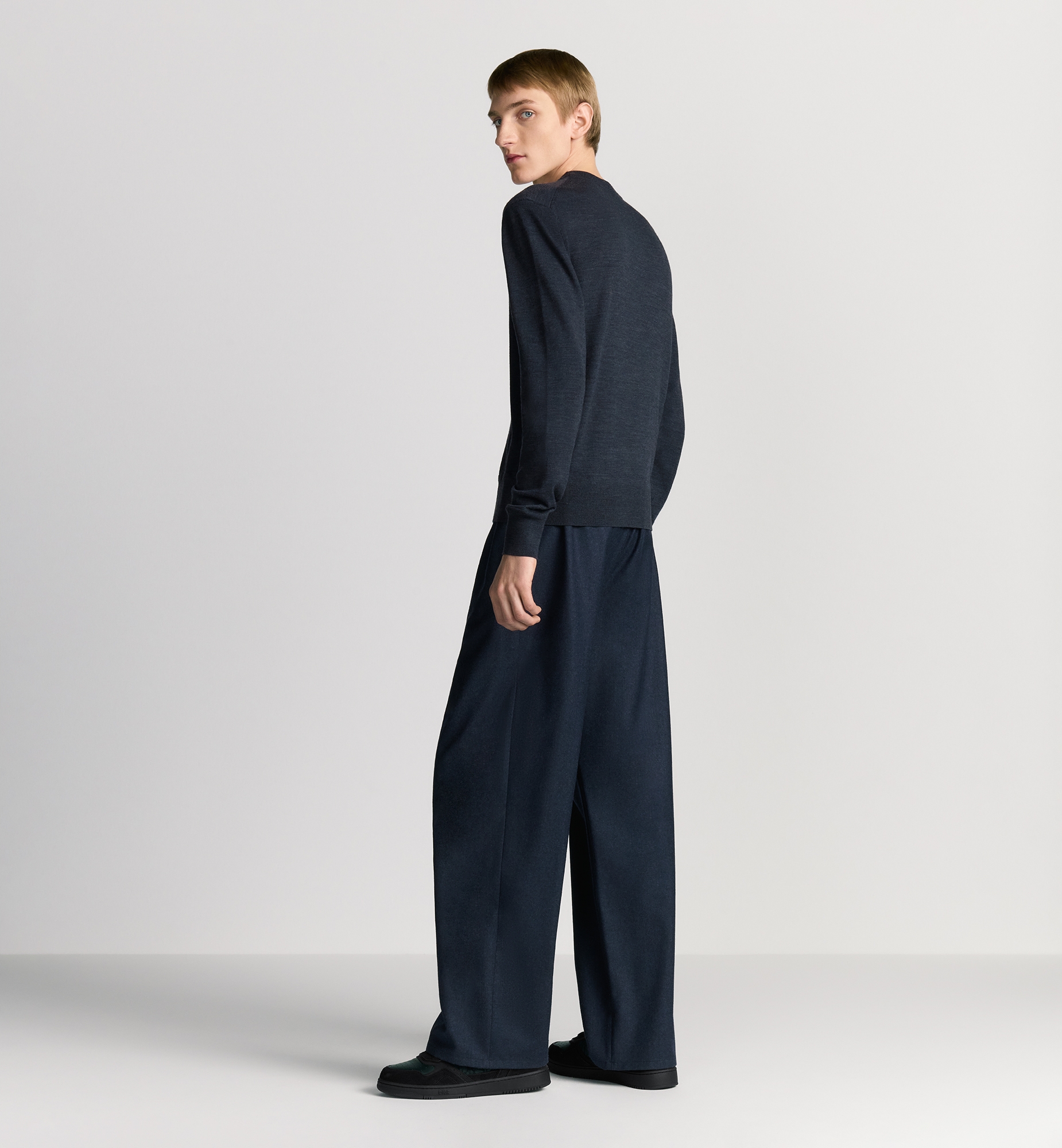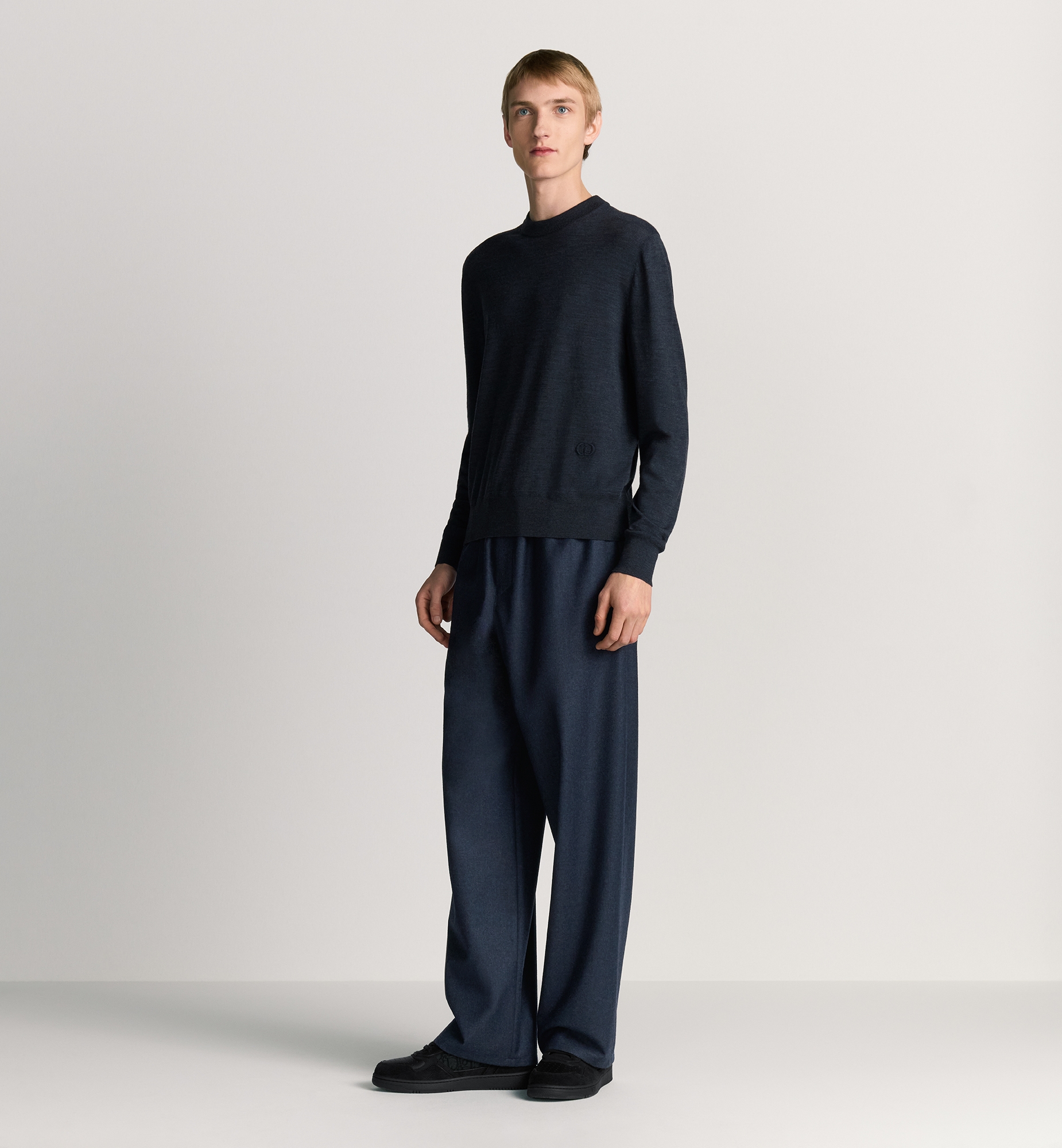 The CD Icon sweater offers a new take on a wardrobe essential. Crafted in metallic blue cashmere jersey, it is embroidered with a debossed CD Icon signature on the front. Featuring a round neck and regular fit, the sweater will pair effortlessly with suit pants for a chic look. Debossed CD Icon embroidery on the front. Ribbed round neck, cuffs and hem. 100% cashmere (18 gauge)*. Made in Italy