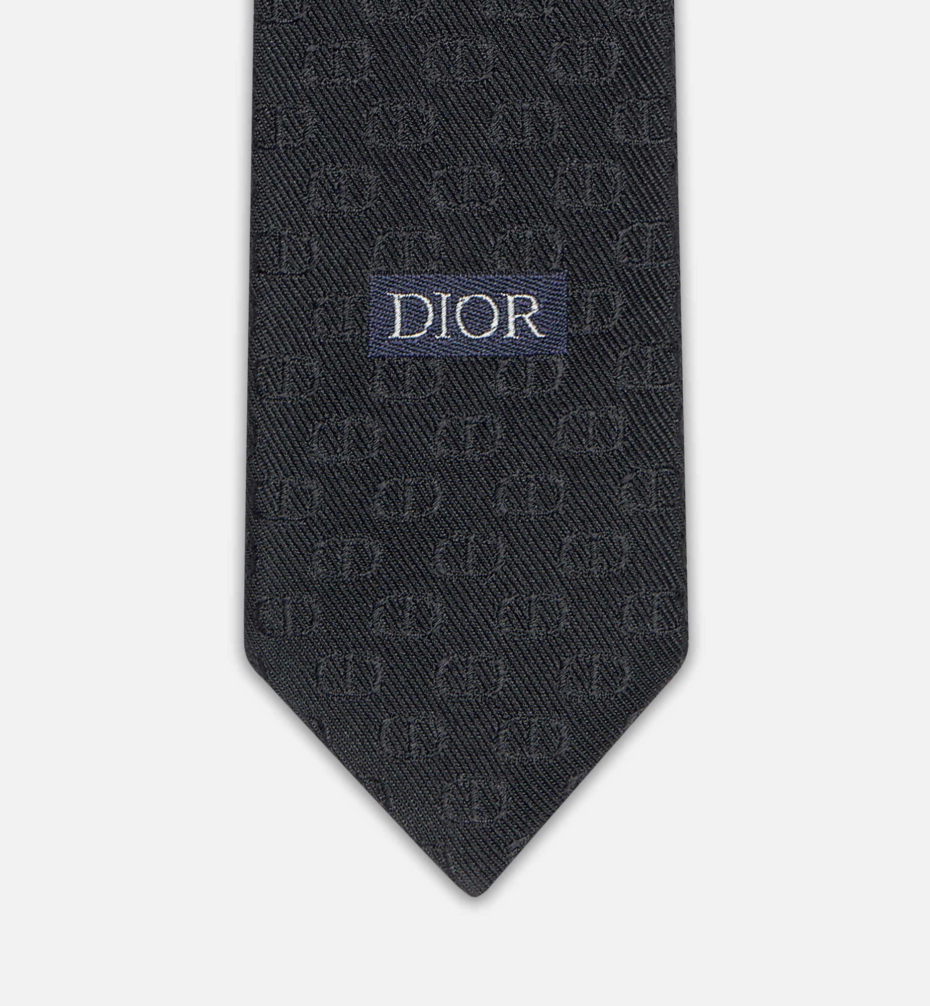 The black tie showcases the CD Icon motif in a tonal version. Crafted in silk, the refined style will elevate suits with a graphic touch. Tonal allover CD Icon jacquard. Dior jacquard signature on the exterior of the tail. 100% silk. Made in Italy