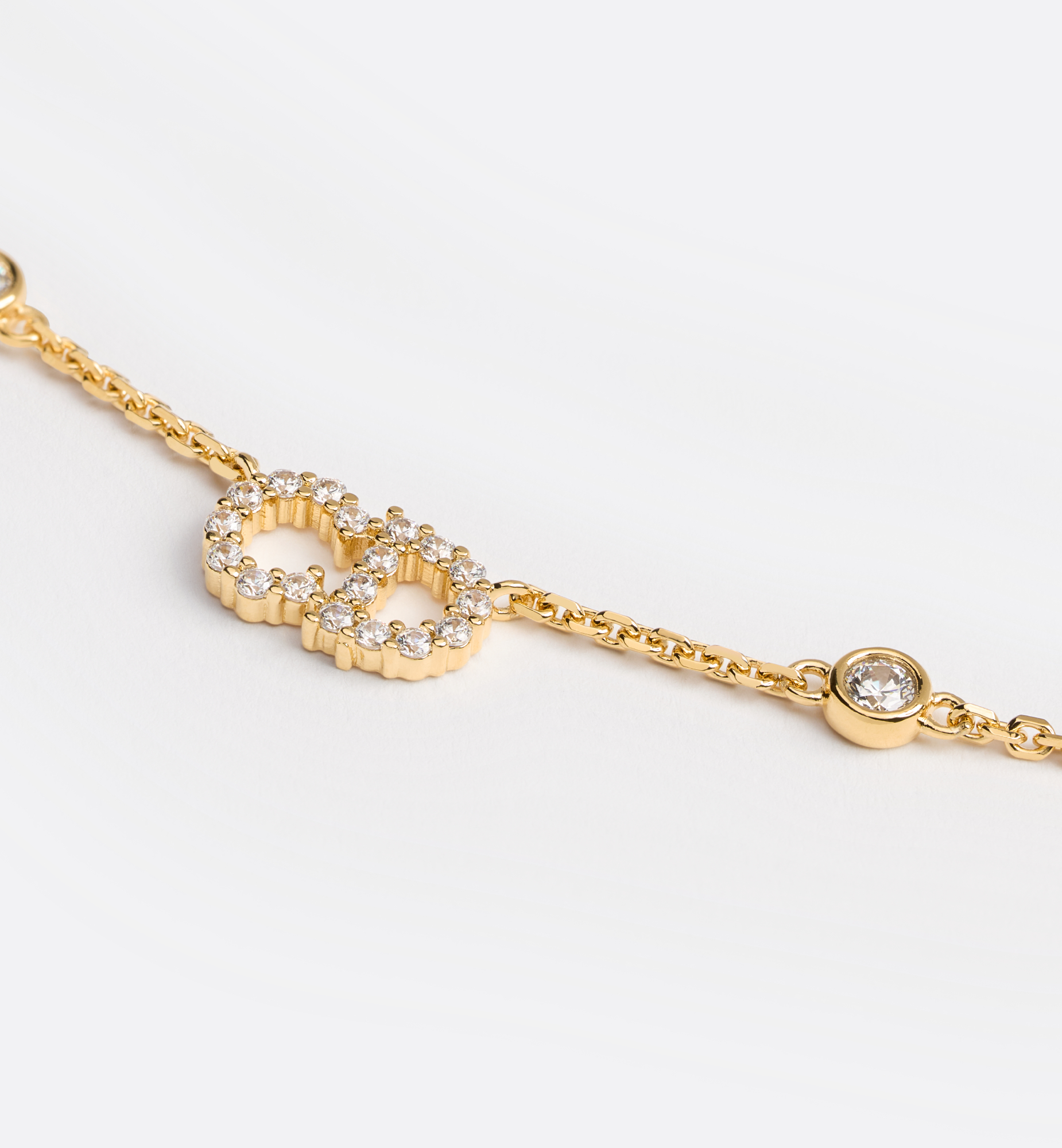 The Clair D Lune necklace reflects the House’s understated elegance. A fine gold-finish metal chain is embellished with small white resin pearls and sparkling crystals. The CD signature in the center is also adorned with crystals. The delicate style can be easily coordinated with other jewelry pieces. White resin pearls. Cubic zirconia. CD signature. Gold-finish metal. Lobster clasp. Made in Germany or Portugal