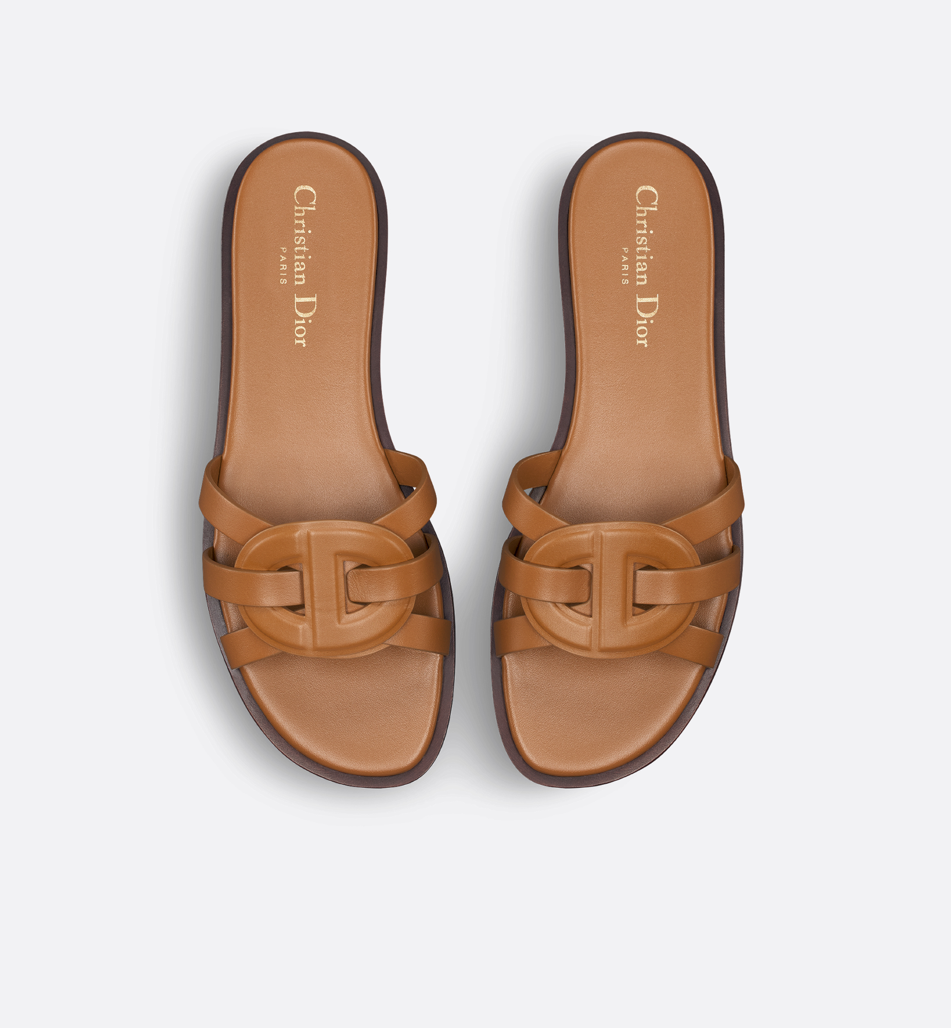 New for Fall 2025, the D-Club slide revisits a timeless style with simple elegance. The upper has delicate camel calfskin straps with an intertwining CD signature. The padded insole offers ultimate comfort while the minimalist design allows it to be easily slipped on to complete laid-back attire. Main composition: calfskin. Calfskin lining. CD signature. Padded polyurethane insole. Calfskin sole with engraved star, Christian Dior’s lucky symbol. Made in Italy