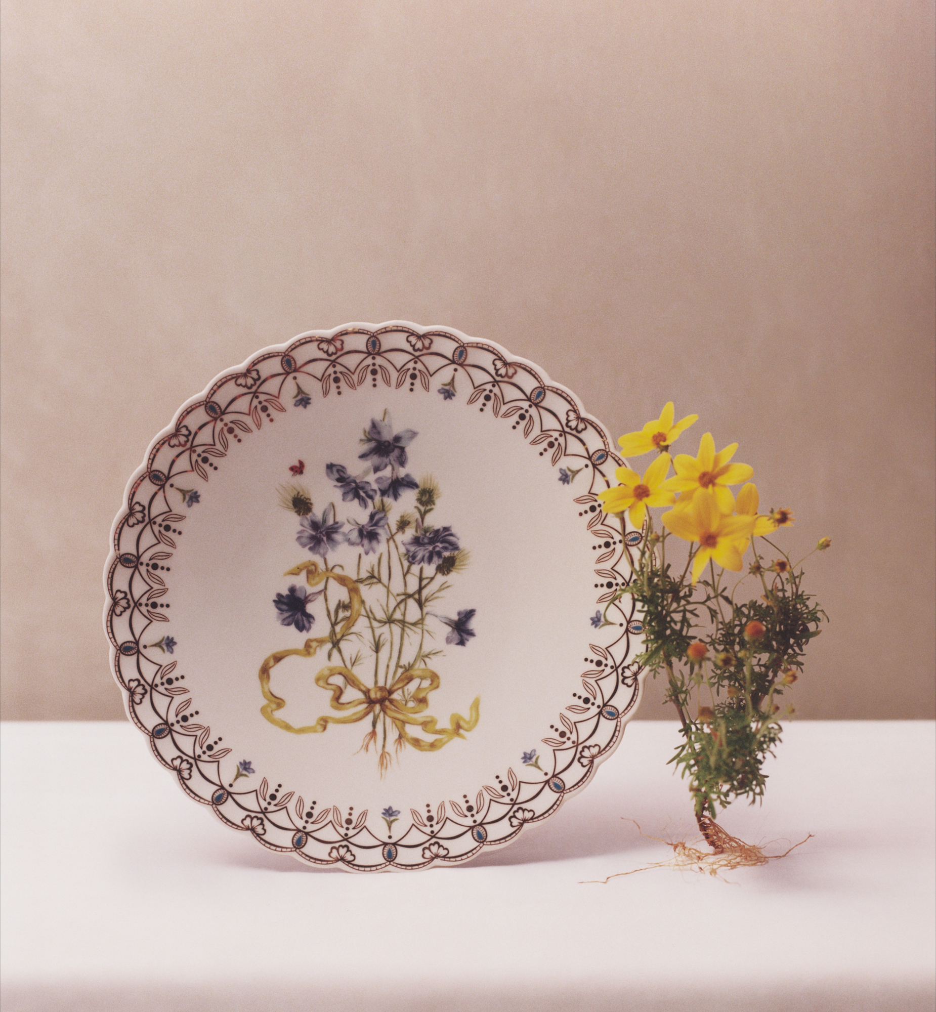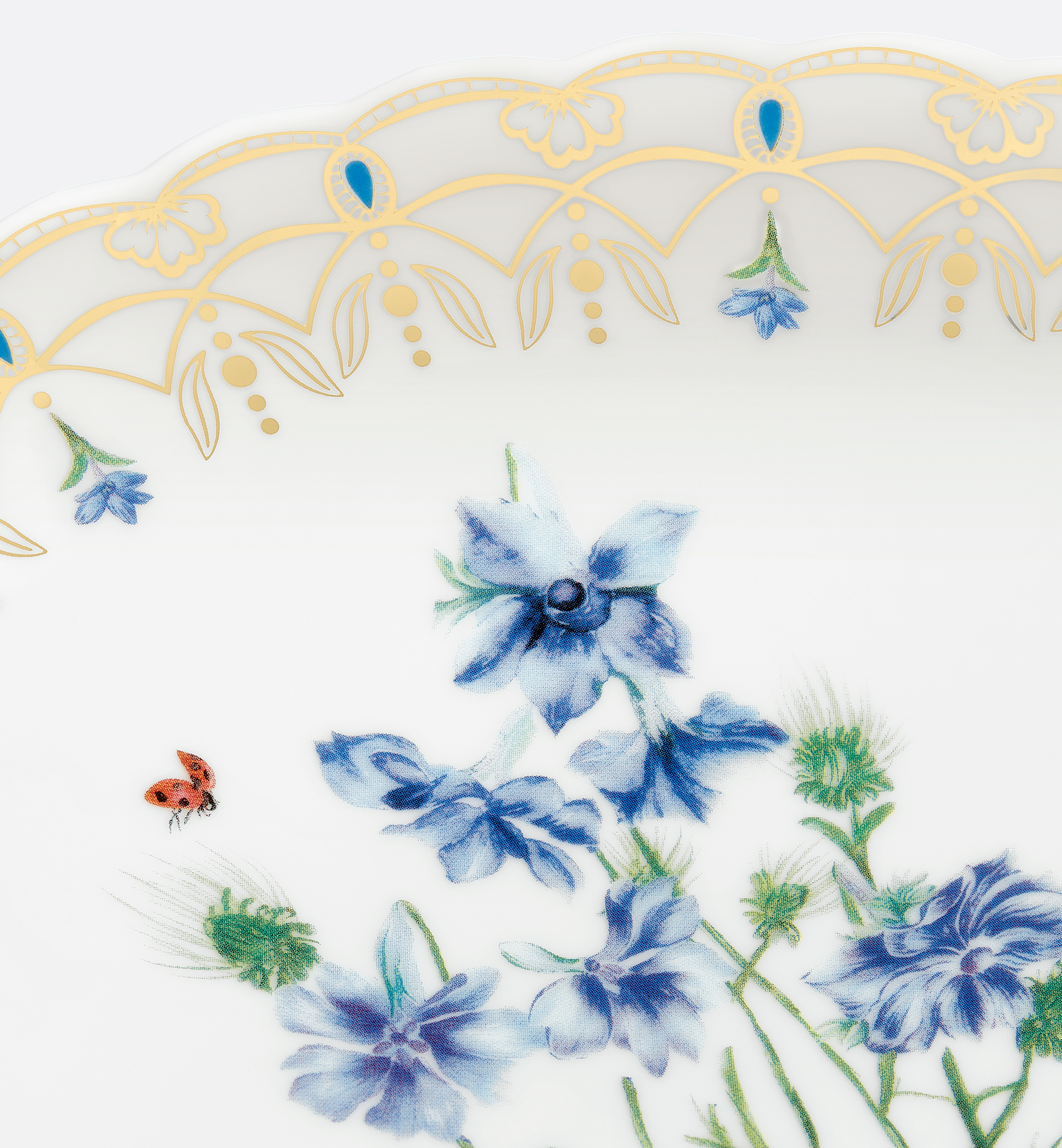 The dinner plate is part of Cordelia de Castellane’s Flower Couture collection, designed as a poetic herbarium with a quintessentially Dior aesthetic. Crafted in porcelain elevated by subtle multicolor tones, the plate is adorned with a delicate anemone flower entwined with an ethereal ribbon, and features scalloped edges decorated with 24-carat gold detailing. The dish will enhance tables with a couture touch and can be coordinated with other pieces in the Flower Couture collection for a Dior herbarium arrangement. 100% porcelain. 24-carat gold trim. Made in France. Hand wash. Wash with a non-abrasive sponge. Do not put in the microwave