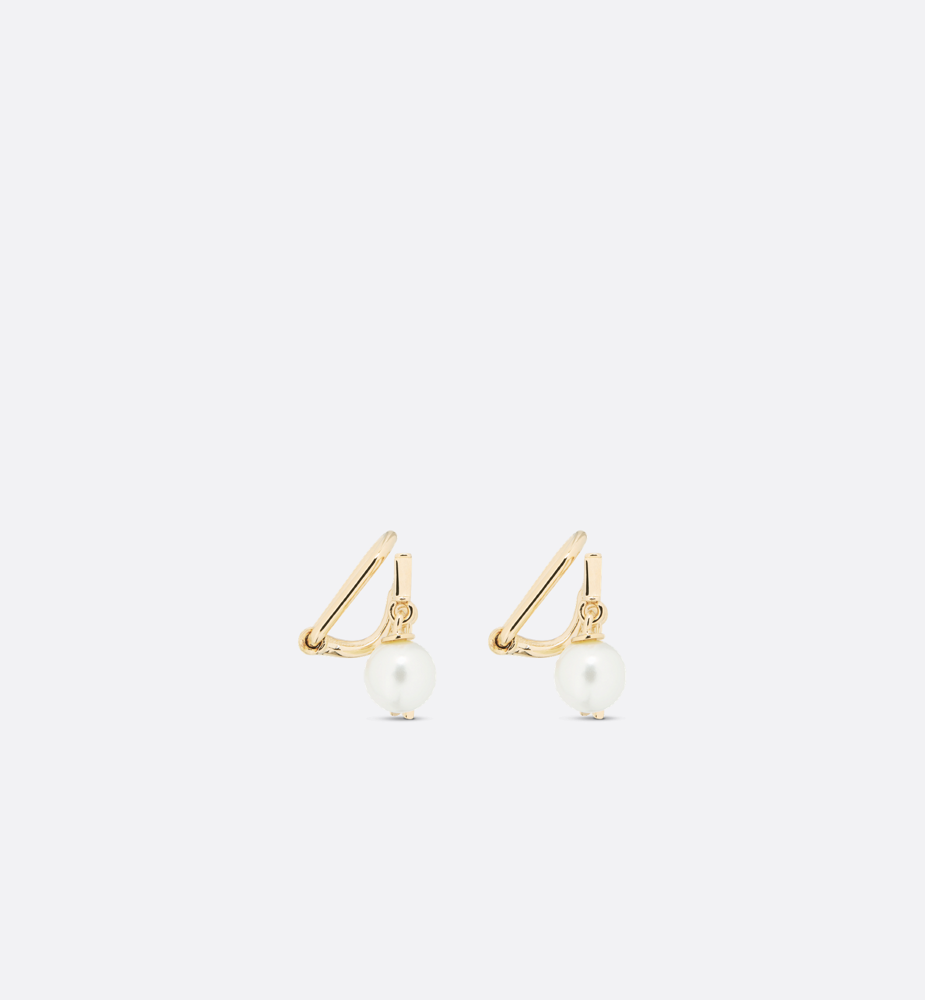 The Dio(r)evolution clip-on earrings are distinguished by their modern and elegant look. The gold-finish metal Dior signature is embellished with hanging charms: a white resin pearl, a star adorned with a white crystal and a faceted white crystal. The clip-on earrings can be coordinated with other Dio(r)evolution creations. White resin pearls. White crystals. Dior signature. Star charm. Gold-finish metal. Clip-on clasp. Sold as a pair. Made in Europe