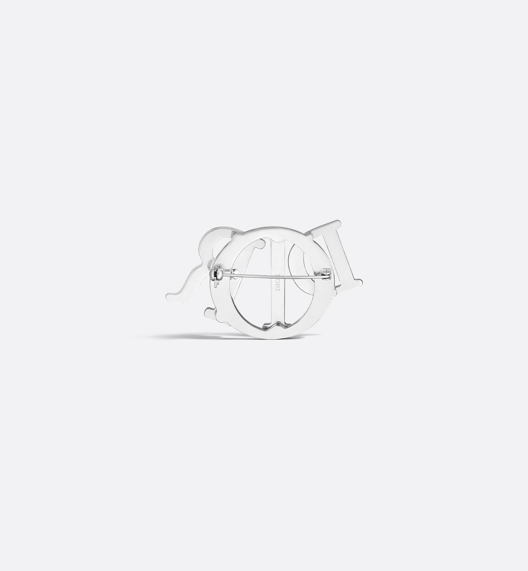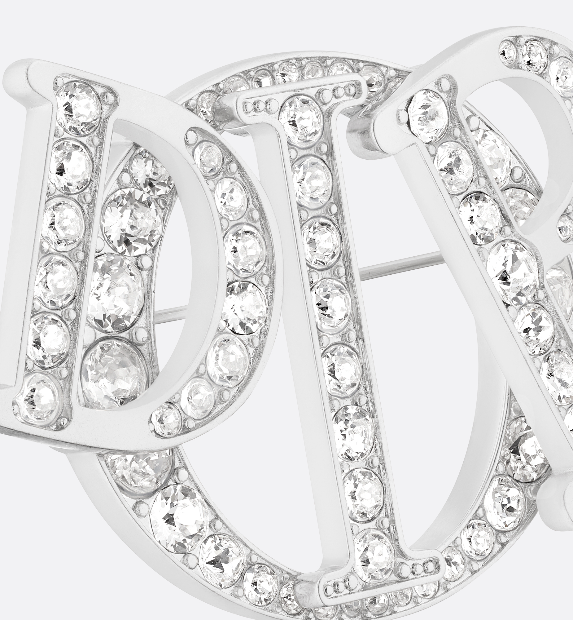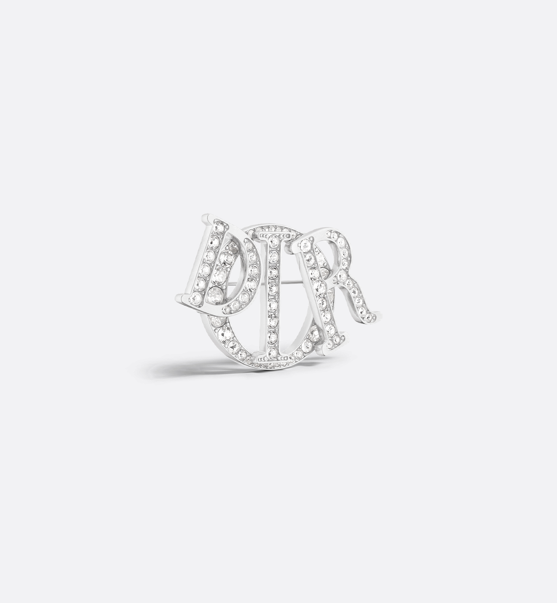New for Spring 2025, the silver-finish brass brooch offers a new take on the iconic Dior signature, adorned in white crystals. The brooch can be teamed with other Dior Charm creations from the collection. Dior Charm signature. White crystals. Silver-finish brass. Dior signature on the back. Pin fastening. 60% brass, 40% crystal. Made in Germany
