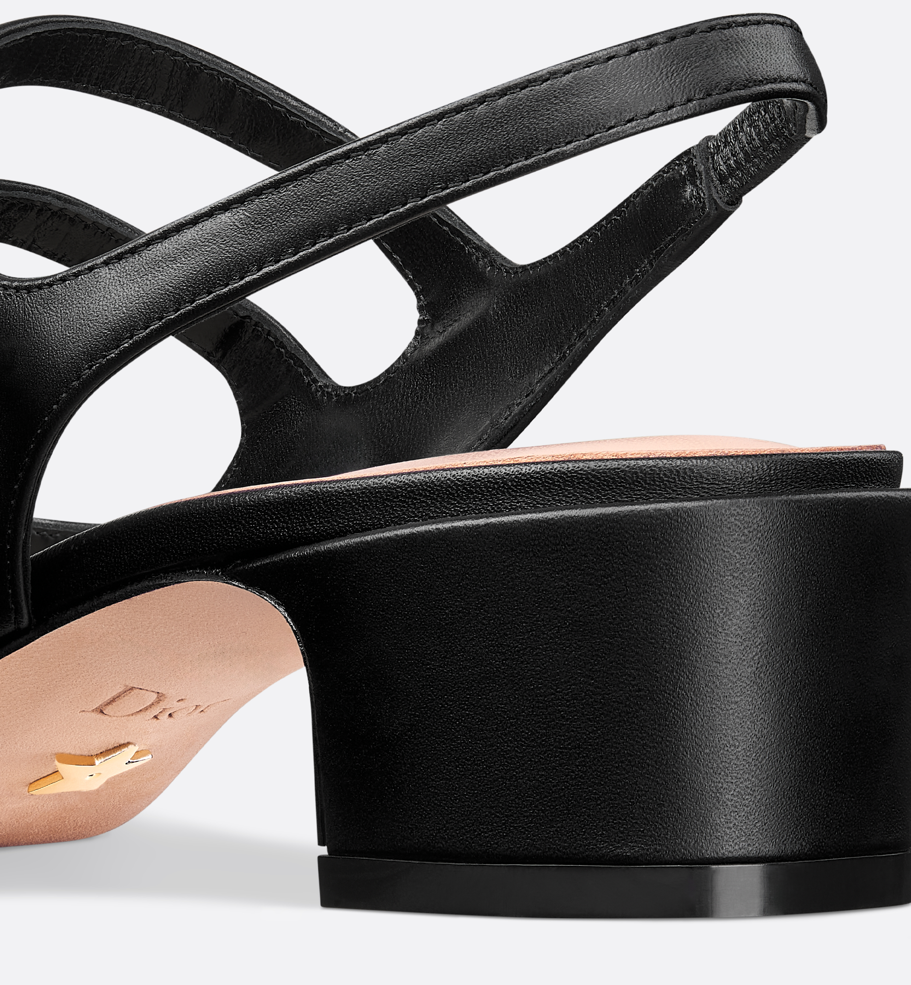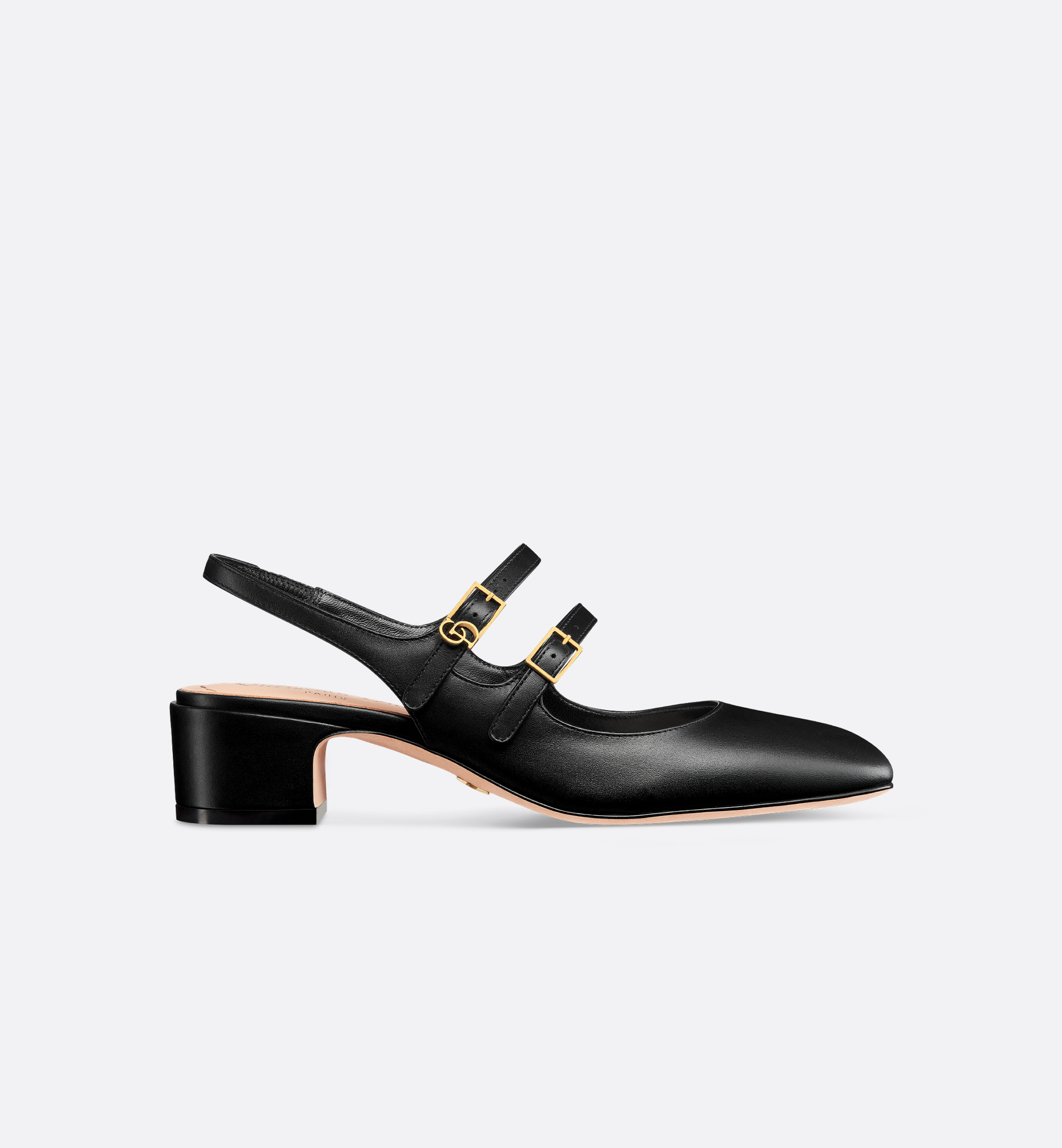 The Dior Chérie slingback pump revisits the classic Mary Jane with refined style. The black supple calfskin upper showcases an adjustable double strap on the front, with an archive-inspired gold-finish metal interlaced CD signature. Completed by a 4-cm (1.5-inch) block heel, the delicate pump will bring elegance to any look. Main composition: calfskin. Goatskin lining. Front straps with adjustable CD signature buckle. Padded calfskin insole. Leather sole with star, Christian Dior’s lucky symbol. Made in Italy