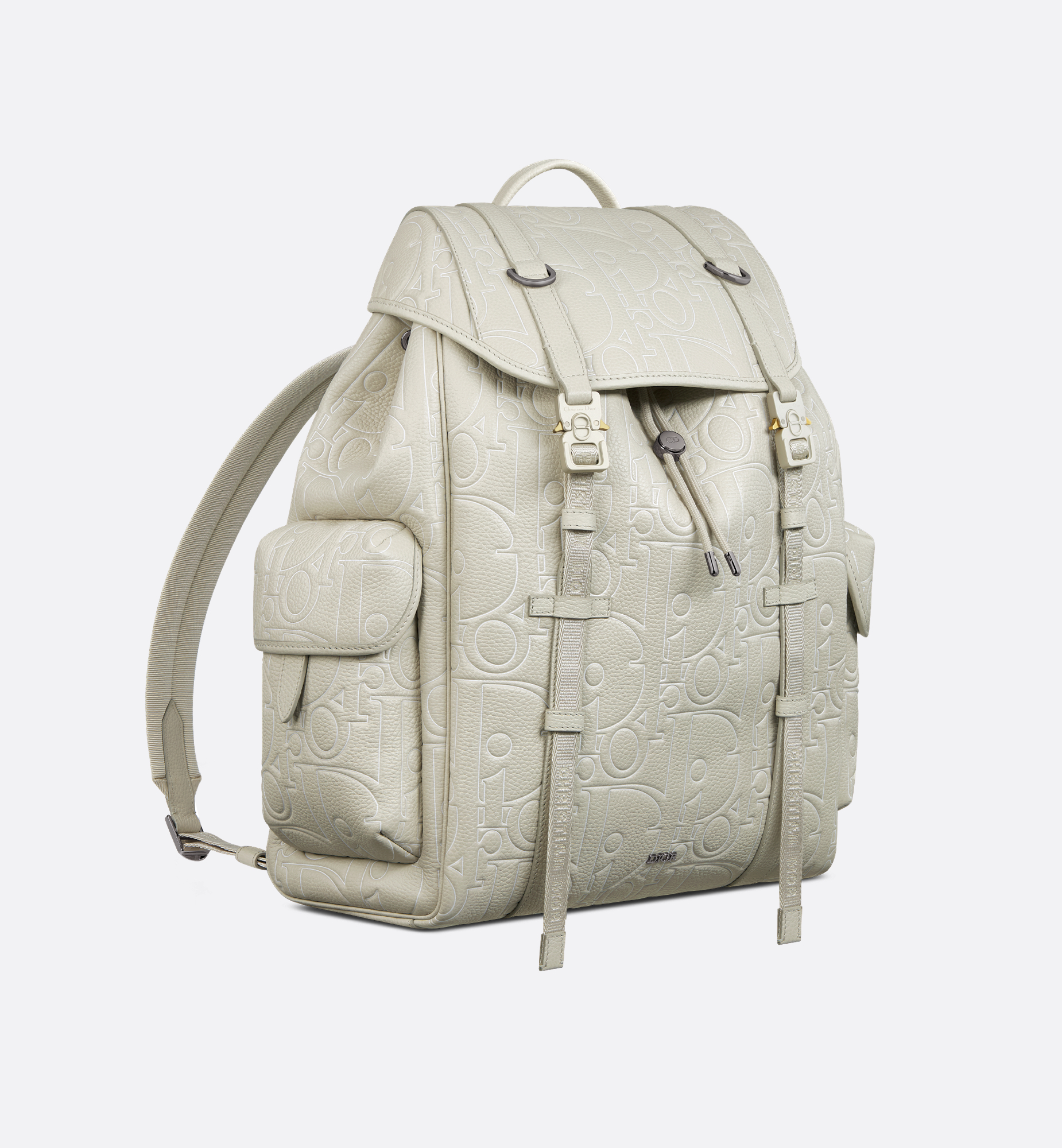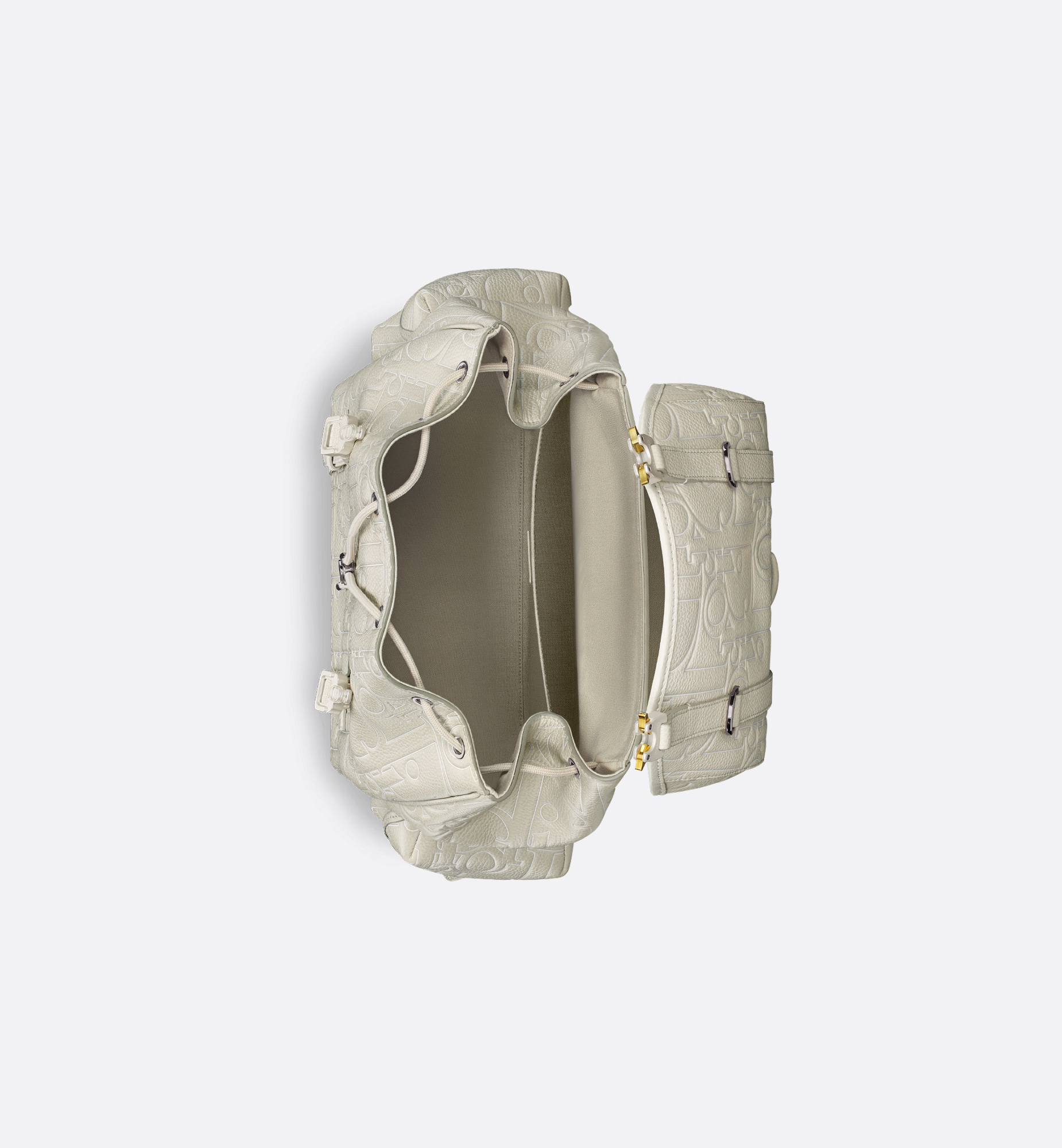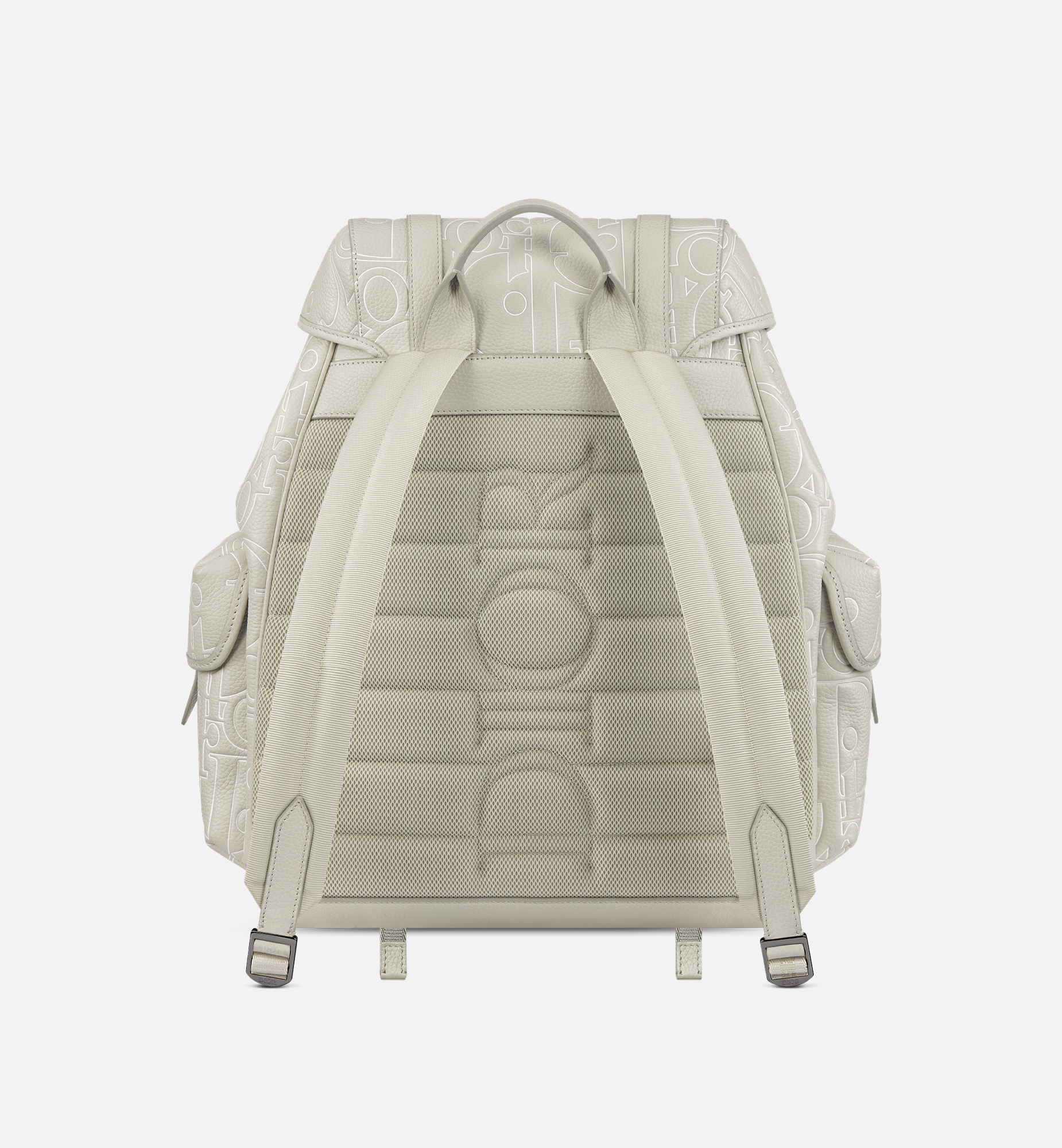 The Dior Hit the Road backpack with flap offers a modern take on the House’s couture spirit. The style is constructed in beige Dior Gravity Outline leather, a grained calfskin embossed with the iconic House motif for a 3D effect with graphic appeal. Featuring a Dior signature on the front as well as a flap with tonal CD aluminum mini buckles and two Christian Dior nylon jacquard straps, it has a spacious main compartment and two side pockets with magnetic flaps. The practical backpack will complete casual outfits. Main composition: technical fabric and calfskin. Cotton, technical fabric and calfskin lining. Main compartment with flap and drawstring cord. Tonal CD aluminum mini buckles and D-rings. Interior flat compartment for laptop. Magnetic side flap pockets. Leather top handle. Adjustable padded shoulder straps. Padded mesh back with Dior signature. Ruthenium-finish brass Dior signature on the front. Embossed Dior signature on the interior. Dust bag included. Made in Italy