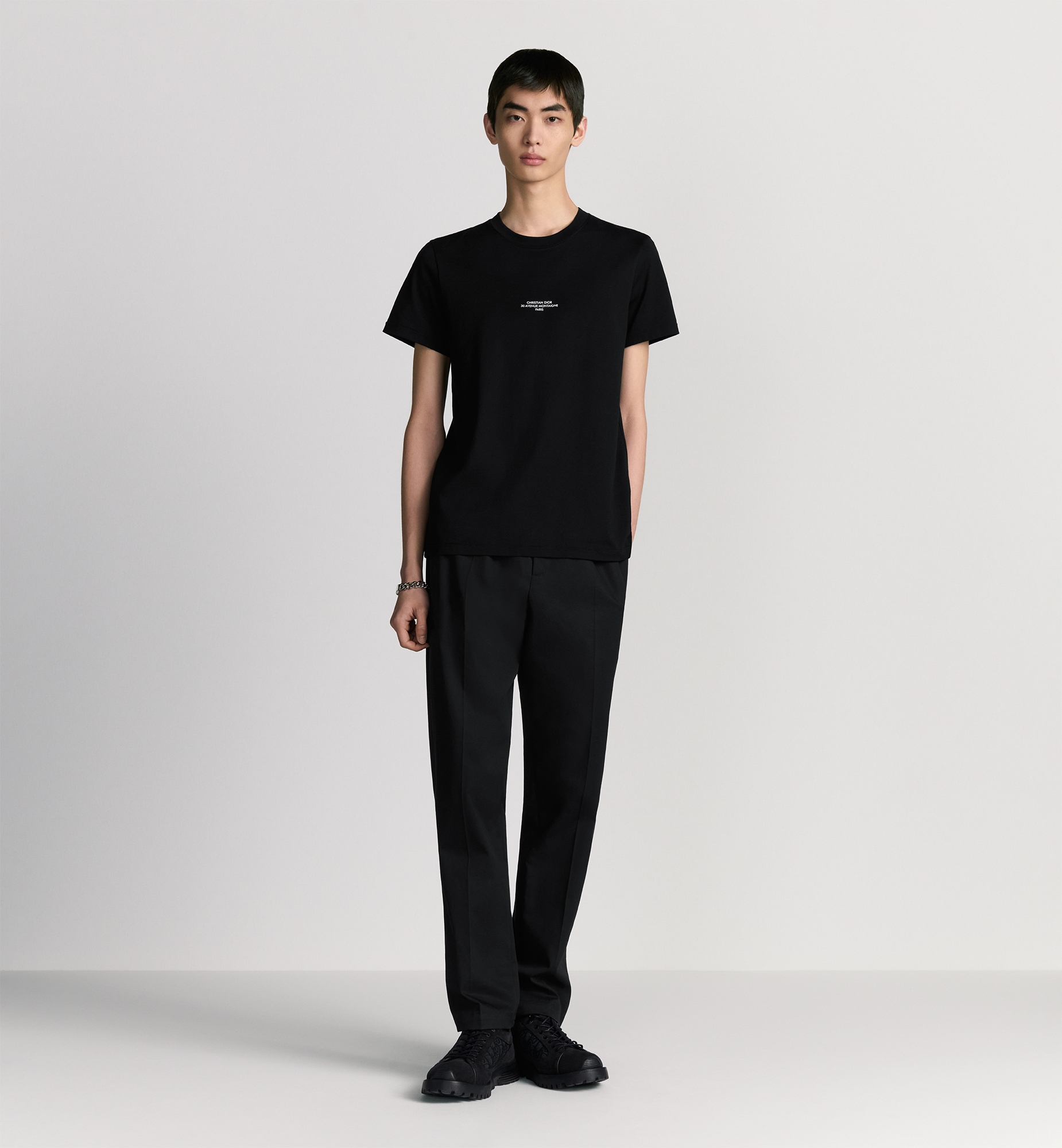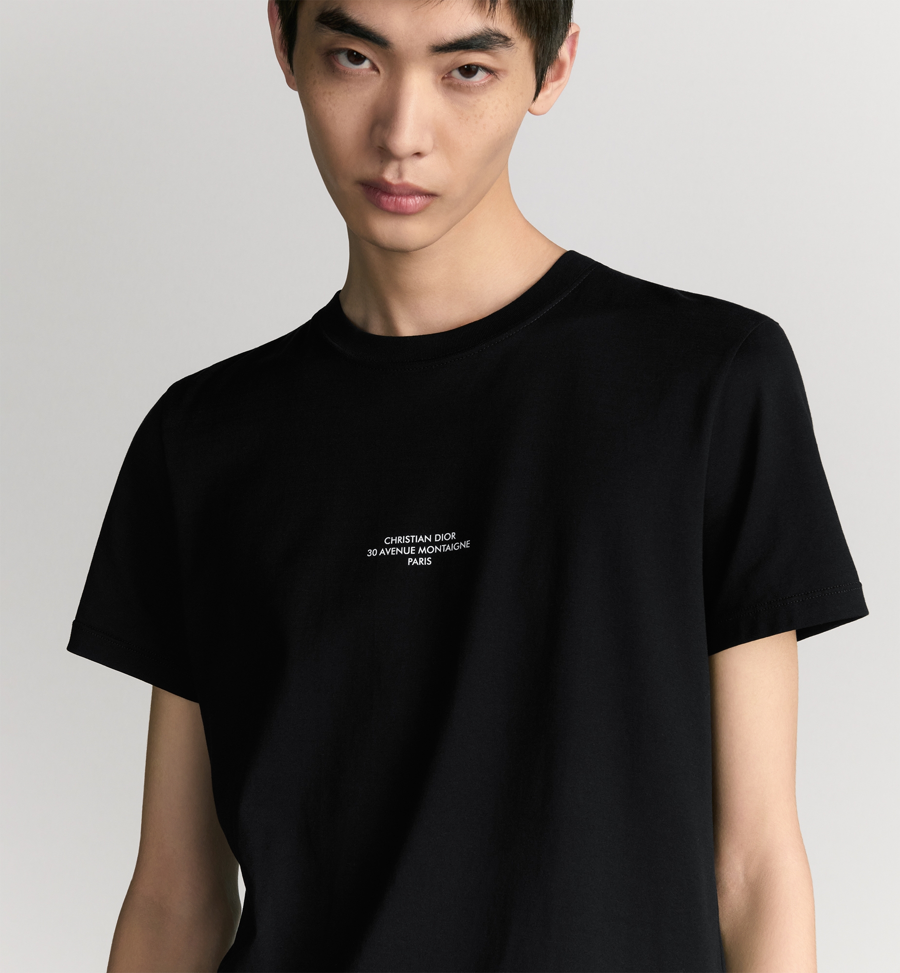 The Dior Montaigne T-shirt showcases the House’s iconic address. Crafted in black mercerized cotton jersey, it is embellished with a contrasting Dior Montaigne print on the chest. Featuring a modern silhouette, the lightweight T-shirt will pair well with jeans or track pants. Dior Montaigne print. Finely ribbed crew neck. 100% cotton. Made in Italy