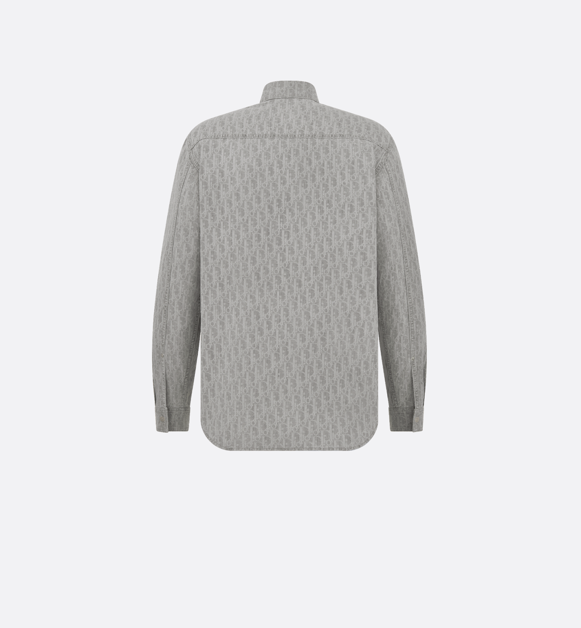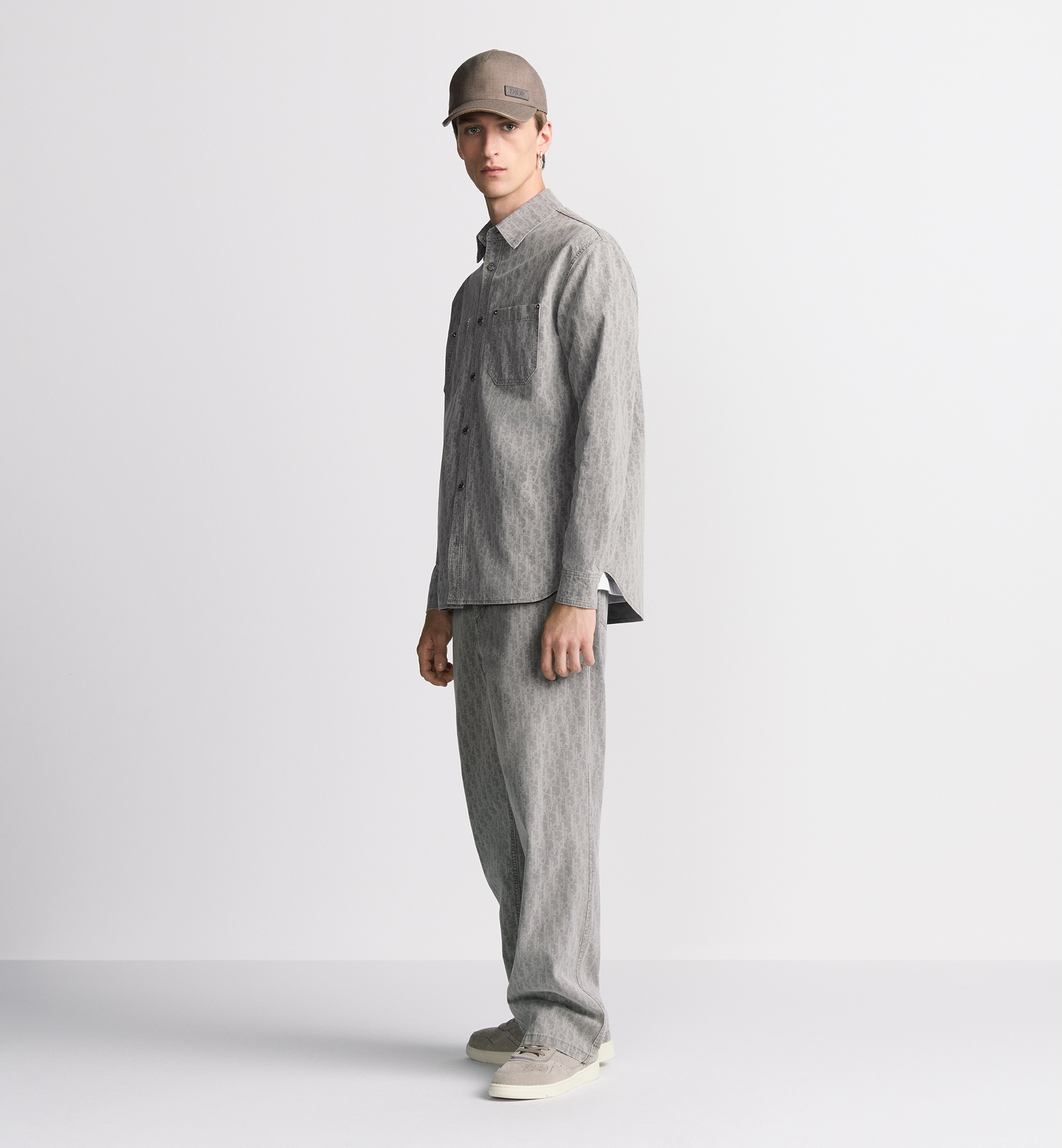 The overshirt offers a new take on the hallmark allover Dior Oblique motif. Cut in gray cotton denim, it features patch pockets on the chest and buttons with the Dior signature. Both graphic and understated, it can be worn with sportswear or more classic attire. Allover Dior Oblique motif. Engraved Dior signature button closure. Chest patch pockets. 100% cotton. Made in Japan