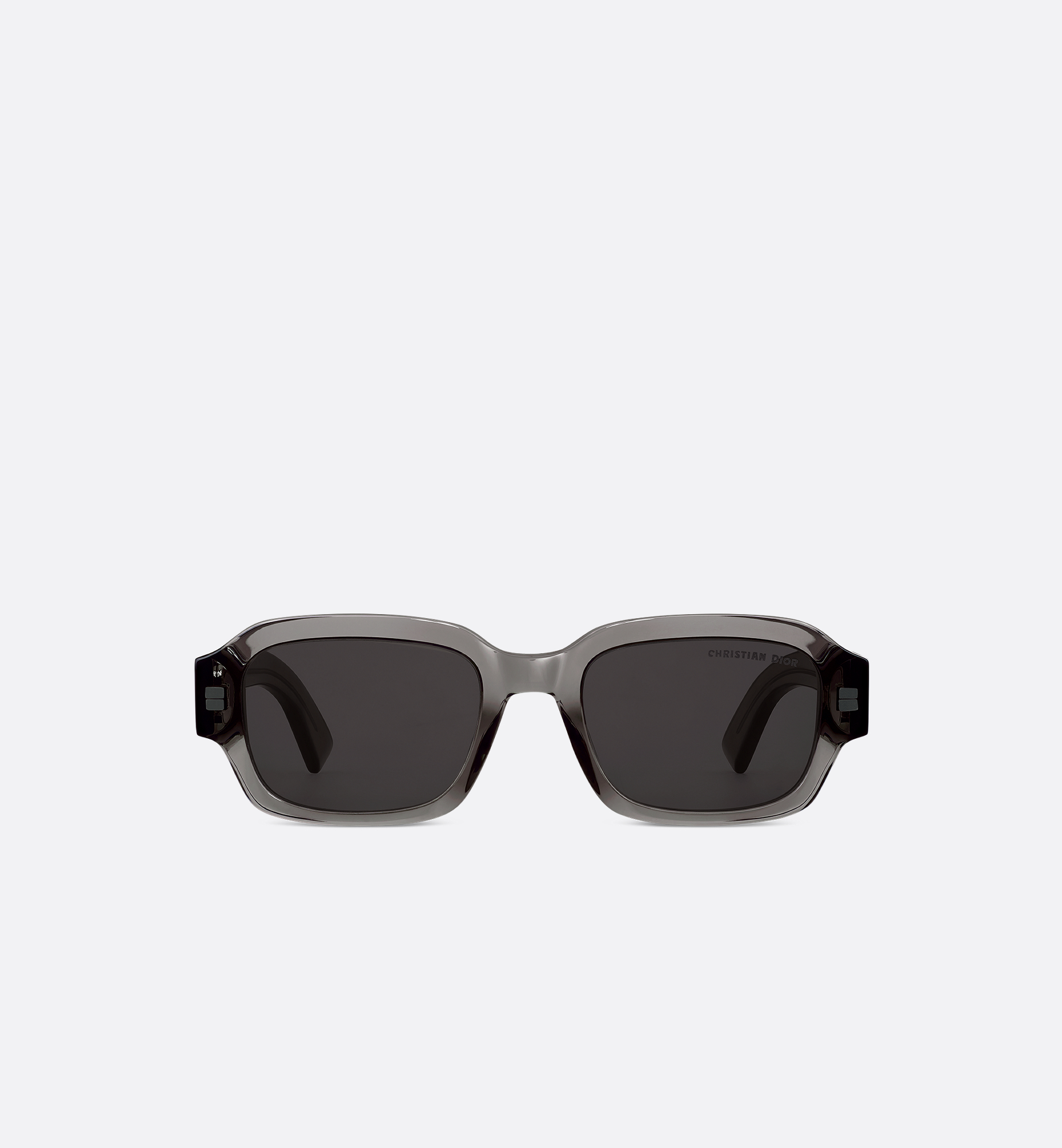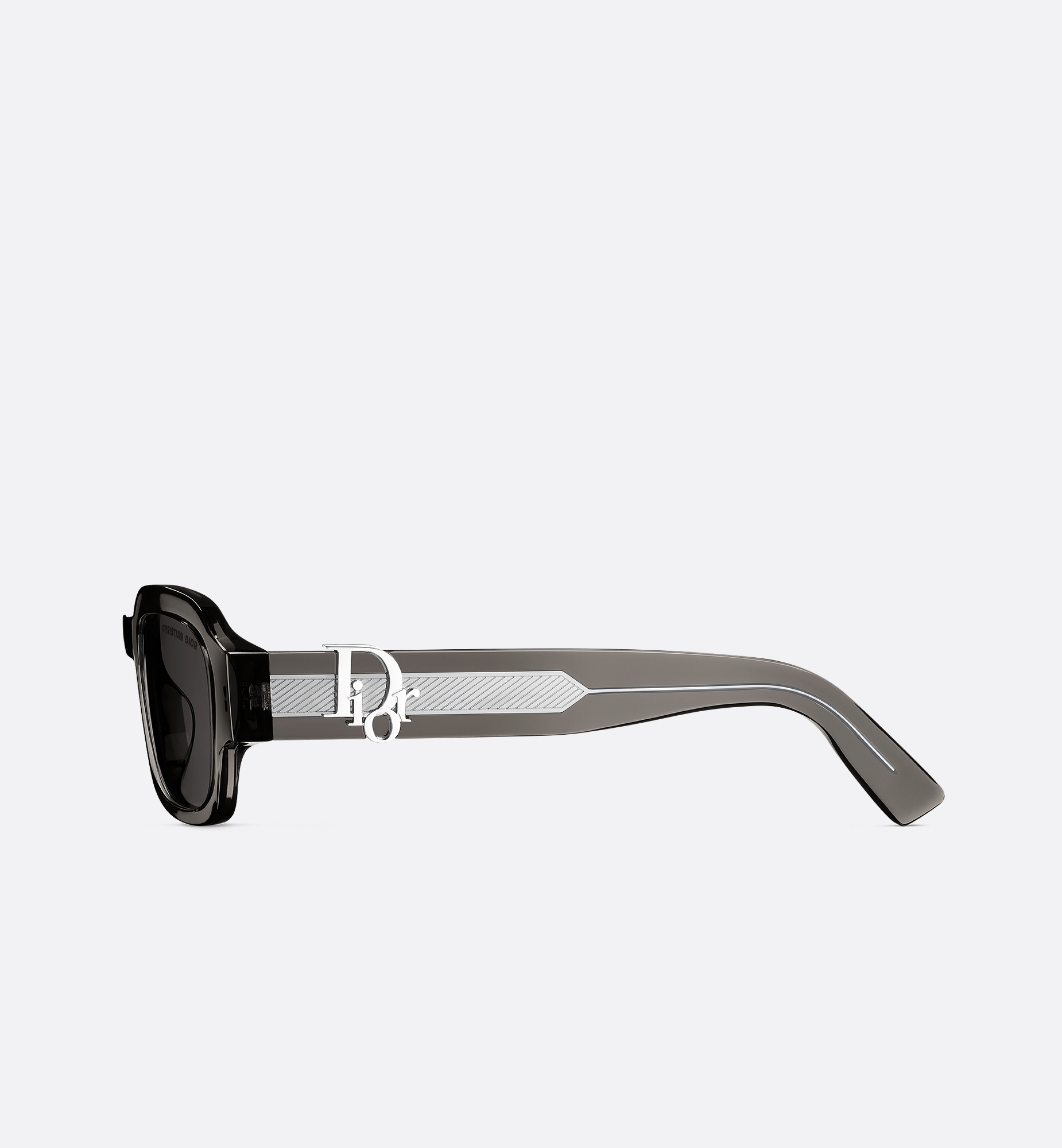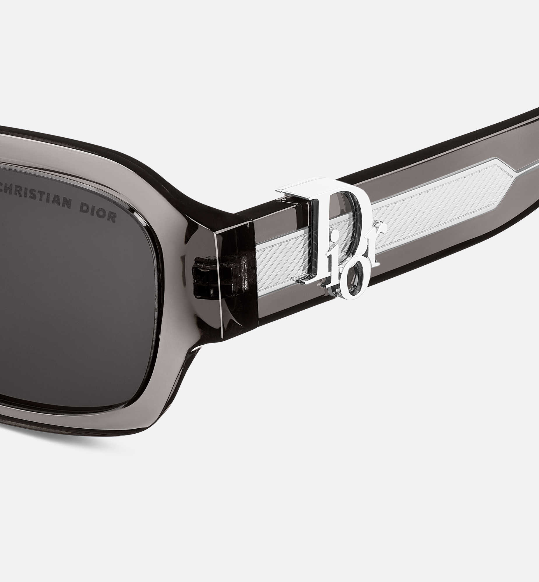 The Dior Oblique S2I sunglasses showcase the signature Dior Oblique logo in silver-finish metal. The rectangular frame in transparent black acetate has a metal insert on the temples featuring guilloche detailing. Gray lenses accented by the Christian Dior signature on the left lens complete the casual style. Transparent black acetate frame. Gray lenses. Christian Dior signature on the left lens. Temples with silver-finish metal Dior Oblique logo. Dior signature on the right temple interior. 100% UVA/UVB protection. Filter category: 3. Suitable for prescription lenses. Made in Italy