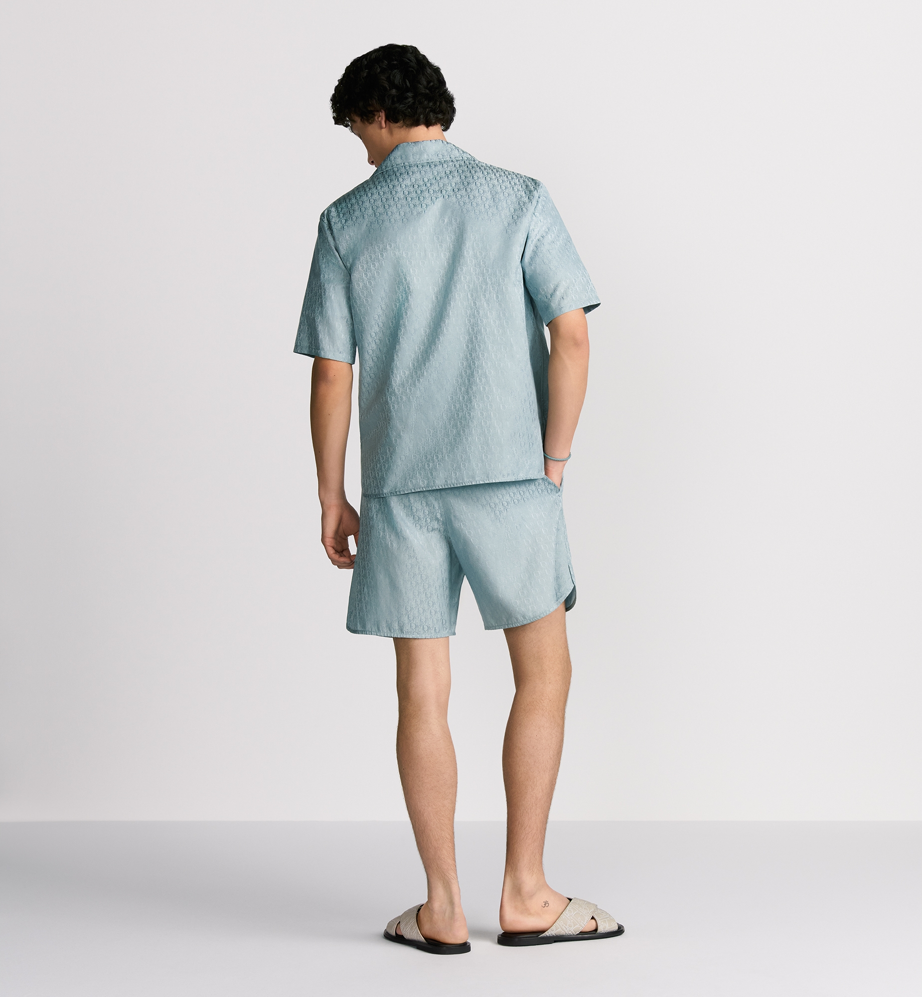 The shorts highlight the House’s hallmark Dior Oblique motif. Crafted in blue silk and cotton jacquard, the design has an athletic cut, accented by side slit pockets. The shorts can be paired with a matching shirt to complete the look. Allover Dior Oblique jacquard. Elastic waistband. Concealed front button closure. Mother-of-pearl buttons with Dior signature. Side slit pockets. 53% silk, 47% cotton. Made in Italy