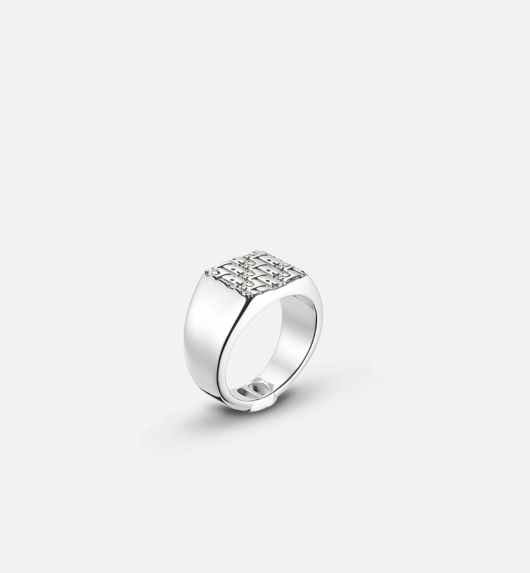 The silver signet ring is a timeless piece that combines elegance with modernity. Its streamlined design is adorned with an engraved Dior Oblique motif on the top, while the openwork CD Icon signature enhances the ring’s interior. The ring can be paired with other seasonal Dior Oblique creations. Engraved Dior Oblique motif on the top. Openwork CD Icon signature detail on the back. 100% sterling silver. Made in Germany