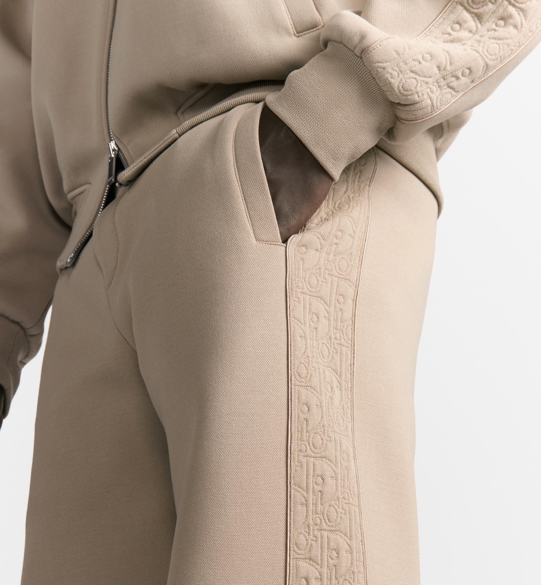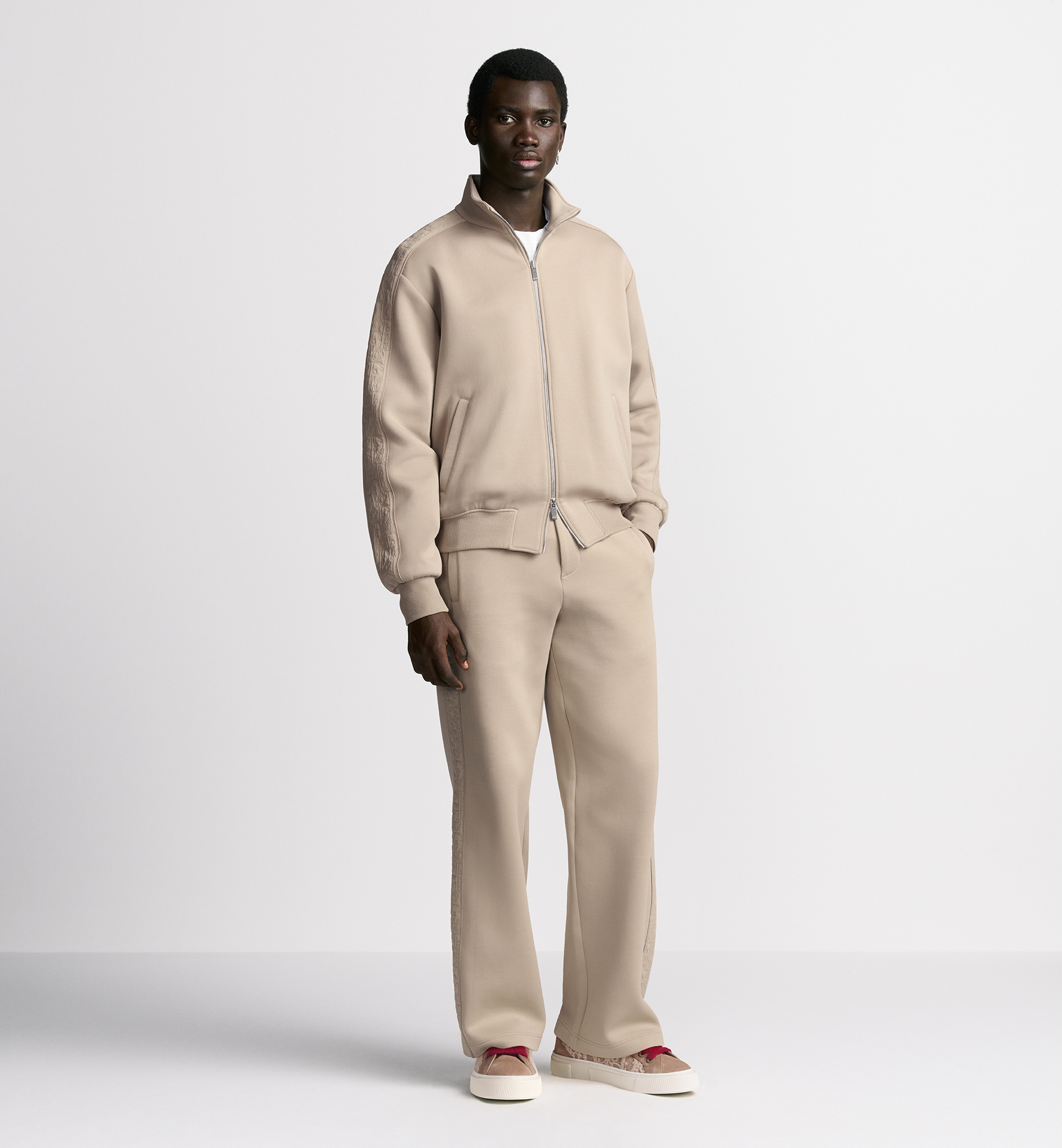 The track pants combine sportswear with elegance. Crafted in beige cotton-blend jersey, they are distinguished by Dior Oblique inserts on the sides, as well as piped side and rear pockets. At the intersection of styles, the track pants can be coordinated with a shirt or T-shirt. Dior Oblique motif inserts on the sides. Drawstring waistband. Side and rear piped pockets. 38% cotton, 32% polyester, 30% polyamide. Made in Italy