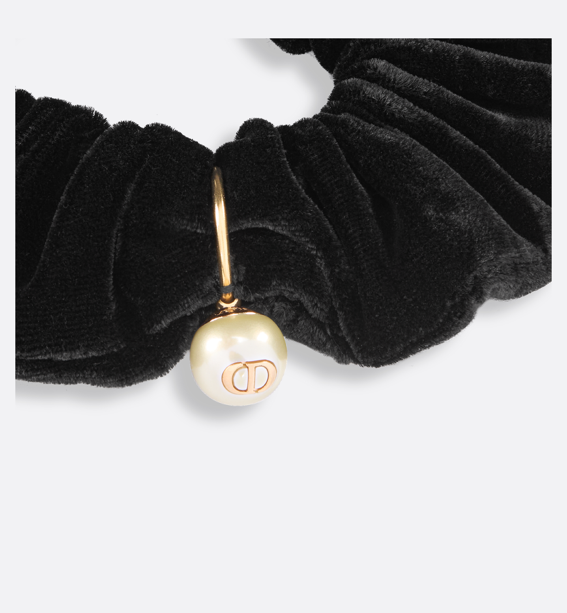 New for Winter 2025, the Dior Sweet hair tie offers a large design imbued with House codes of elegance and refinement. Crafted in black velvet, it is delicately adorned with a white CD resin pearl. The accessory will enhance any hairstyle with a couture touch. White resin pearl. Pale gold-finish metal CD signature. 82% viscose, 18% silk. Made in Italy