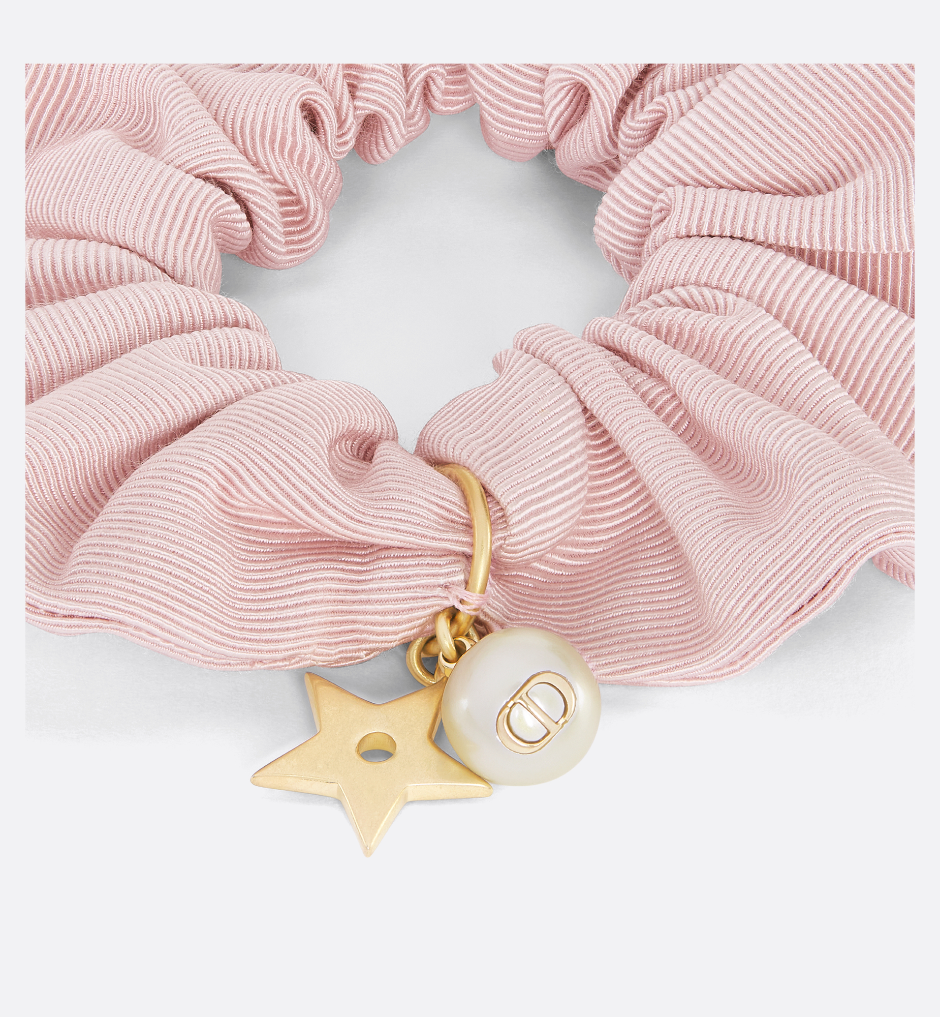 The Dior Sweet hair tie offers a large design inspired by House symbols. Crafted in pale pink grosgrain-effect technical fabric, it is delicately adorned with a lucky star and a white resin pearl with a pale gold-finish metal CD signature. The hair tie will enhance any hairstyle with a couture touch. White resin pearl. Gold-finish metal star charm. Pale gold-finish metal CD signature. 100% viscose. Made in Italy