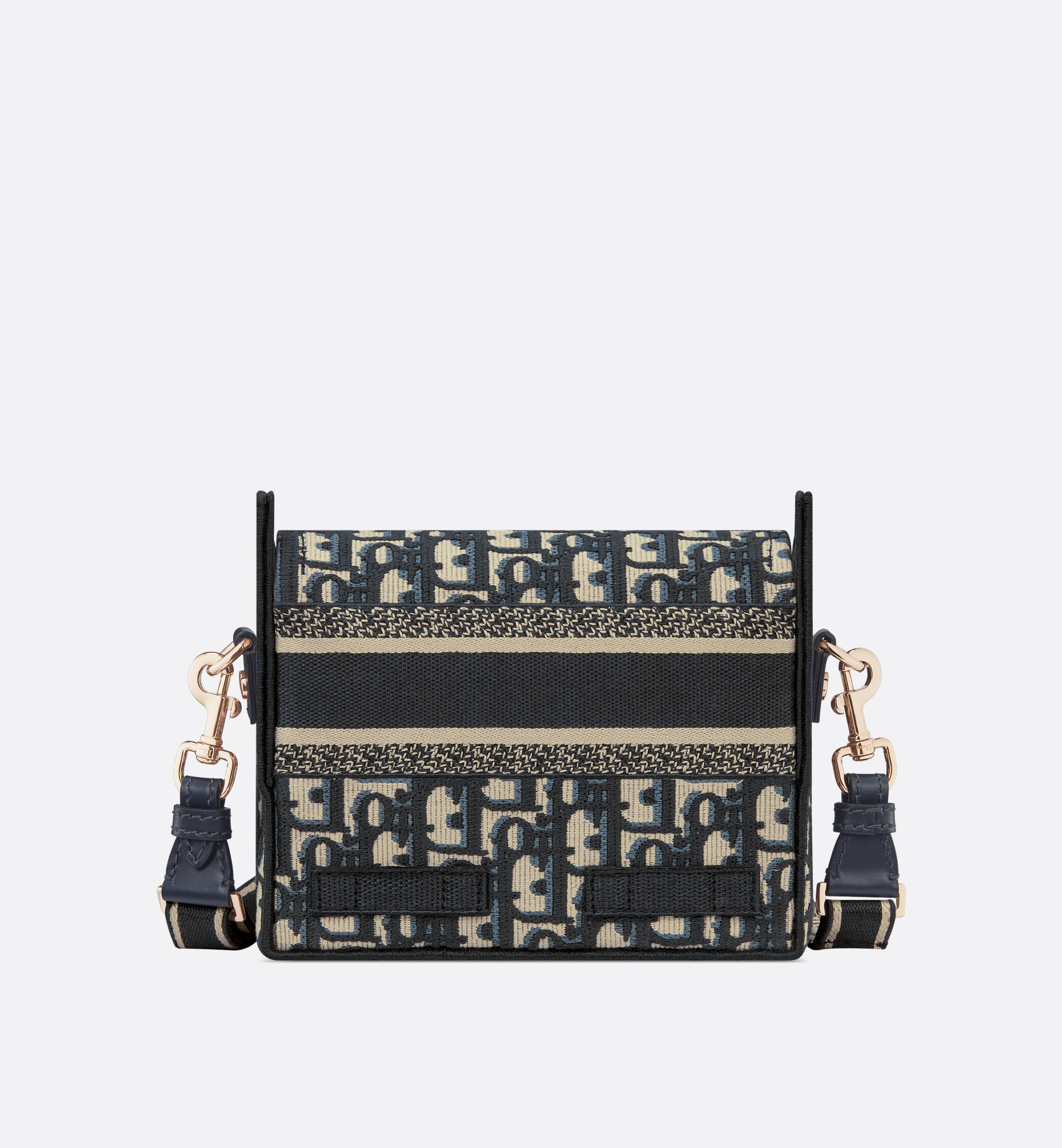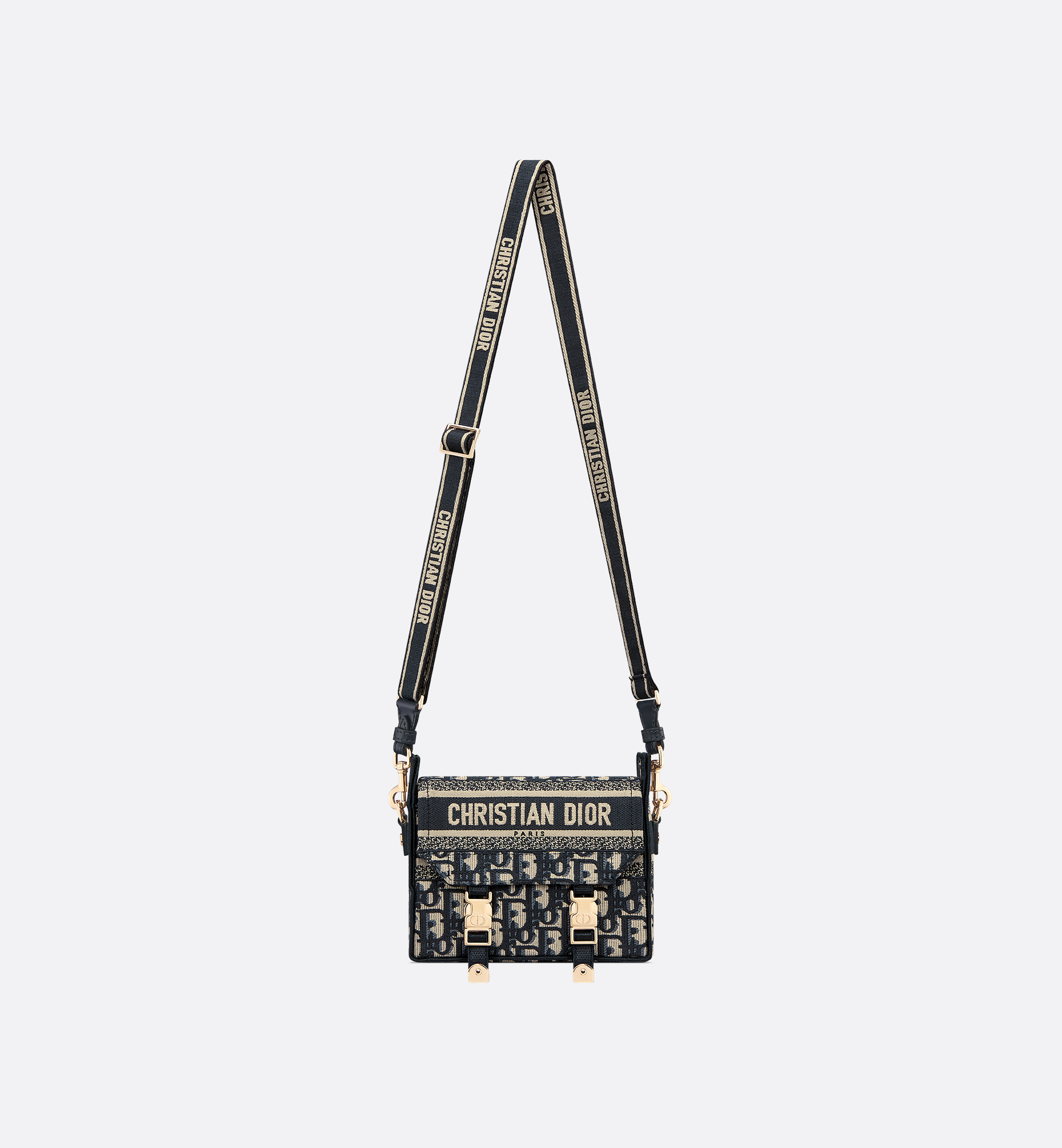 The Diorcamp nano bag updates the classic messenger bag with a relaxed and modern look. Fully embroidered with a blue Dior Oblique motif, the design is enhanced by a Christian Dior Paris signature flap and sportswear-inspired CD buckles in pale gold-finish metal. Equipped with an adjustable and removable strap, the compact messenger bag can be worn over the shoulder or crossbody, and will make an ideal urban companion. Main composition: cotton and calfskin. Cotton lining. Christian Dior Paris signature on the front. Flap closure with CD buckles. Adjustable and removable shoulder strap. Dust bag included. Made in Italy