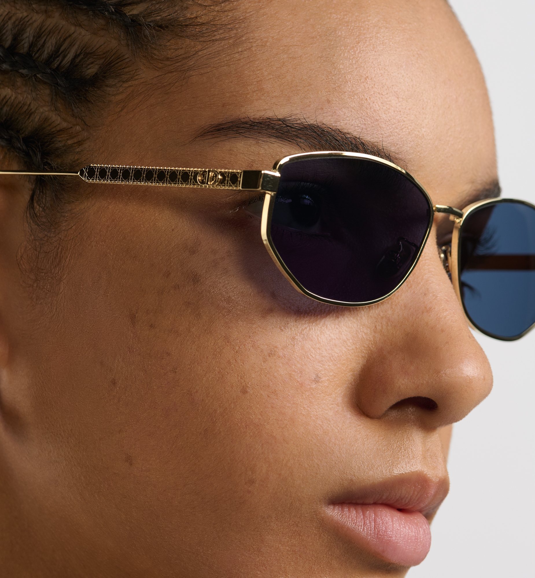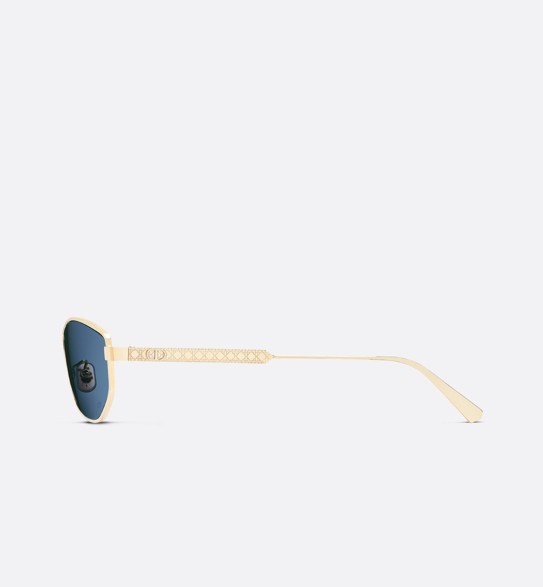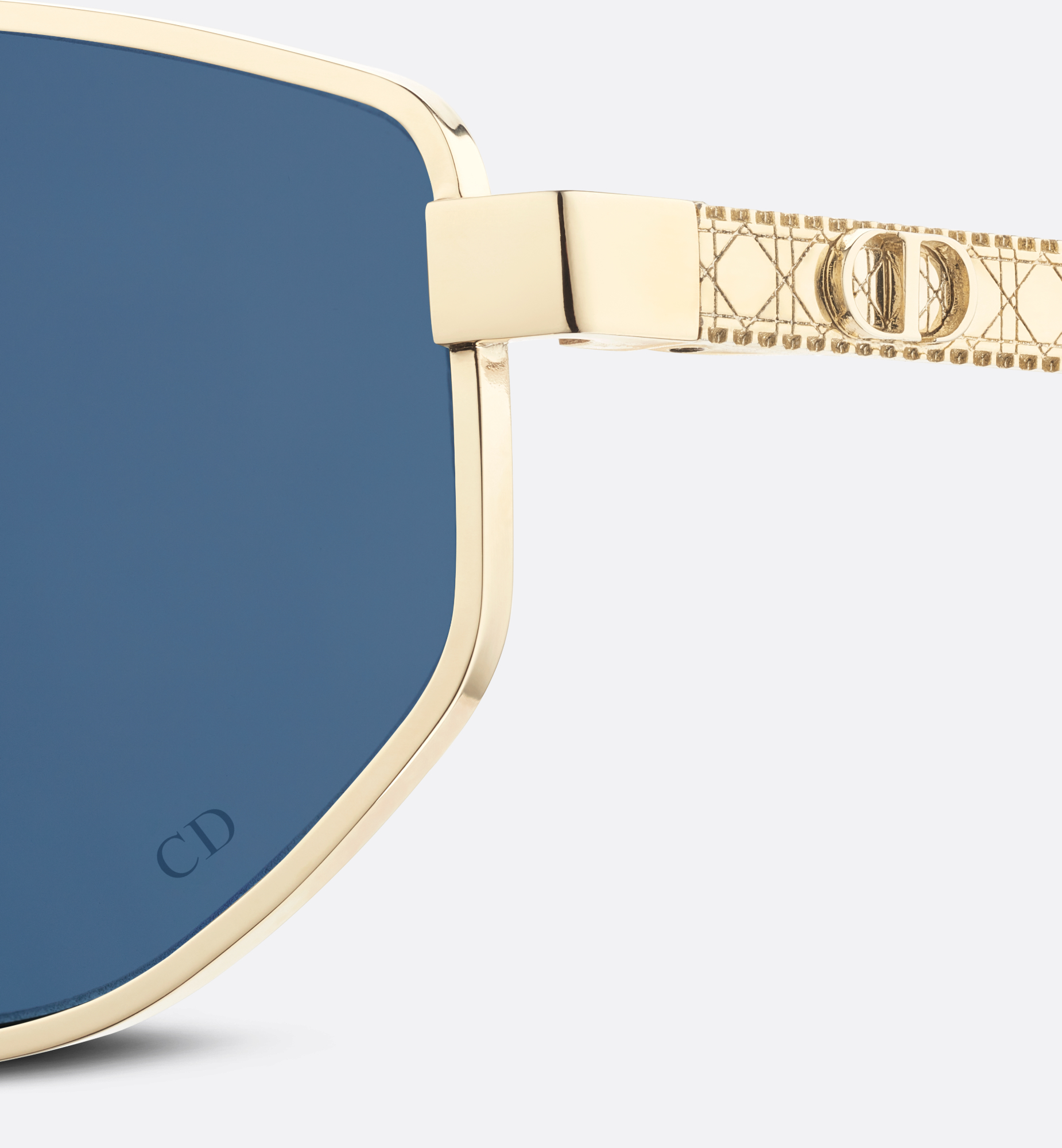 The DiorCannage B1U sunglasses are an elegant style adorned with hallmark details. The gold-finish metal oval frame stands out with delicate engraving on the temples showcasing the Cannage motif and CD signature. Completed by blue lenses, the glasses will lend a modern and refined touch to any attire. Gold-finish metal frame. Blue lenses. CD signature on the left lens. Engraved Cannage motif and metal CD logo along the temples. Dior signature on the right temple interior. 100% UVA/UVB protection. Filter category: 3. Suitable for prescription lenses. Made in Italy