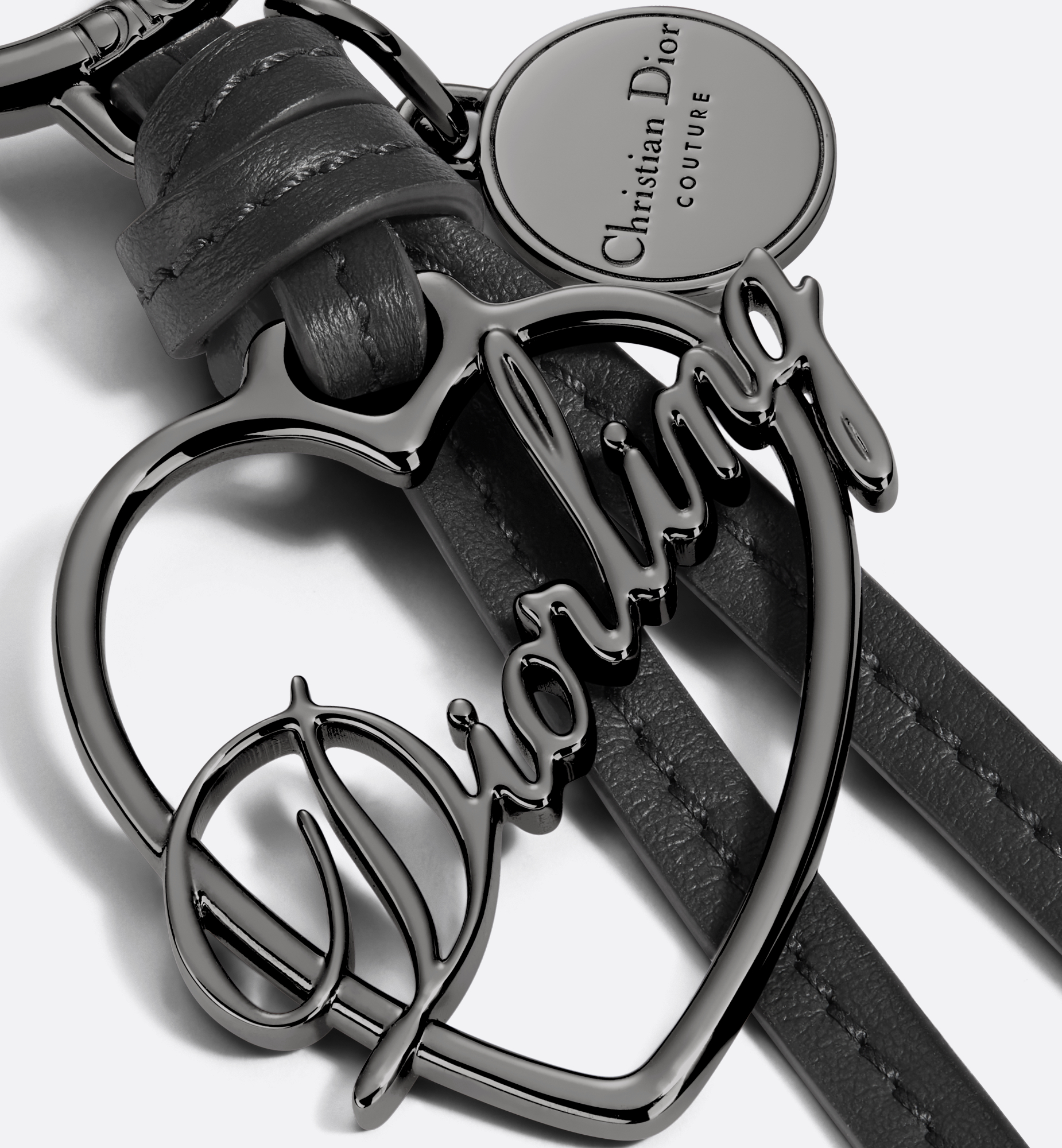 New for Winter 2025, the key ring showcases a heart bearing the Diorling signature inspired by House archives, honoring Dior’s heritage. The style is crafted in ruthenium-finish brass and gray smooth calfskin. Completed by a Christian Dior Couture medallion and a Dior-engraved split ring, the key ring can be easily attached to a belt loop or bag. Main composition: brass and calfskin. Dior-engraved split ring. Heart with Diorling signature. Christian Dior Couture engraved medallion. Dust bag included. Made in Italy or Spain