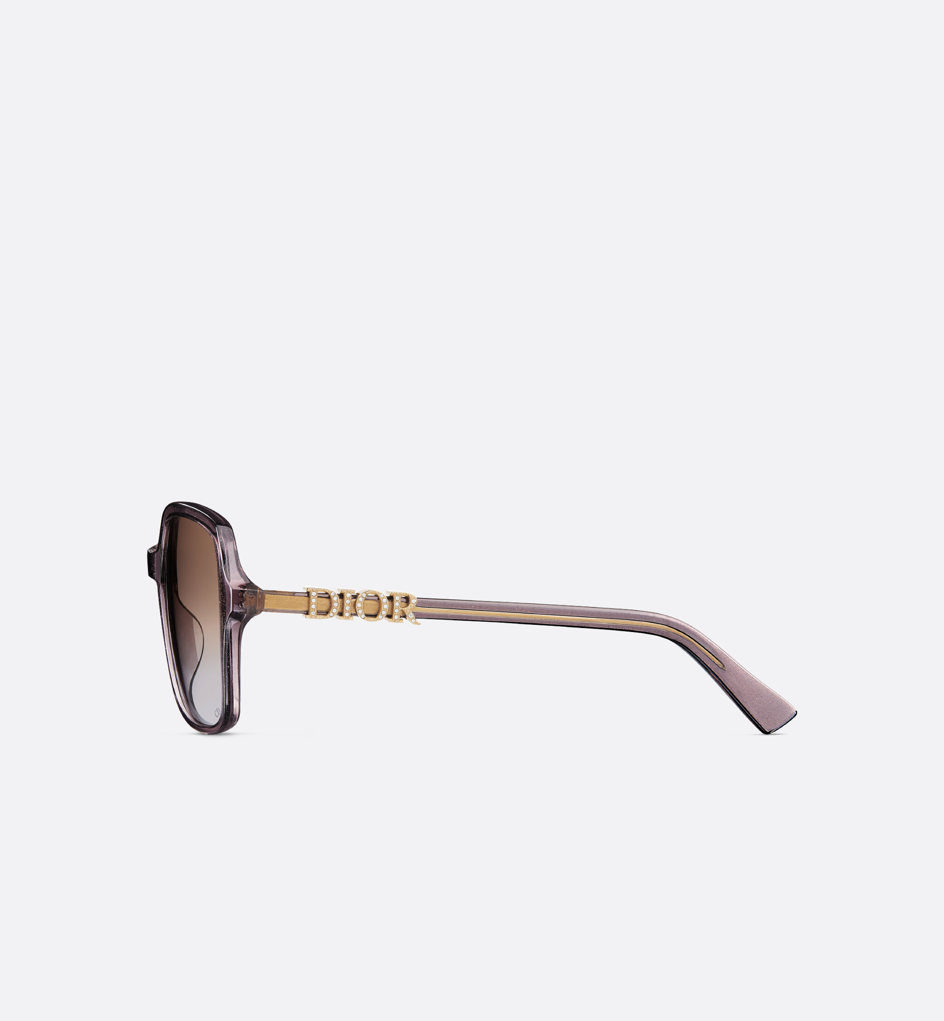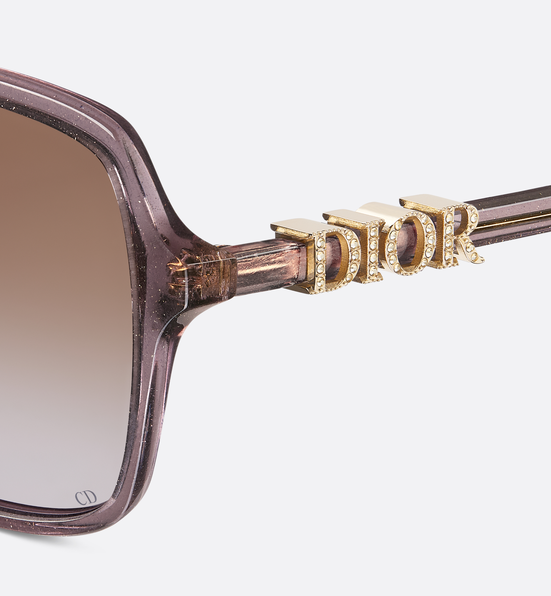 The DiorTreasure S1I sunglasses are distinguished by a square shape with contemporary appeal. The transparent glittery purple acetate frame is enhanced by a rose gold-finish metal Dior signature adorned with white Swarovski® crystals. Completed with brown-to-purple gradient lenses, the sleek design will add a stylish touch to any look. Swarovski® is a registered trademark of Swarovski AG Transparent glittery purple acetate frame. Brown-to-purple gradient lenses. CD signature on the left lens. Rose gold-finish metal Dior signature with white Swarovski® crystals. 100% UVA/UVB protection. Filter category: 2. Suitable for prescription lenses. Made in Italy