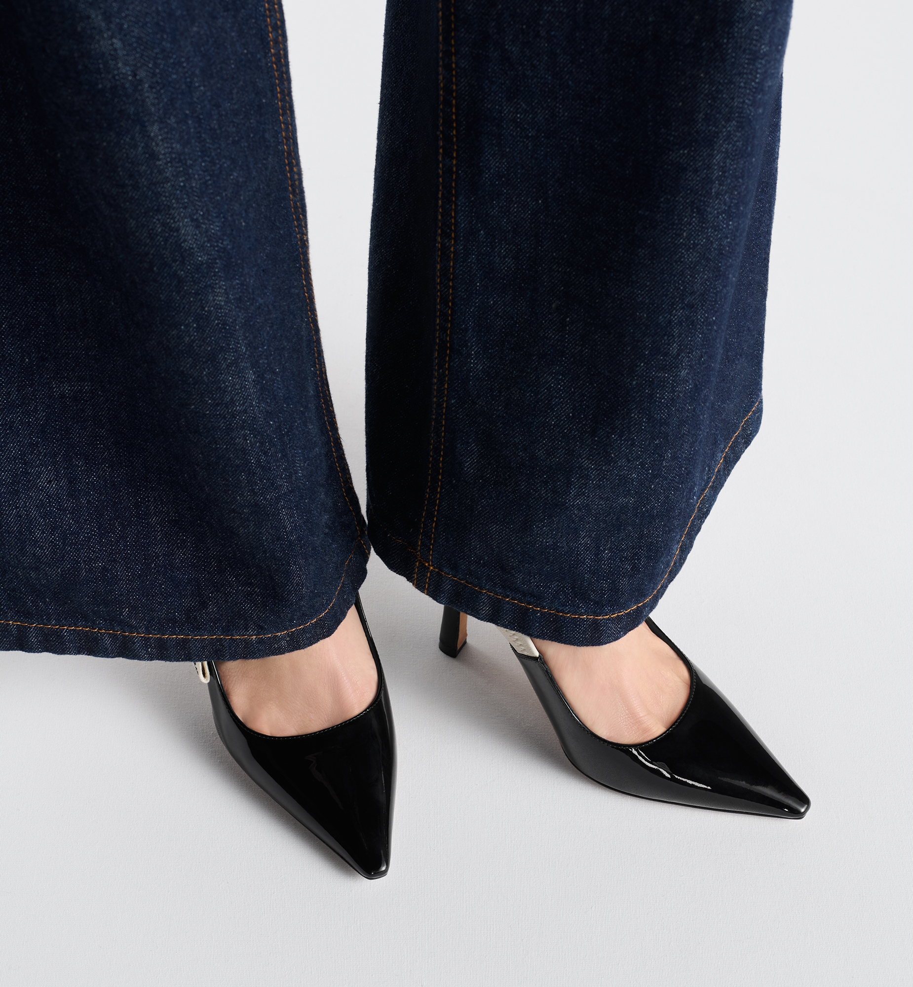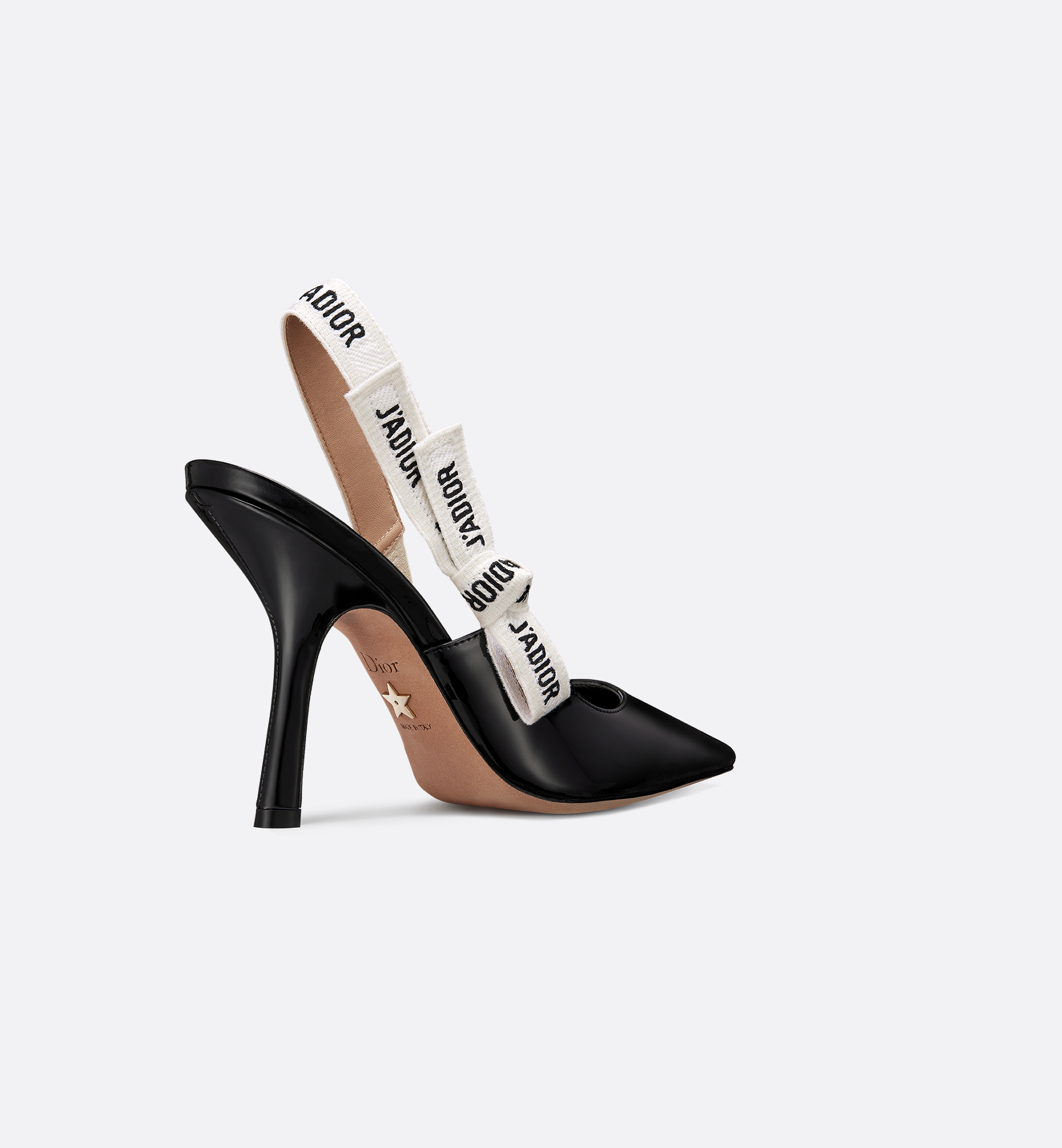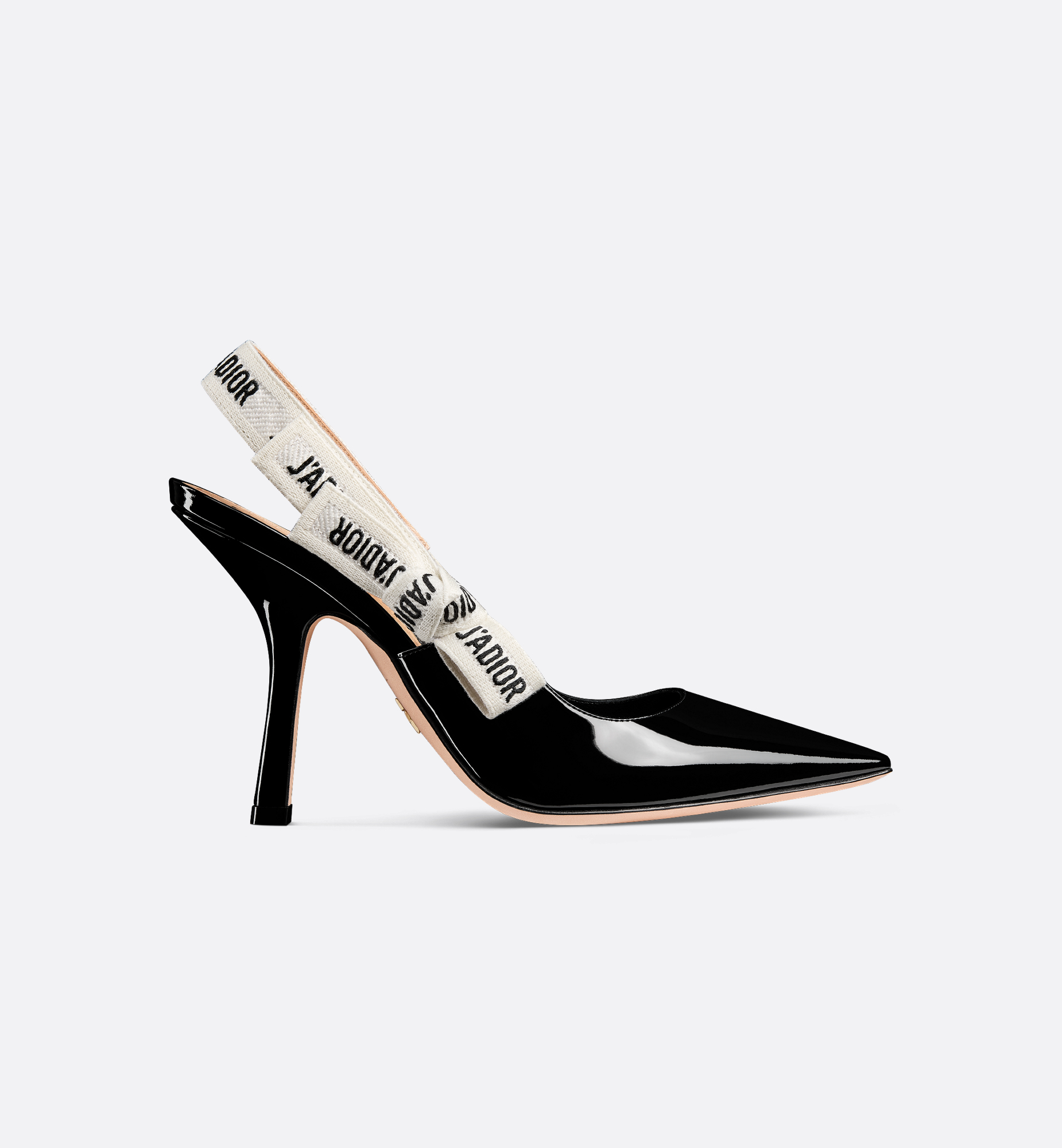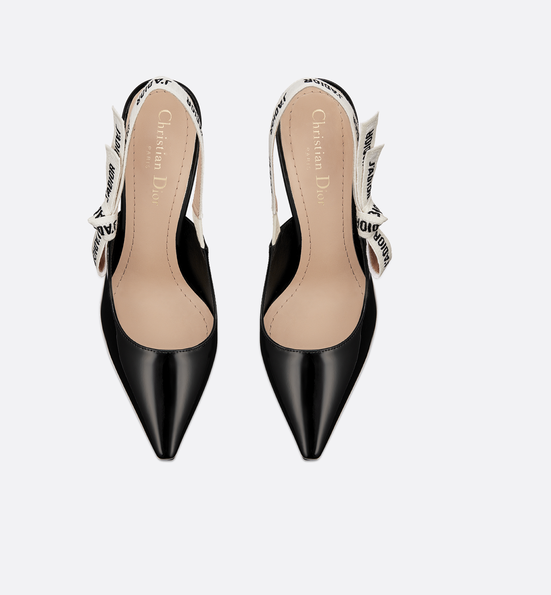 The J’Adior slingback pump is a prime example of Dior’s savoir-faire. Crafted in the Christian Dior Italian ateliers, the silhouette is distinguished by black patent calfskin. The two-tone embroidered J’Adior ribbon is embellished with a flat bow and the 10-cm (4-inch) comma heel offers the final elegant touch for an evening look. Main composition: calfskin, technical fabric and lambskin. Goatskin lining. Two-tone J’Adior embroidered cotton ribbon. Flat bow. Leather sole with star, Christian Dior’s lucky symbol. Made in Italy
