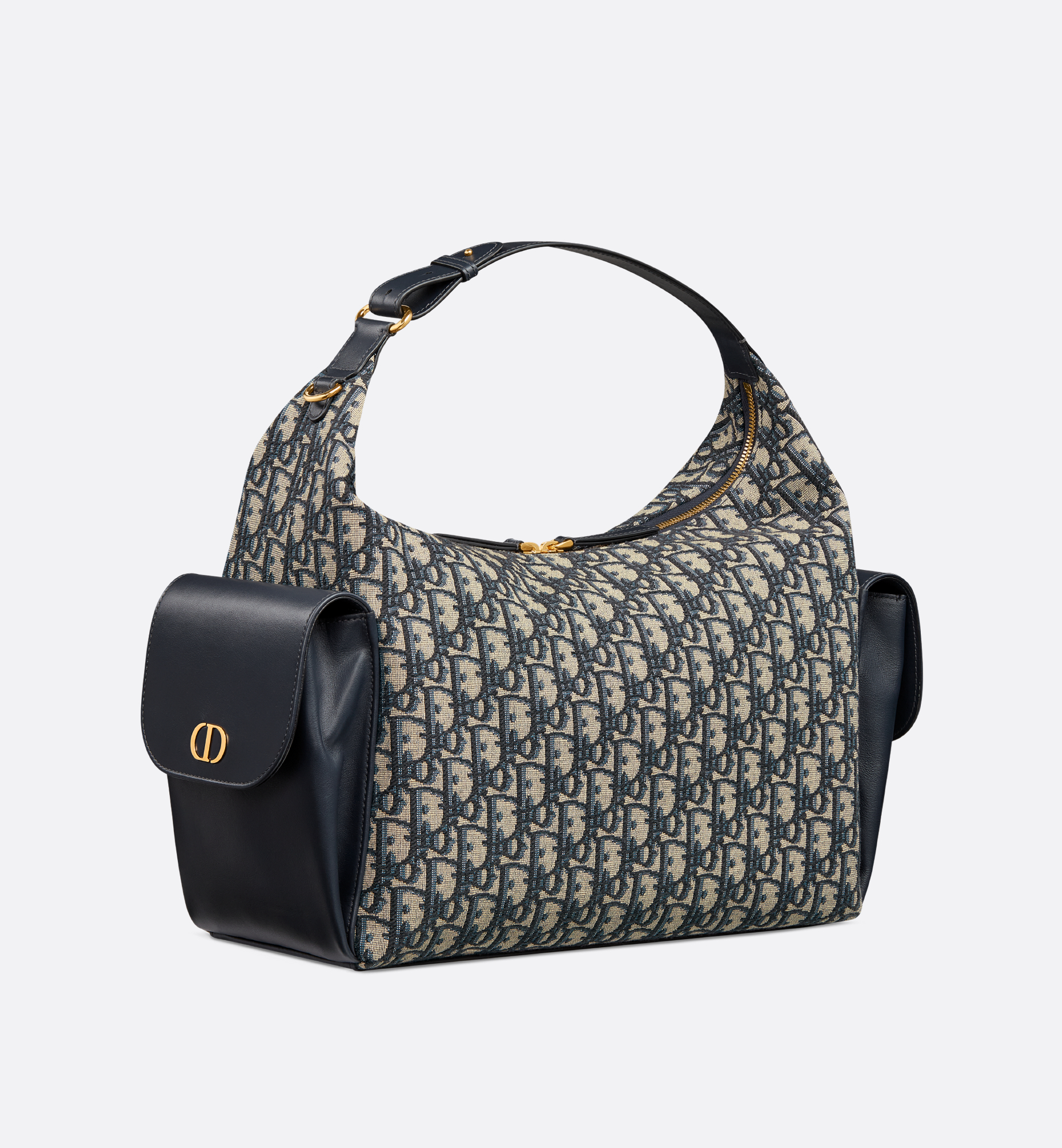 New for Winter 2025, the D-Dream bag stands out with a practical, laid-back and modern design. The style features a supple silhouette constructed in blue Dior Oblique jacquard. The spacious zip compartment is completed by two blue calfskin side pockets to hold all the essentials, both with magnetic flaps embellished with a gold-finish metal CD signature. Equipped with an adjustable top handle and an adjustable, removable leather strap, the large bag can be worn over the shoulder or crossbody as an ideal daily companion. Main composition: cotton, calfskin and technical fabric. Cotton, linen and calfskin lining. CD signatures on the sides. Zip closure. Adjustable top handle. Adjustable and removable leather shoulder strap. Side patch pockets with magnetic flaps. Interior slip pocket. Dust bag included. Made in Italy