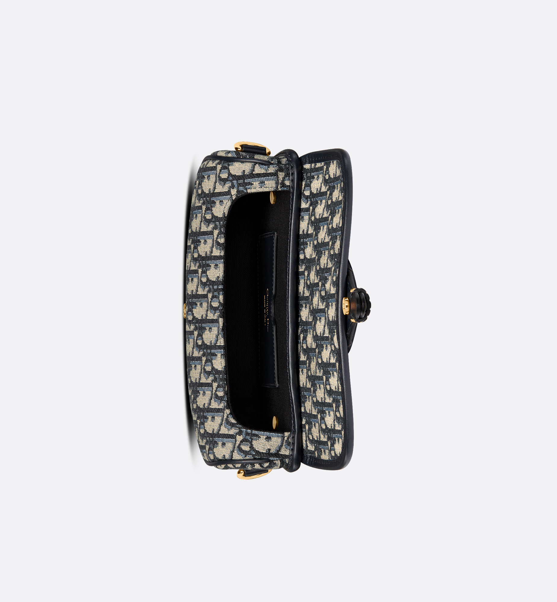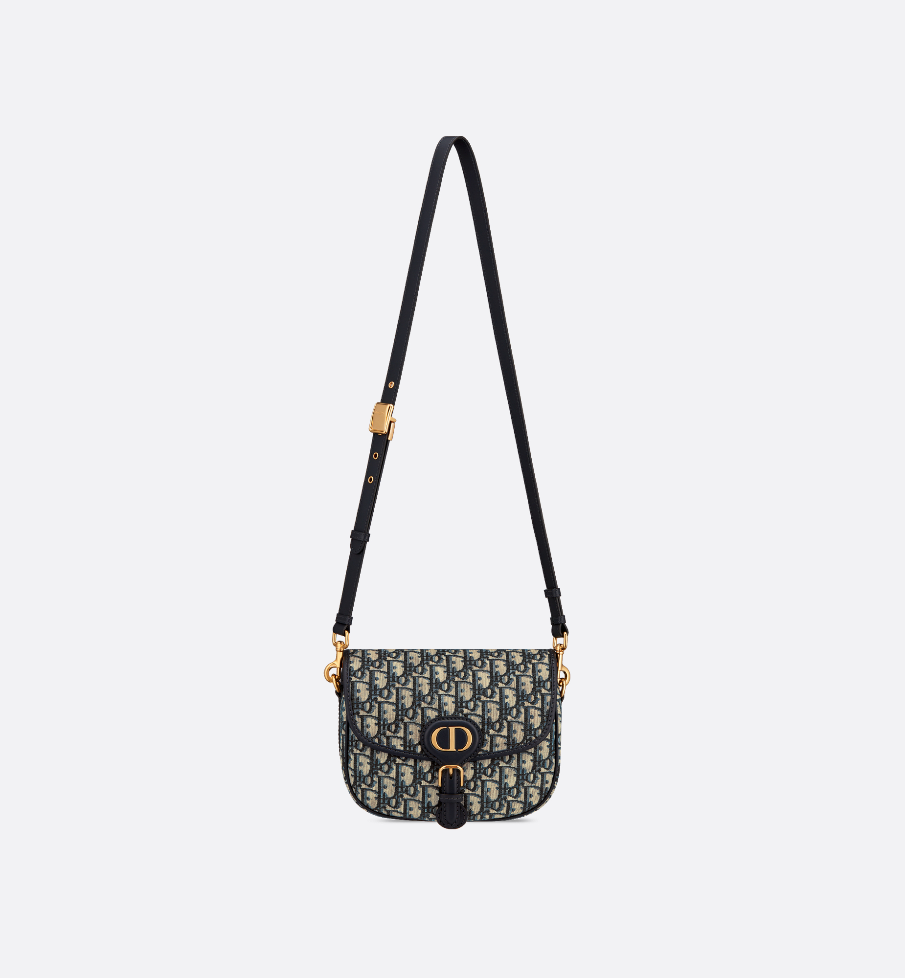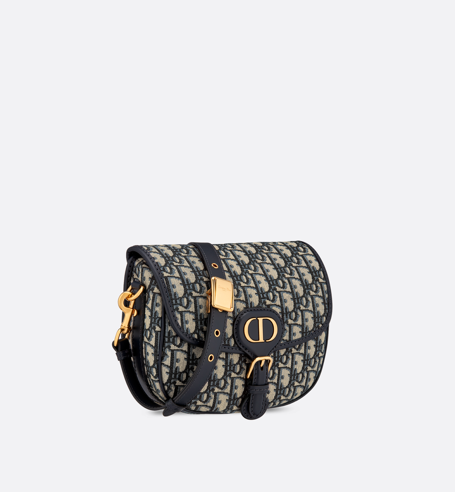 The Dior Bobby bag is a hobo style showcasing sophisticated lines and harmonious proportions. The model is crafted from blue Dior Oblique jacquard and is enhanced by antique gold-finish metal hardware. Its adjustable and removable strap has a military-inspired buckle, and allows the medium bag to be carried by hand, worn over the shoulder or crossbody. Main composition: cotton, calfskin and technical fabric. Cotton, linen and calfskin lining. Flap closure. Magnetic clasp with decorative CD buckle. Embossed 30 Montaigne signature on the back. Back pocket. Interior slip pocket. Adjustable and removable sliding leather shoulder strap. Christian Dior Paris military-inspired buckle. Dust bag included. Made in Italy