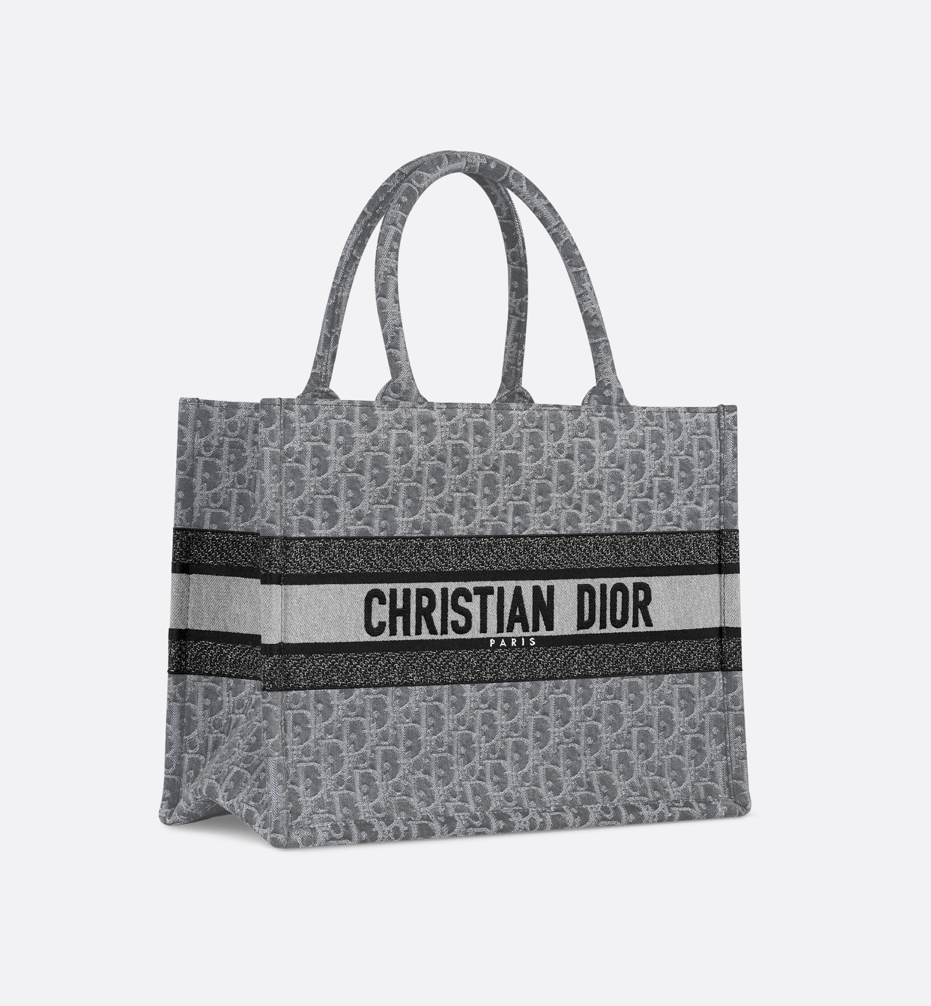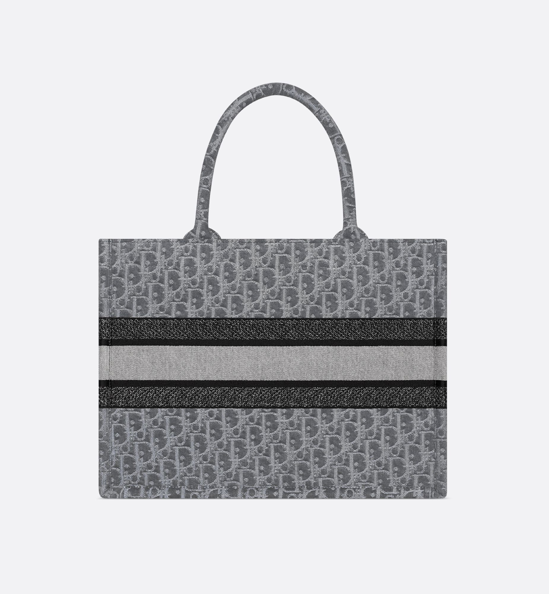 Introduced by Maria Grazia Chiuri, Creative Director of Christian Dior, the Dior Book Tote has become a staple of the Dior aesthetic. Designed to hold all the daily essentials, the style is fully embroidered with a gray Denim Dior Oblique motif. Adorned with the Christian Dior Paris signature on the front, the medium tote exemplifies the House’s savoir-faire and may be carried by hand or worn over the shoulder. Main composition: cotton. Christian Dior Paris signature on the front. Dust bag included. Made in Italy