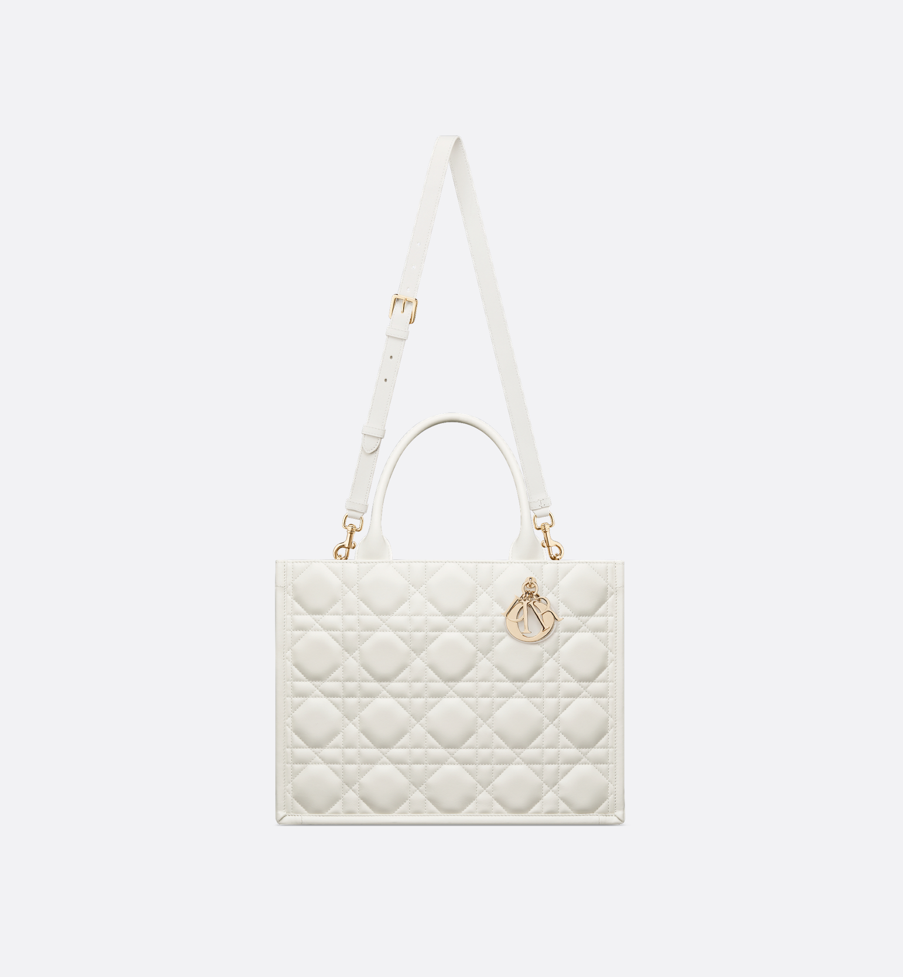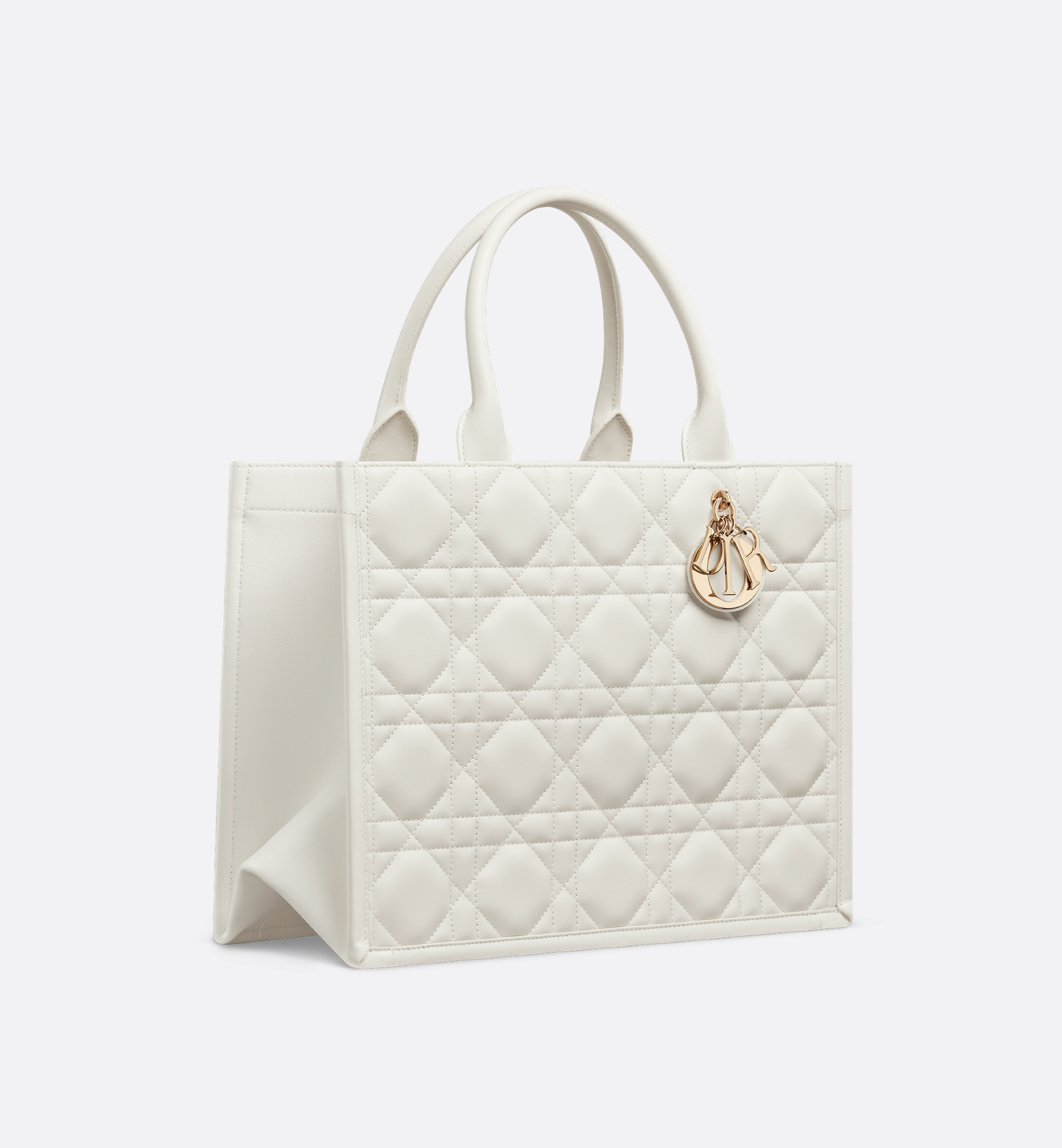 Maria Grazia Chiuri’s hallmark Dior Book Tote is available in an elegant new variation. Crafted in latte calfskin, the design showcases the Macrocannage motif and is embellished with pale gold-finish metal D.I.O.R. charms on the front. The cashmere leather interior reveals a zip pocket and slip pockets, ideal for organizing all the daily essentials. Featuring an adjustable and removable strap, the lightweight and practical medium tote is a prime example of Dior savoir-faire and may be carried by hand or worn over the shoulder. Main composition: calfskin. Calfskin lining. Front D.I.O.R. charms. Adjustable and removable leather shoulder strap. Interior zip pocket. Two interior slip pockets. Dust bag included. Made in Italy