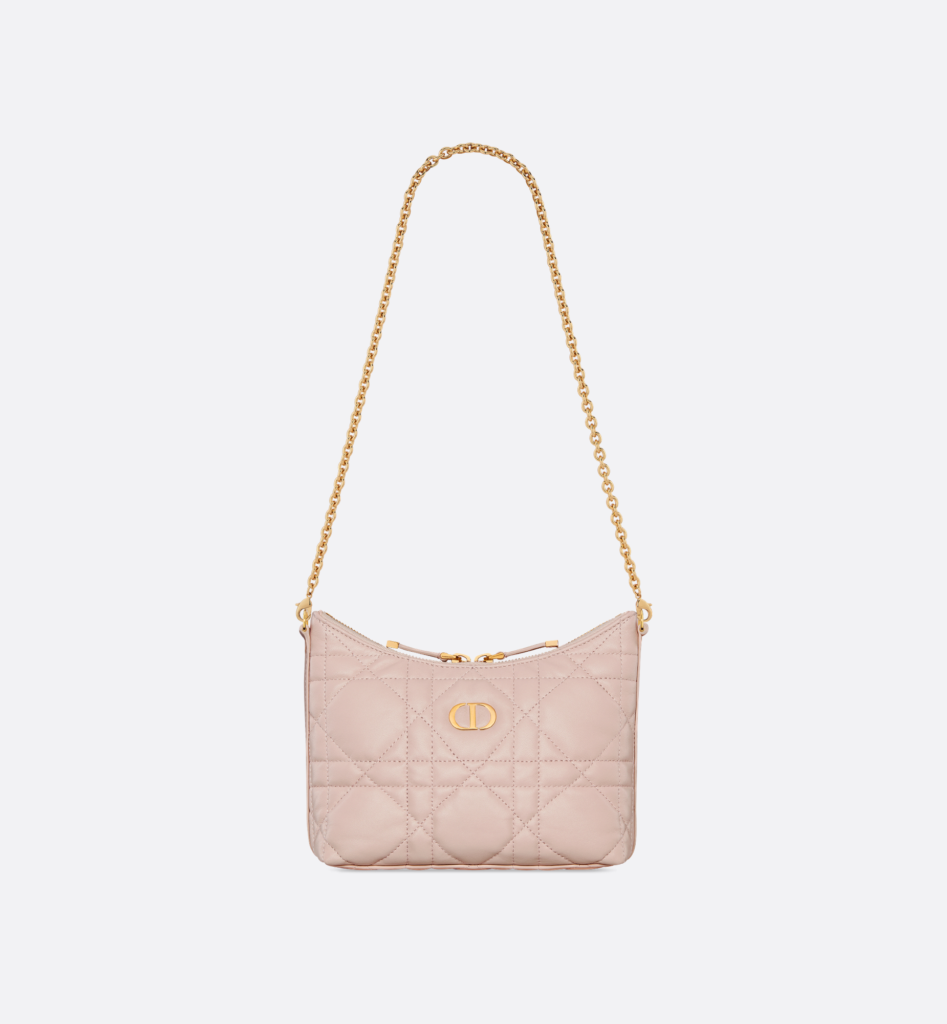 New for Winter 2025, the Miss Caro Diorling mini bag showcases a practical and modern design. Crafted in powder pink lambskin with Macrocannage topstitching, it is enhanced by a gold-finish metal CD signature on the front and features a zip compartment to hold all the essentials. Its versatile style has an adjustable, removable leather strap and top handle, as well as a removable chain, allowing it to be worn over the shoulder or crossbody as an ideal companion for day or evening. Main composition: lambskin. Lambskin lining. CD signature on the front. Two-way zip closure. Interior slip pocket. Adjustable and removable leather top handle. Adjustable and removable leather shoulder strap. Removable chain strap. Dust bag included. Made in Italy