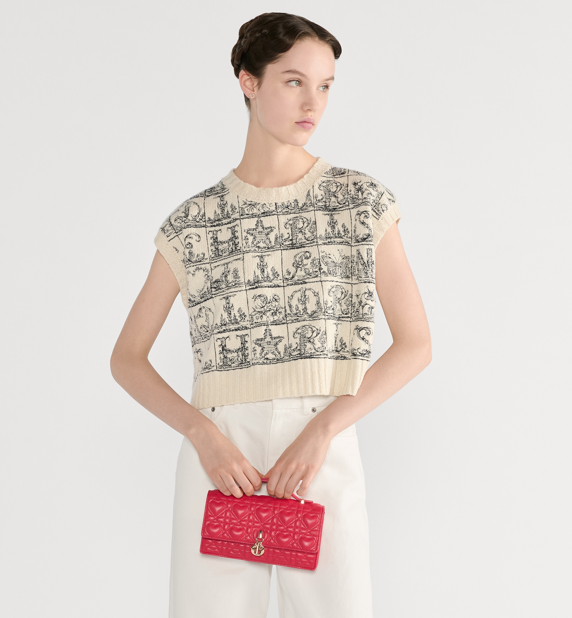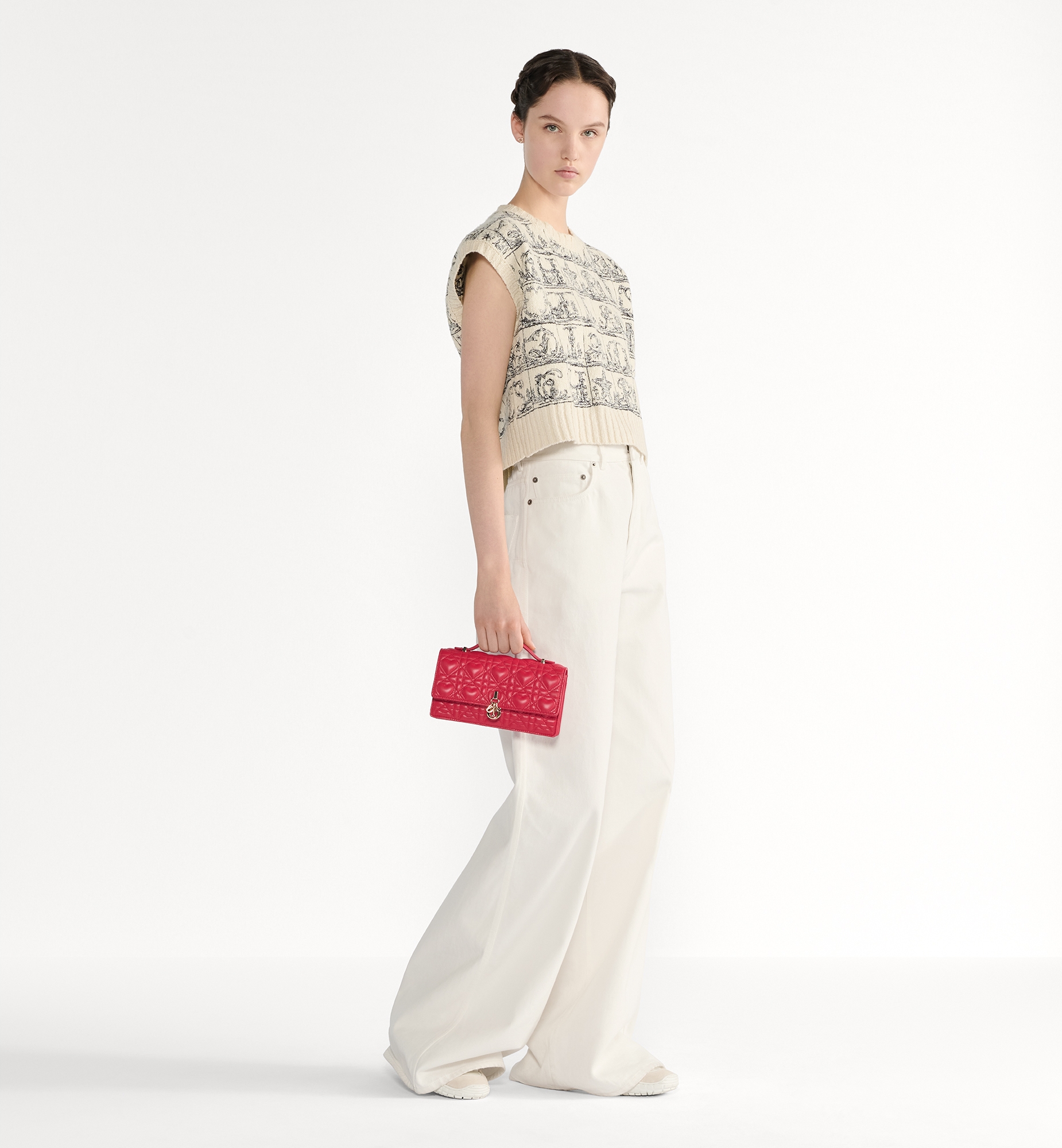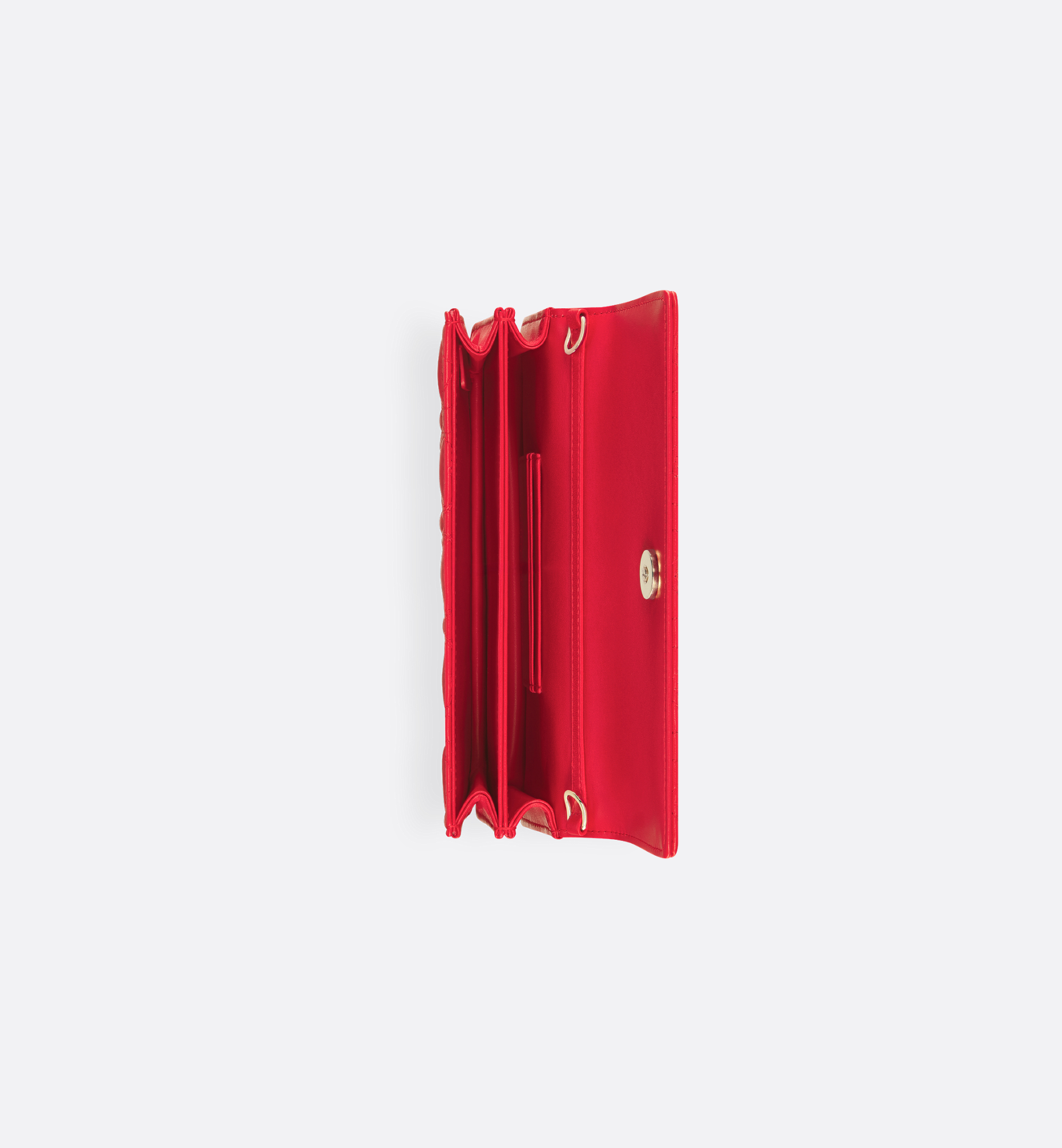 The My Dior mini bag elevates the line with an elegant and functional design. Crafted in Monsignore red lambskin with Cannage stitching enhanced by a heart motif, it features a flap with D.I.O.R. charms on the front. Equipped with compartments and card slots, the practical accessory will hold all the essentials and be the ideal day and evening companion. A top handle completed by a removable chain punctuated with resin pearls allows the bag to be carried by hand or worn crossbody. Main composition: lambskin. Lambskin and technical fabric lining. Front D.I.O.R. charms. Flap closure. Two interior compartments. Rear slip pocket. Three card slots. Folding leather top handle. Removable jewel chain. Made in Italy