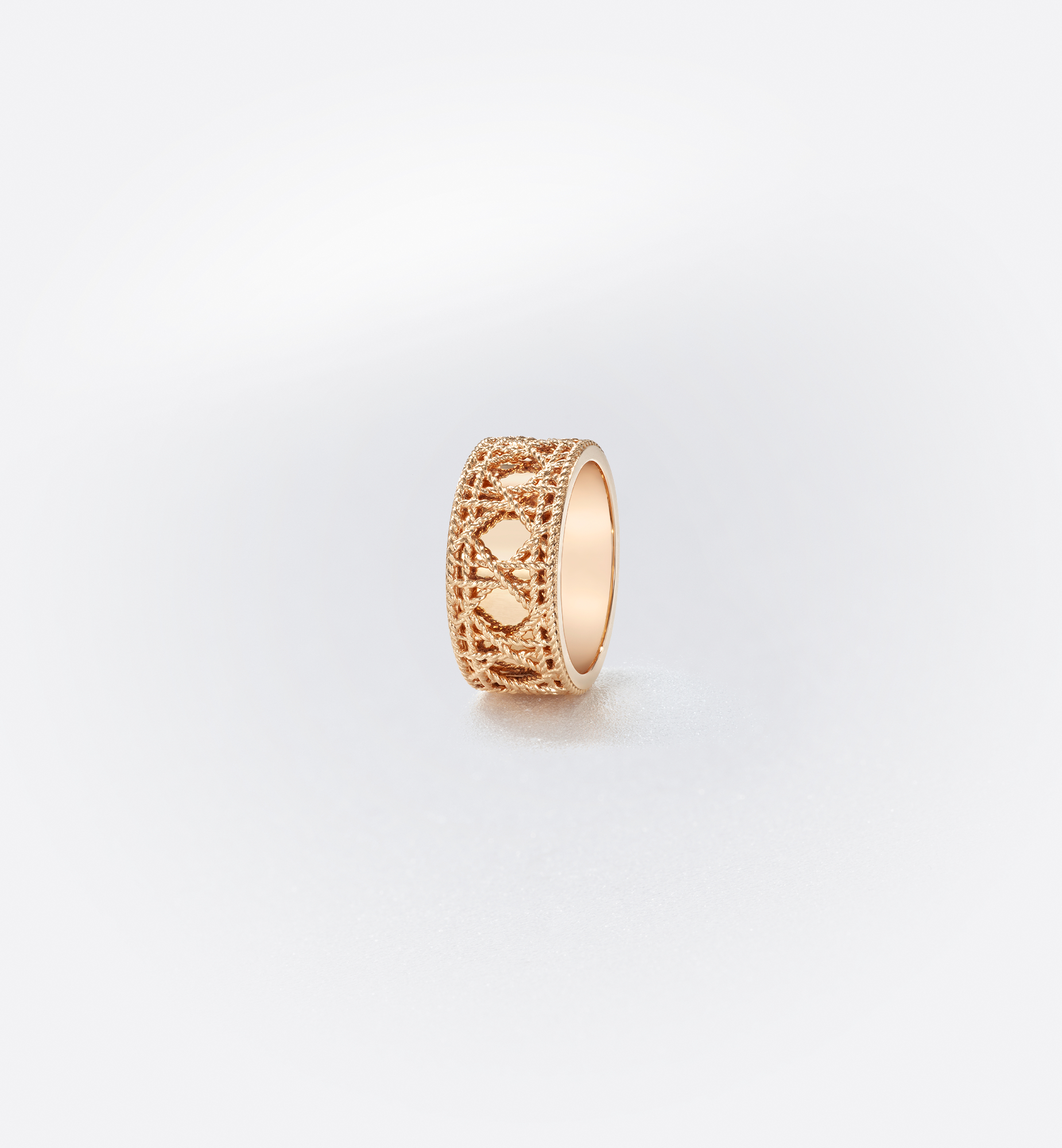 The My Dior collection by Victoire de Castellane is reinvented with a series of infinitely precious jewelry pieces. In an ode to the art of detail, a tangle of golden threads is woven together like meticulously interlaced sprigs of straw into a subtle mesh, revealing the iconic Cannage, accented by a strip of shiny gold. The craftsmanship is an homage to Dior’s refined style. The monochrome designs of the My Dior line play with the concepts of contrast, brilliance and sleek graphics in a tribute to Dior’s timeless elegance. Featuring pink gold, yellow gold or white gold, the pieces are also occasionally adorned with diamonds. 18K pink gold