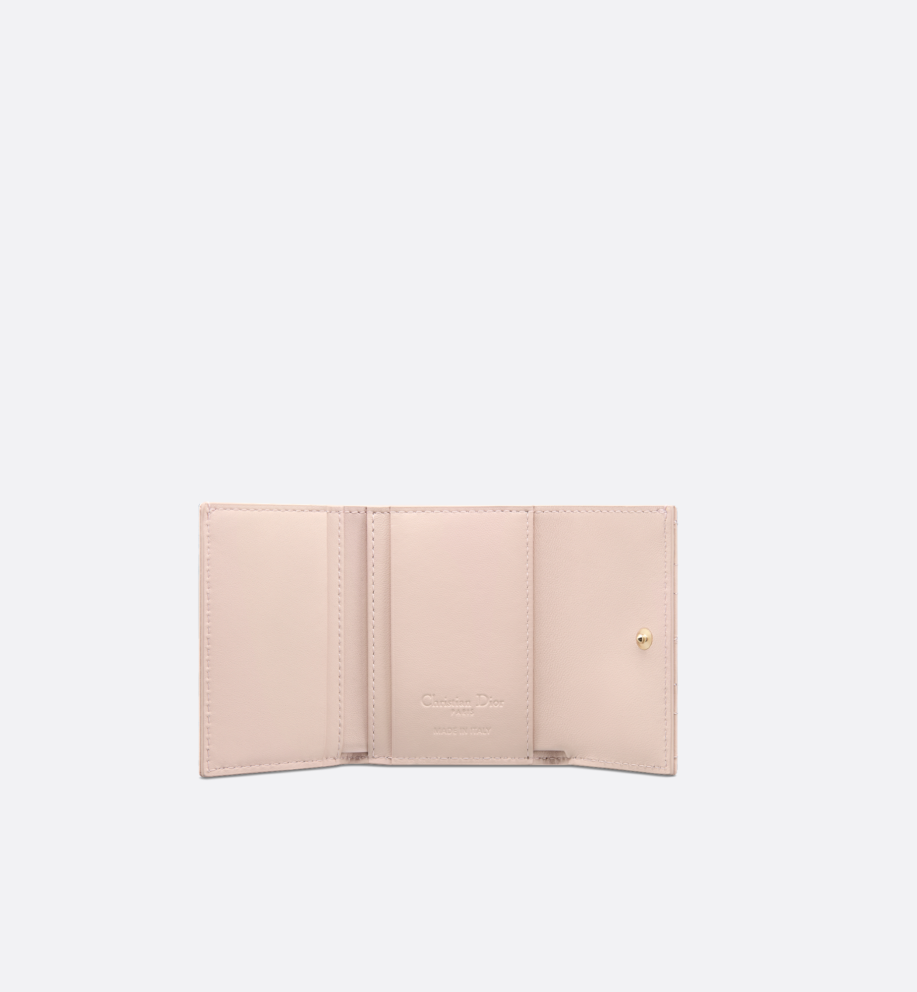 The Veronia wallet expands the My Dior line with a compact and practical design. Crafted in powder pink Cannage lambskin, it is enhanced by pale gold-finish metal D.I.O.R. charms on the front. Accommodating all the essentials, the refined accessory will fit anywhere and can be paired with other My Dior creations. Main composition: lambskin. Lambskin and technical fabric lining. Front D.I.O.R. charms. Five card slots. One bill compartment. Made in Italy