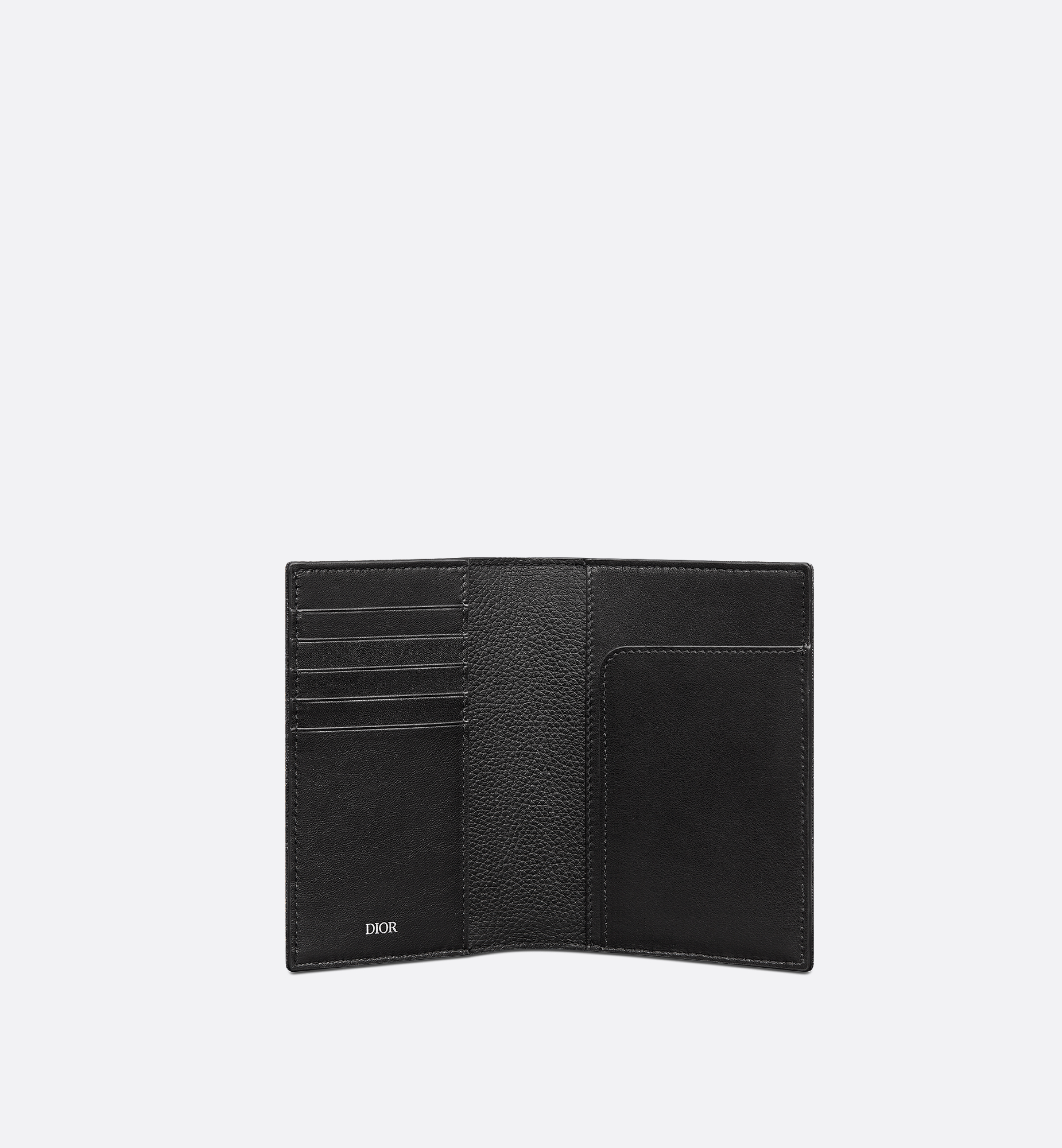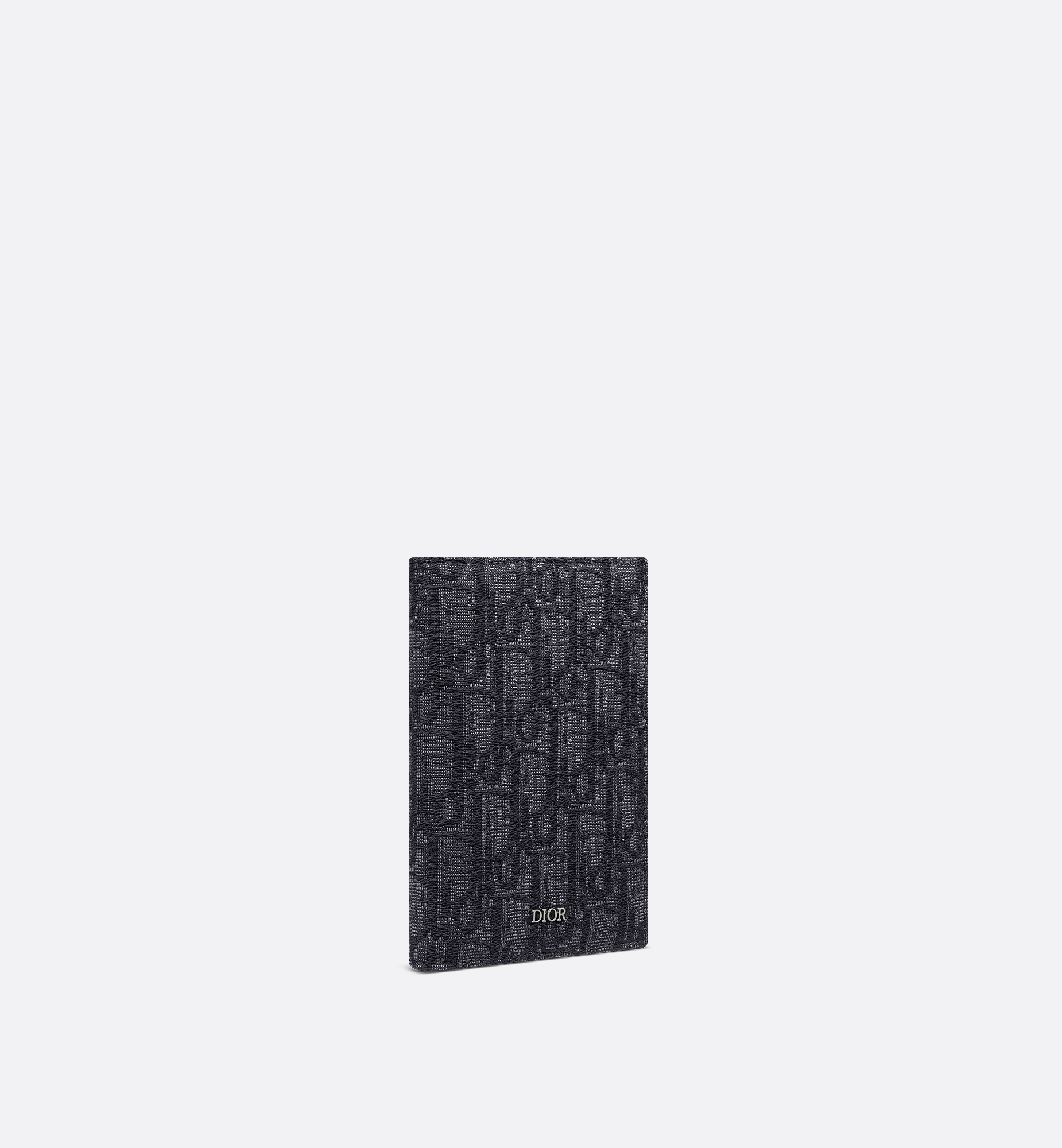 The passport cover is a practical and elegant accessory. Crafted in black Dior Oblique jacquard, it is embellished with a Dior signature on the front and has a tonal smooth calfskin interior. The style features two flat compartments, a boarding pass slot and five card slots. The cover is the ideal companion for any adventure and can further be used as a large card holder for daily use. Main composition: cotton and technical fabric. Calfskin and technical fabric lining. Bifold style. Two flat compartments. Five card slots. Space for boarding pass. Ruthenium-finish brass Dior signature on the front. Embossed Dior signature on the interior. Dust bag included. Made in Italy or Spain