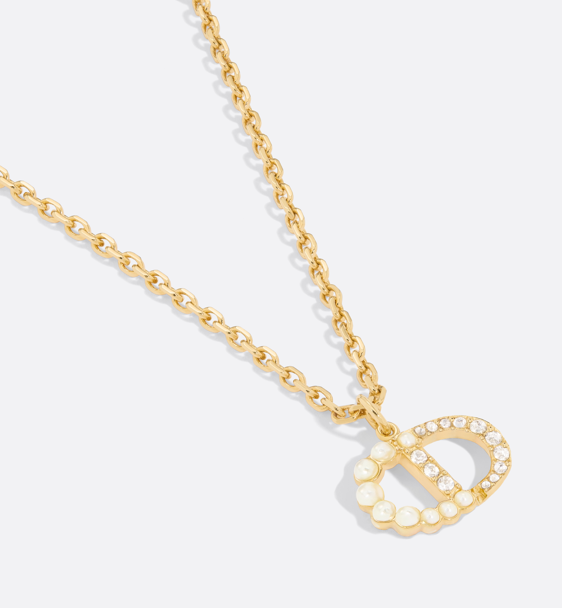 The Petit CD Duo necklace showcases a modern, elegant design. The gold-finish metal chain features the CD signature in a combination of white resin pearls and sparkling crystals for a delicate contrast. The refined necklace can be worn with other Petit CD Duo pieces. White resin pearls. Sparkling crystals. CD signature. Gold-finish metal. Lobster clasp. Made in Germany or Portugal
