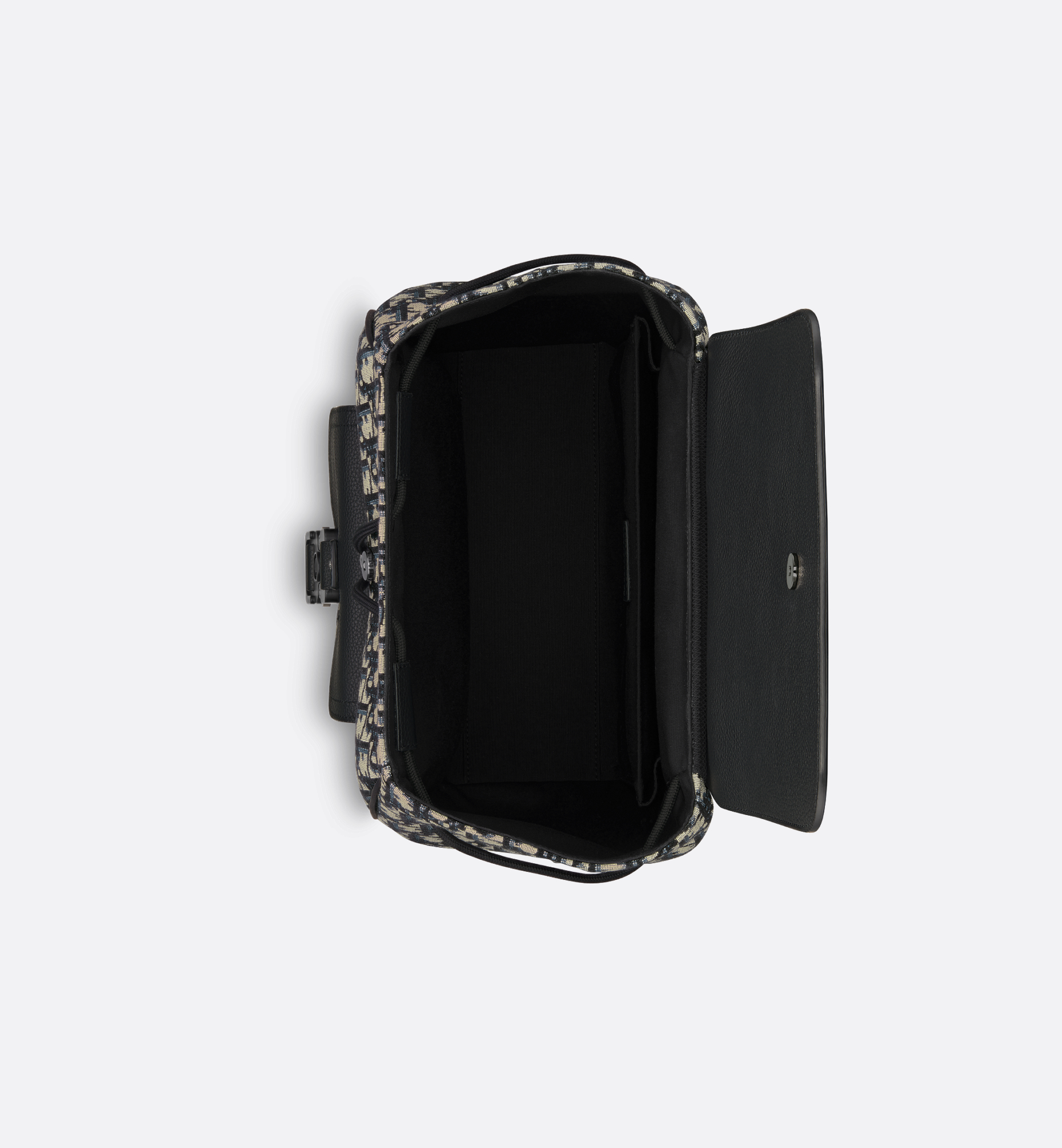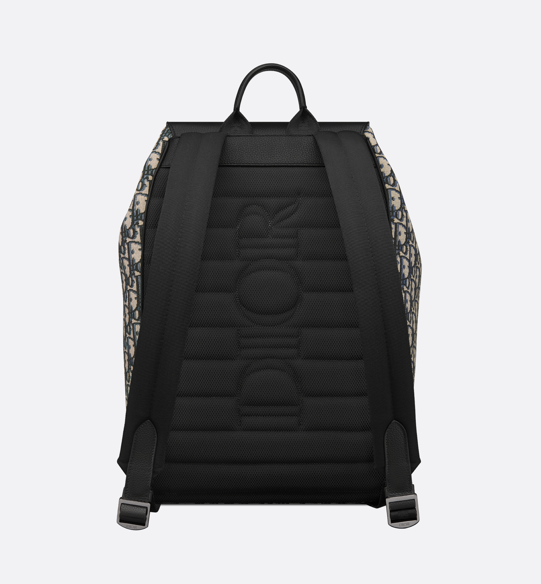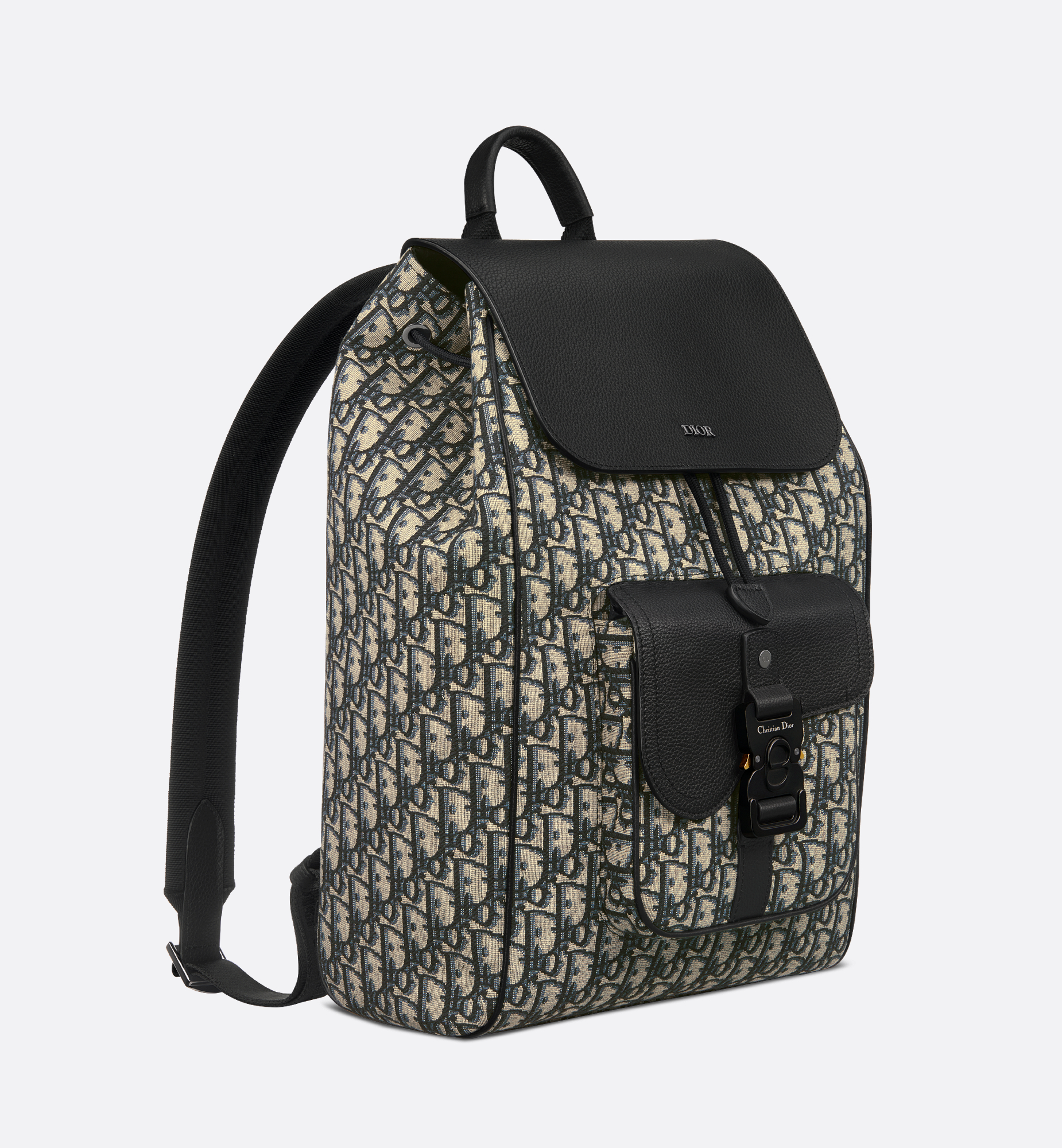 The Saddle backpack with flap offers a modern and original take on the Saddle design. Constructed in beige and black Dior Oblique jacquard, it is embellished with black grained calfskin detailing and a Dior signature on the front. The spacious design has a compartment to hold all the essentials, while the Saddle flap pocket and aluminum buckle on the front provide easy access to a wallet, keys, headphones or phone. The practical backpack will lend the finishing touch to any outfit. Main composition: technical fabric, cotton and calfskin. Technical fabric, cotton and calfskin lining. Main compartment with flap and drawstring cord. Interior flat compartment for laptop. Flap pocket with CD-signature aluminum buckle on the front. Leather top handle. Adjustable padded shoulder straps. Padded mesh back with Dior signature. Ruthenium-finish brass Dior signature on the front. Embossed Dior signature on the interior. Dust bag included. Made in Italy