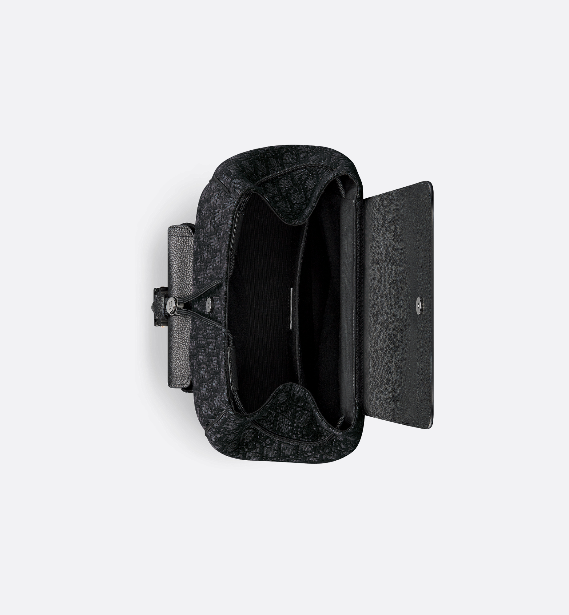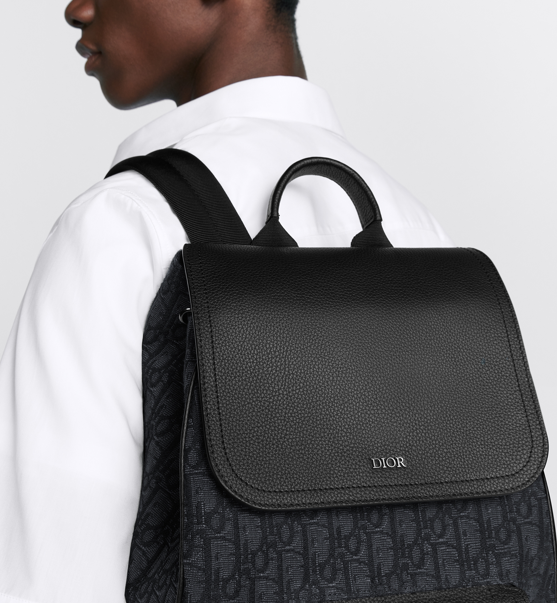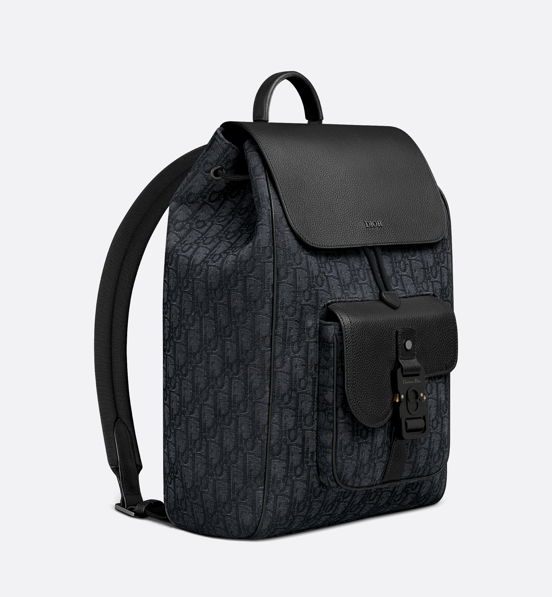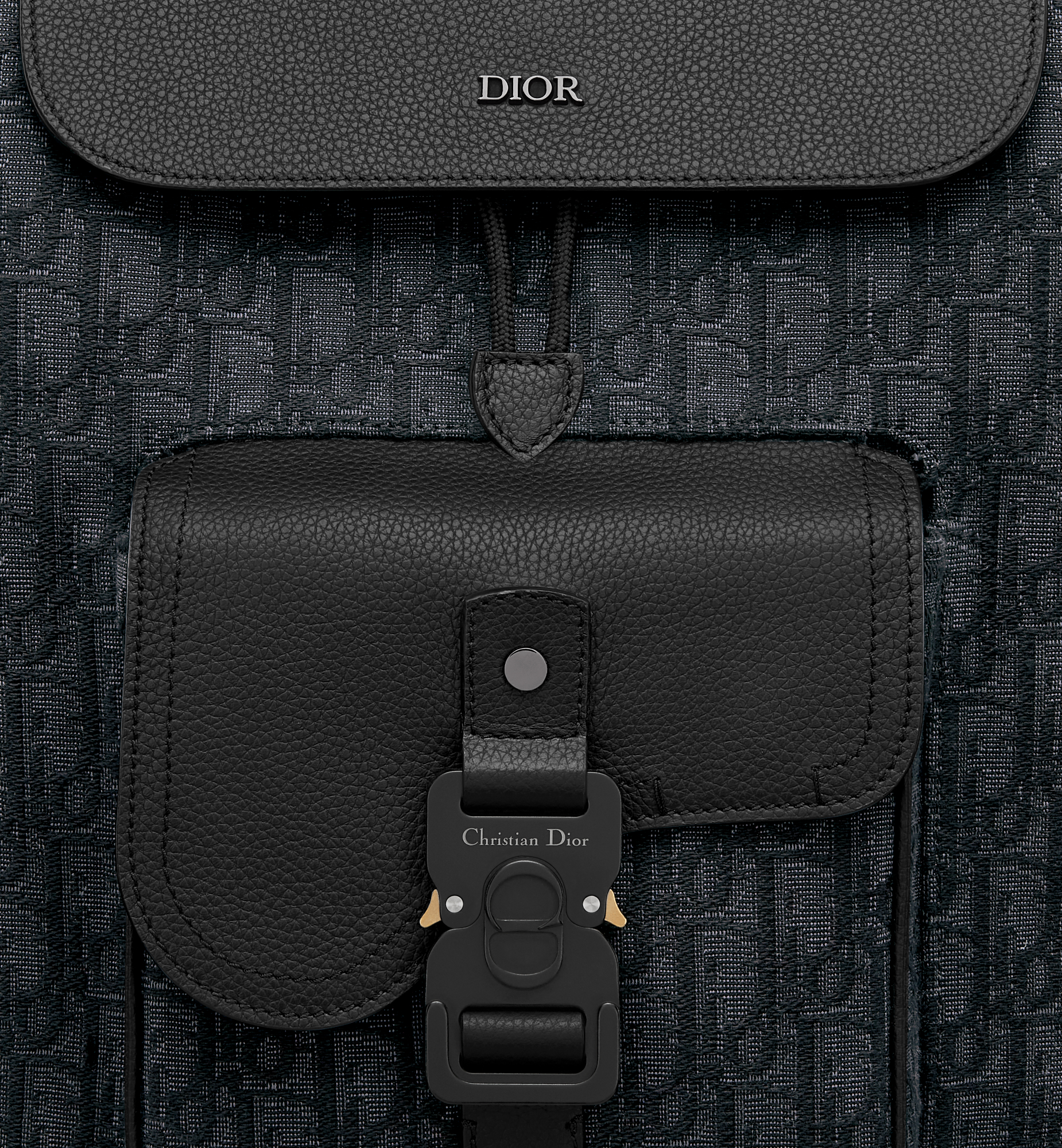 The Saddle backpack with flap offers a modern and original take on the Saddle design. Constructed in black Dior Oblique jacquard, it is embellished with tonal grained calfskin detailing and a Dior signature on the front. The spacious bag has a compartment to hold all the essentials, while the Saddle flap pocket and aluminum buckle on the front provide easy access to a wallet, keys, headphones or phone. The practical backpack will lend the finishing touch to any outfit. Main composition: technical fabric, cotton and calfskin. Technical fabric, cotton and calfskin lining. Main compartment with flap and drawstring cord. Interior flat compartment for laptop. Flap pocket with CD-signature aluminum buckle on the front. Leather top handle. Adjustable padded shoulder straps. Padded mesh back with Dior signature. Ruthenium-finish brass Dior signature on the front. Embossed Dior signature on the interior. Dust bag included. Made in Italy