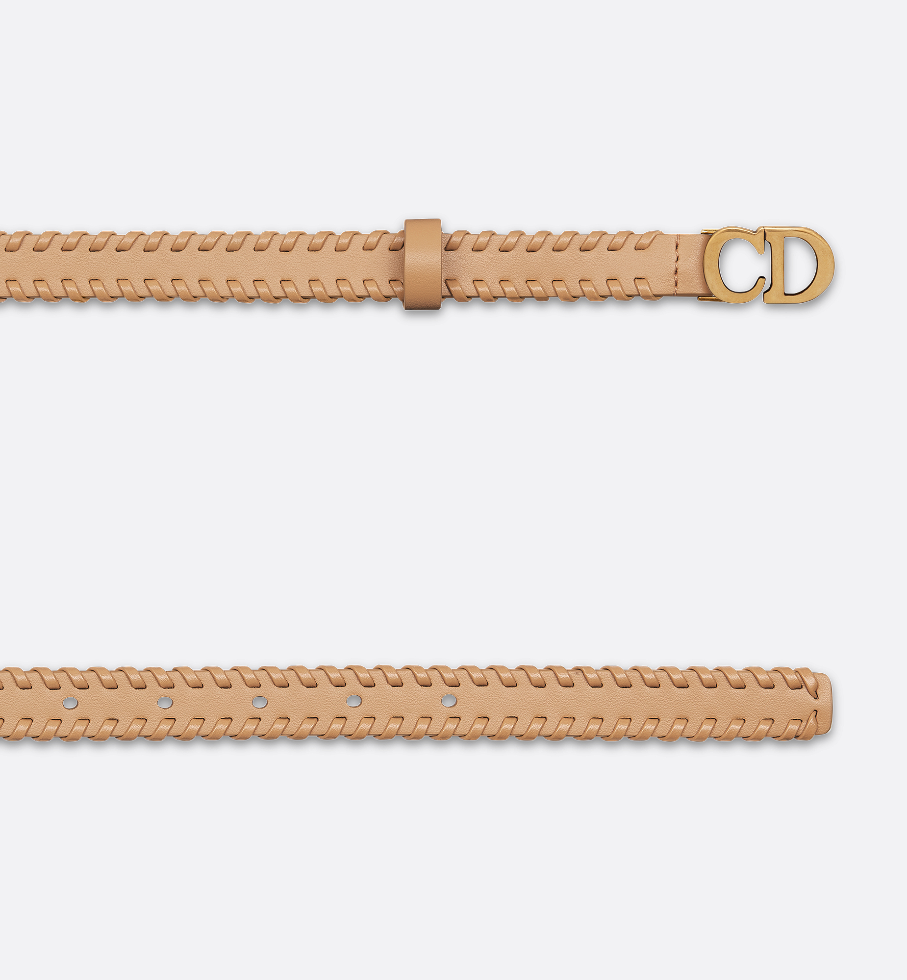 The Saddle belt is presented in a new variation celebrating the House’s exceptional savoir-faire. Crafted in light gold-tone smooth calfskin, the style is embellished with tonal leather hand-finished whipstitching and an antique gold-finish metal CD buckle. Elegantly highlighting the waist, the timeless accessory will pair effortlessly with jeans, a skirt or a dress from the season. Saddle CD buckle. Antique gold-finish metal detailing. 90% calfskin, 10% brass. Made in Italy