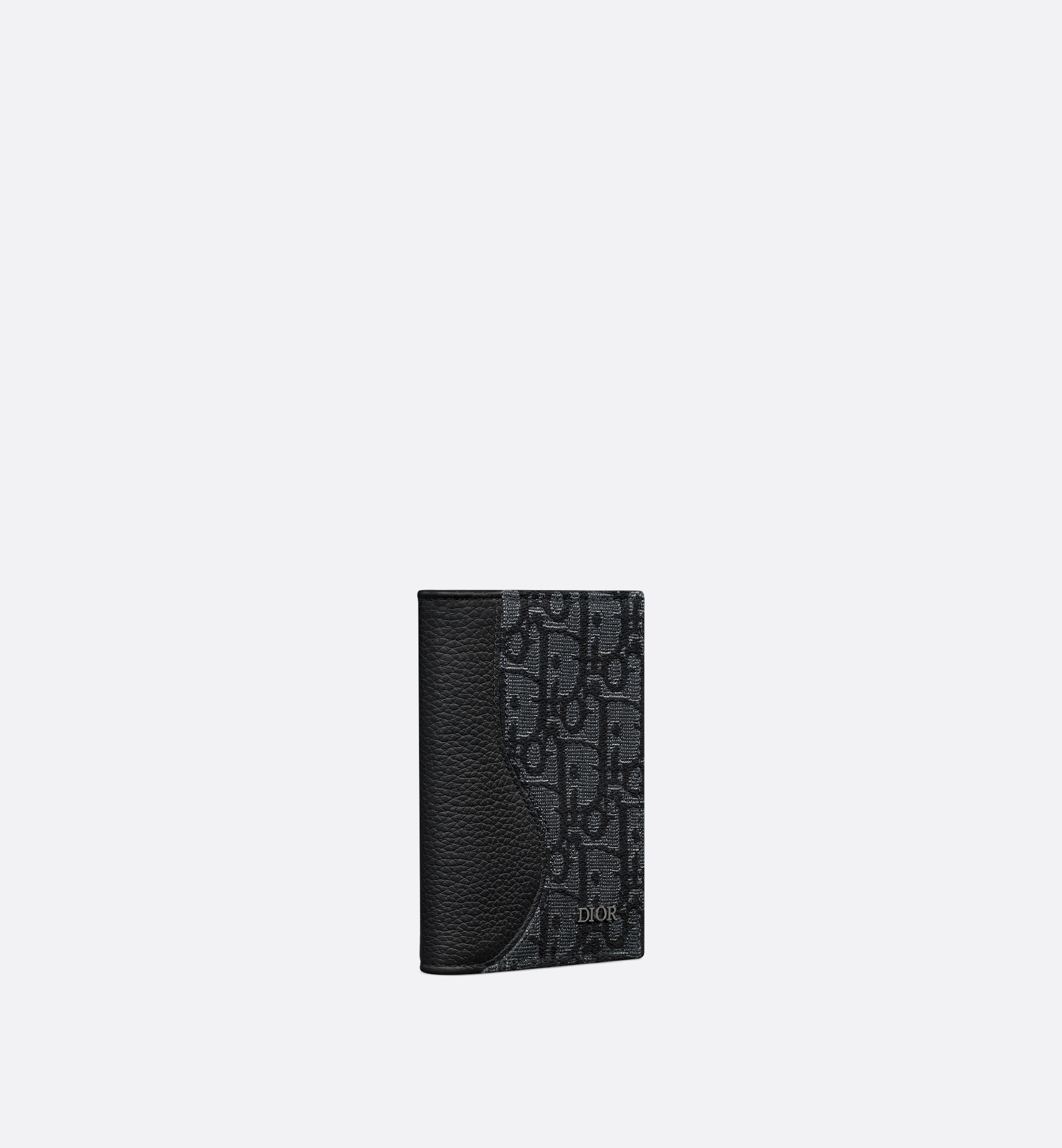 The Saddle bifold card holder is a refined accessory that demonstrates the House’s savoir-faire in leather marquetry. Crafted in black grained calfskin and silver-tone metallic Dior Oblique jacquard, highlighting the iconic Saddle curve, it showcases a contrasting interior with three card slots on either side as well as two slots to house receipts. Embellished with a Dior signature on the front, the elegant bifold card holder will fit easily into any pocket. Main composition: calfskin, cotton and technical fabric. Calfskin and technical fabric lining. Six card slots. Two slip pockets for receipts. Ruthenium-finish brass Dior signature on the front. Embossed Dior signature on the interior. Dust bag included. Made in Italy or Spain